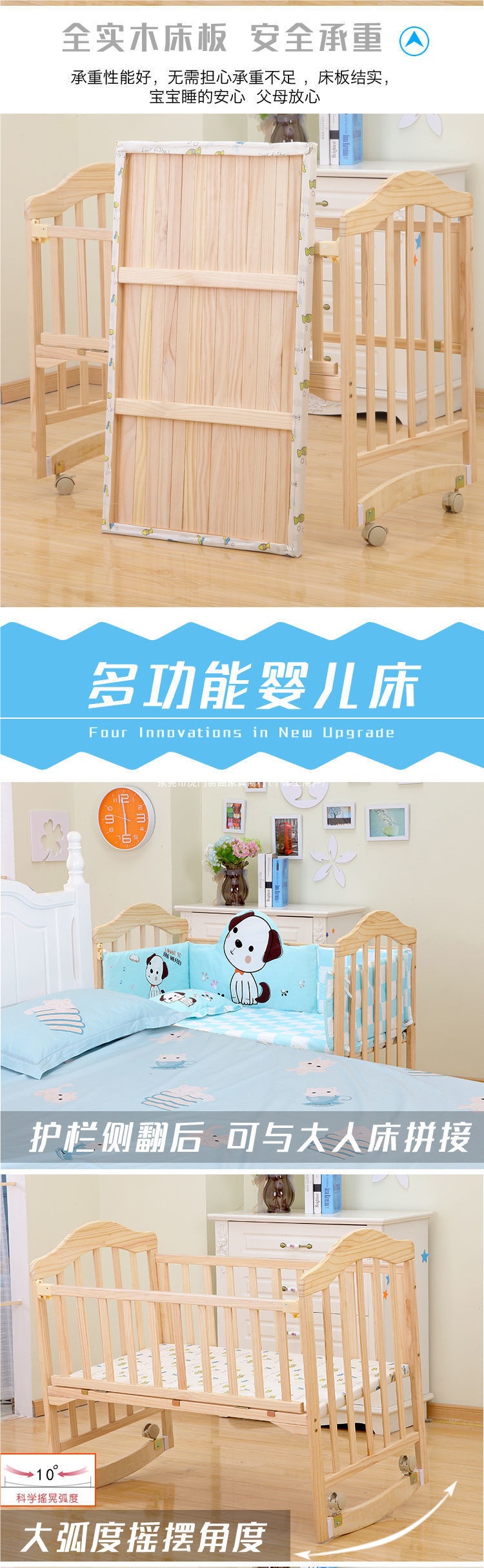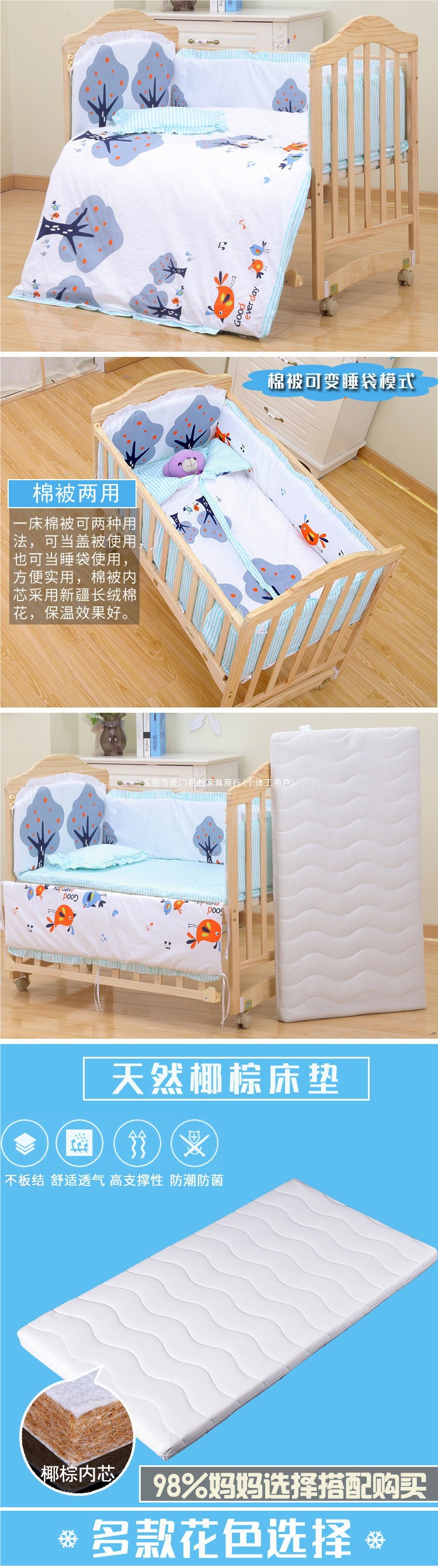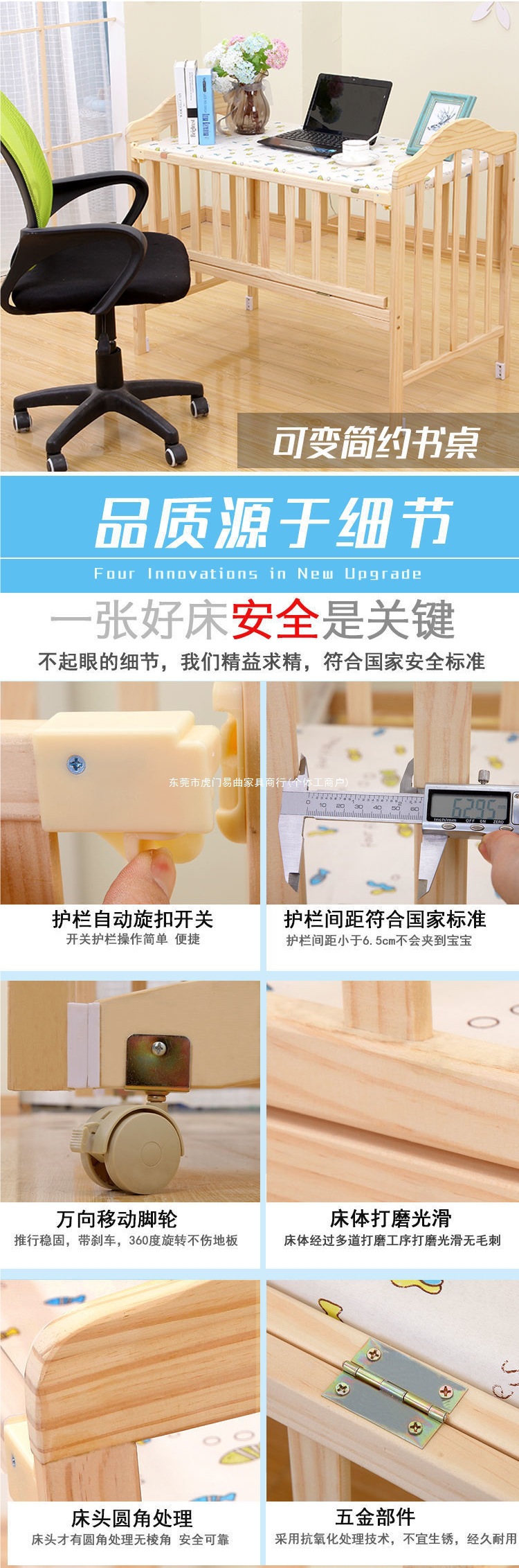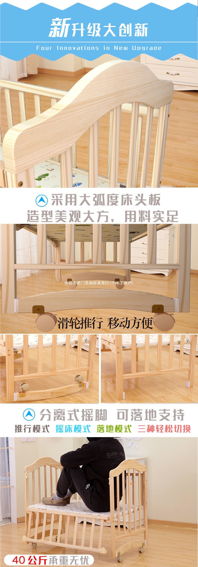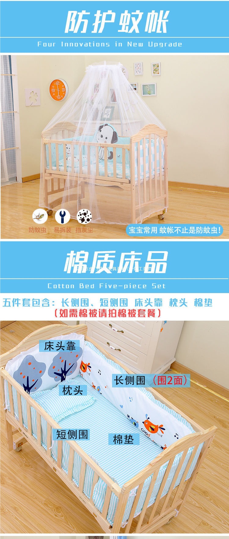 Кроватка из цельного дерева для новорожденных, экологически чистая детская кровать без краски, колыбель, съемный стол, большая кровать