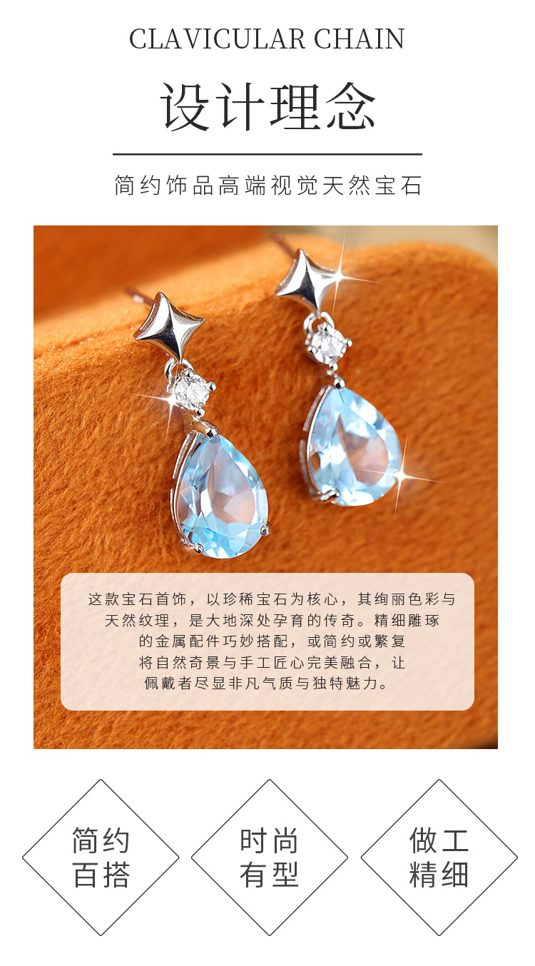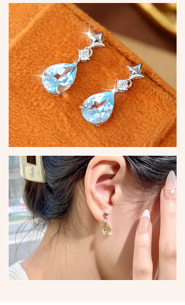 Европейский и американский стиль, натуральный камень, грушевидная капля воды, 7*9, серьги с кристаллами, серьги из стерлингового серебра s925, трансграничные серьги Xiaohongshu, горячий стиль