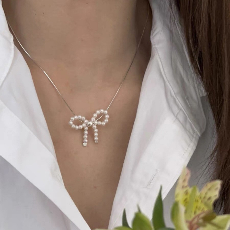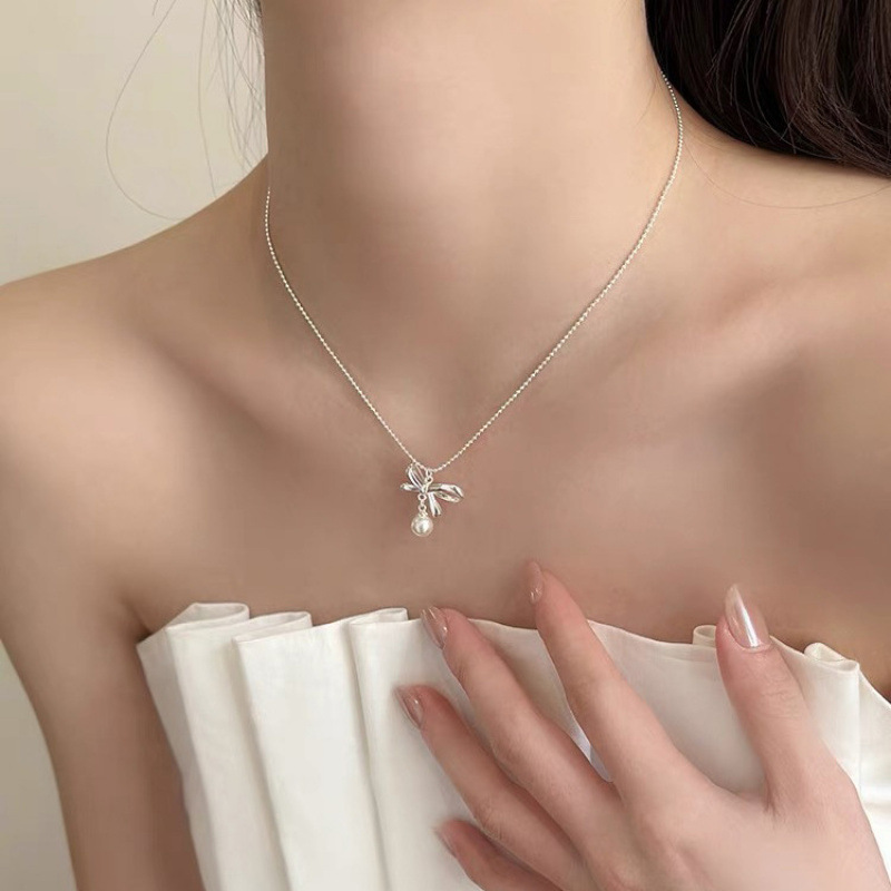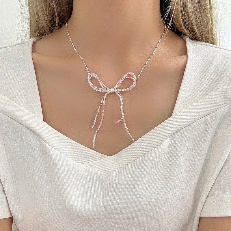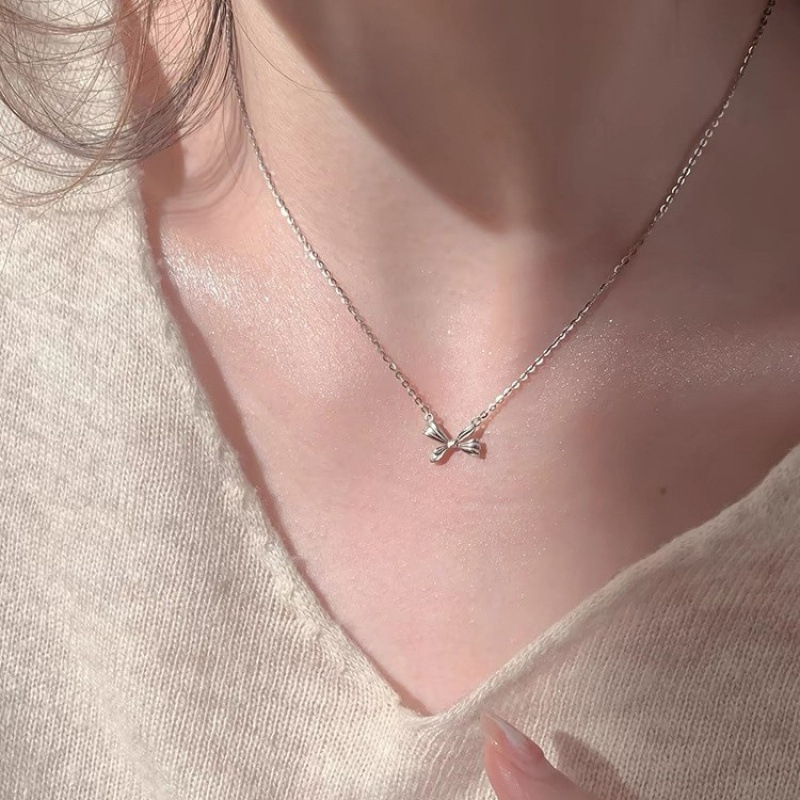 Нагревающий сердце стиль ~ весенне-летняя универсальная комбинация высококачественного женского ожерелья, легкой роскошной цепочки на ключицу с нишевым дизайном и бантом.