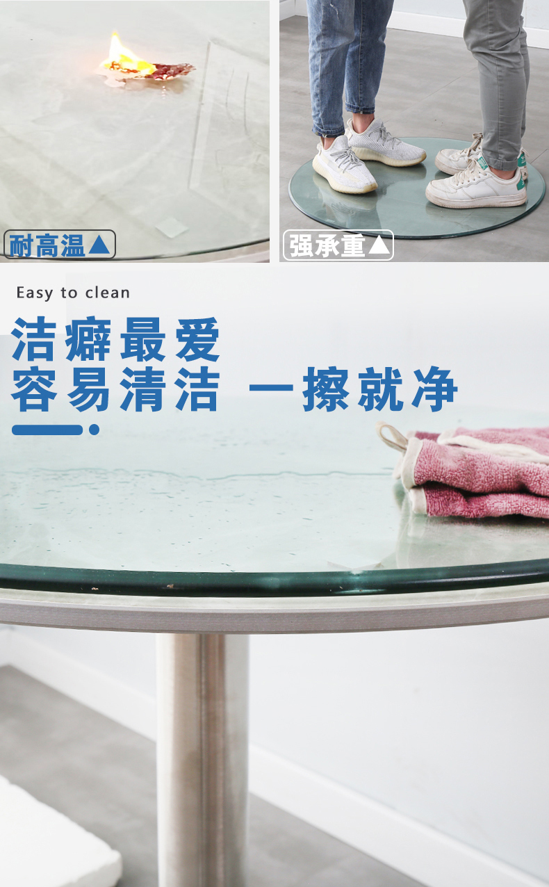 Круглый стол со стеклянной поверхностью, закаленный бытовой, изготовленный на заказ, круглый вращающийся прозрачный журнальный столик для отеля, обеденный стол, поворотный стол