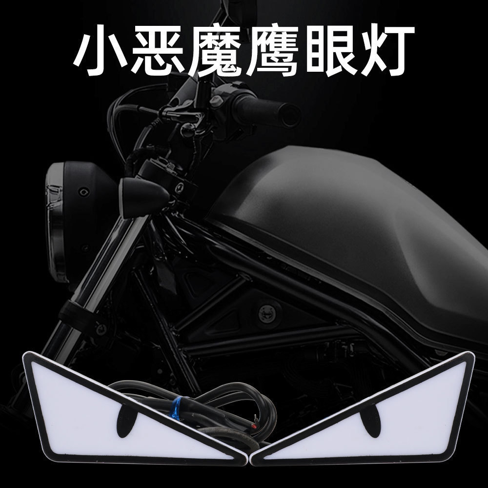 Универсальные декоративные аксессуары для мотоциклов: крепления для номерных знаков, фары, треугольные «дьявольские глаза», модифицированные фары.