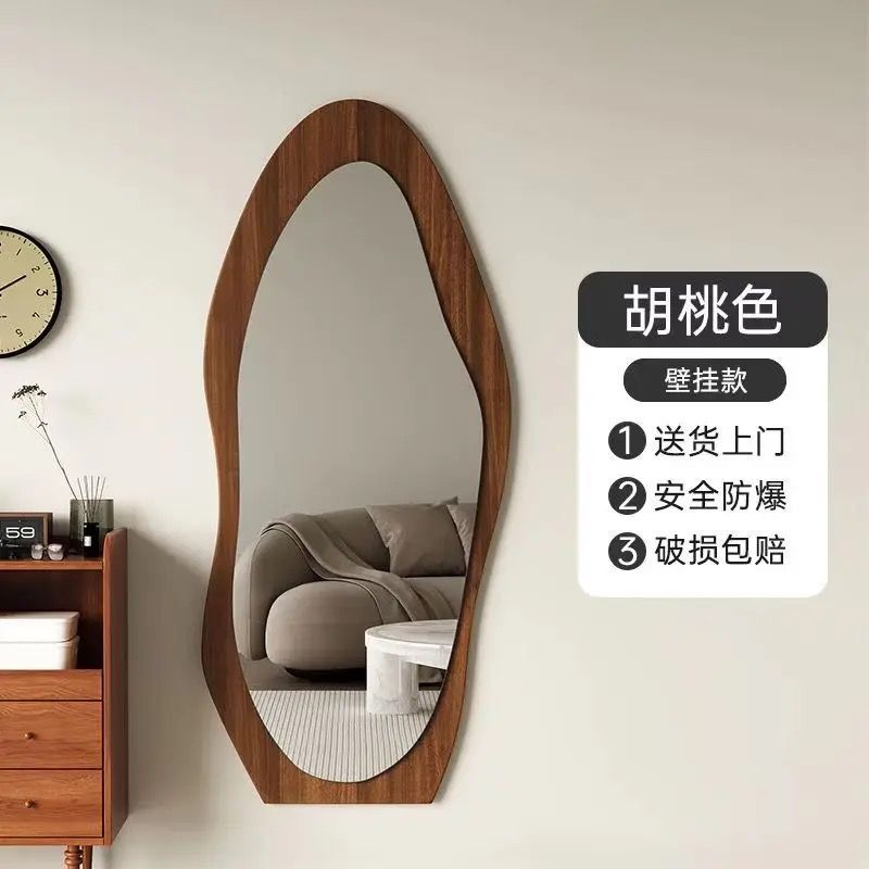 Гостиная, спальня, гардеробная и примерочная с деревянным зеркалом в полный рост специальной формы, гардеробная, простая современная вертикальная, другие.
