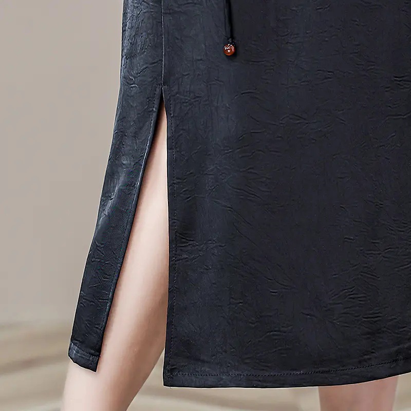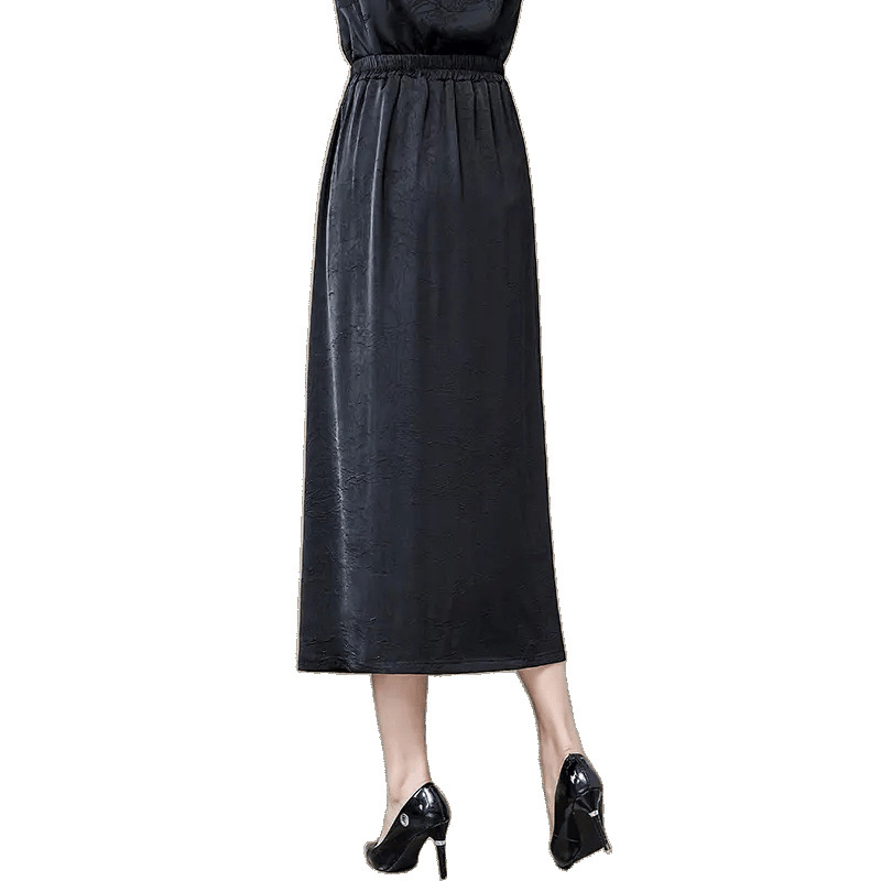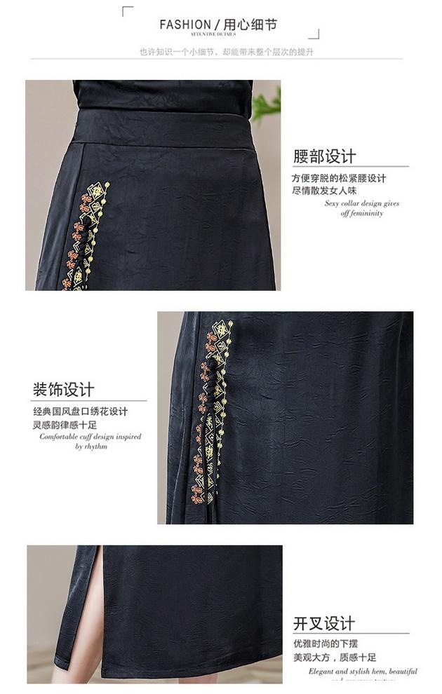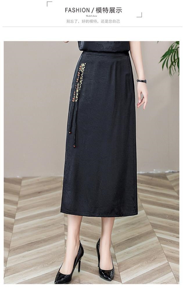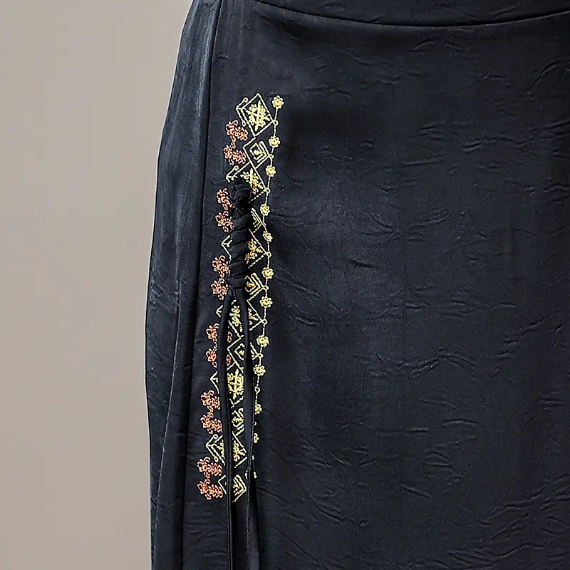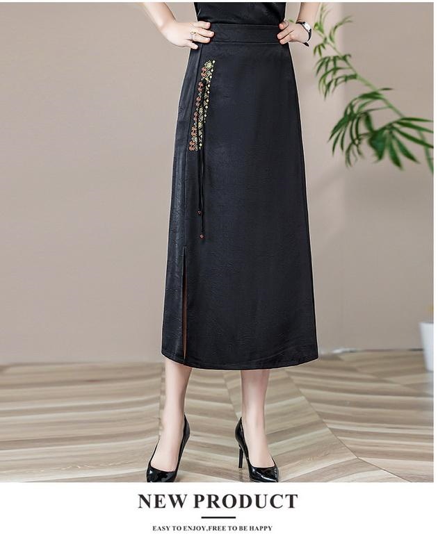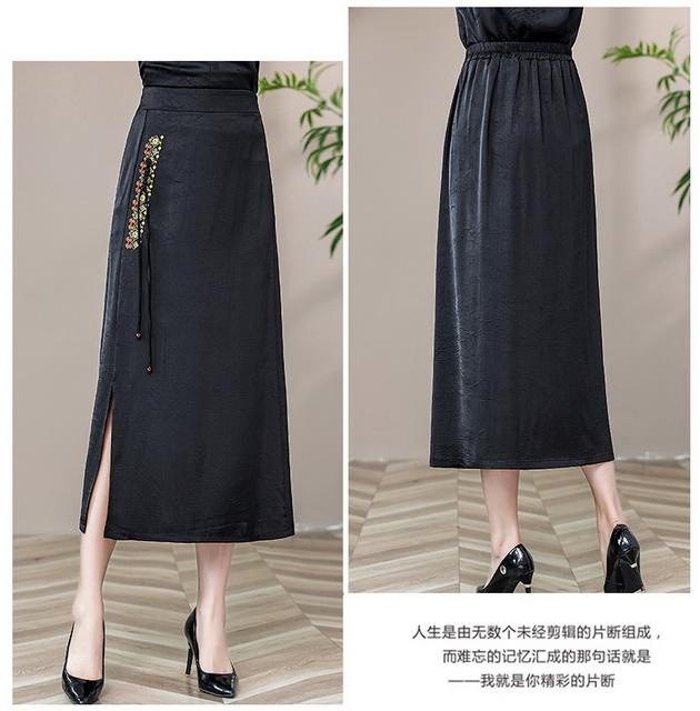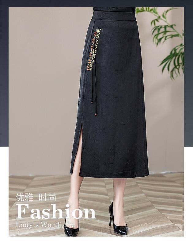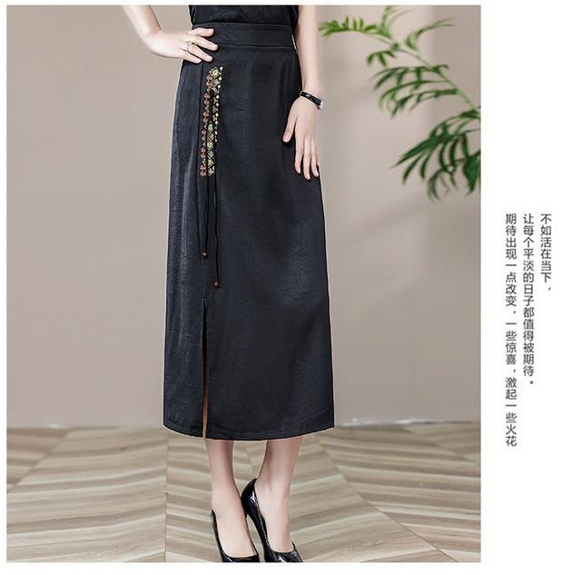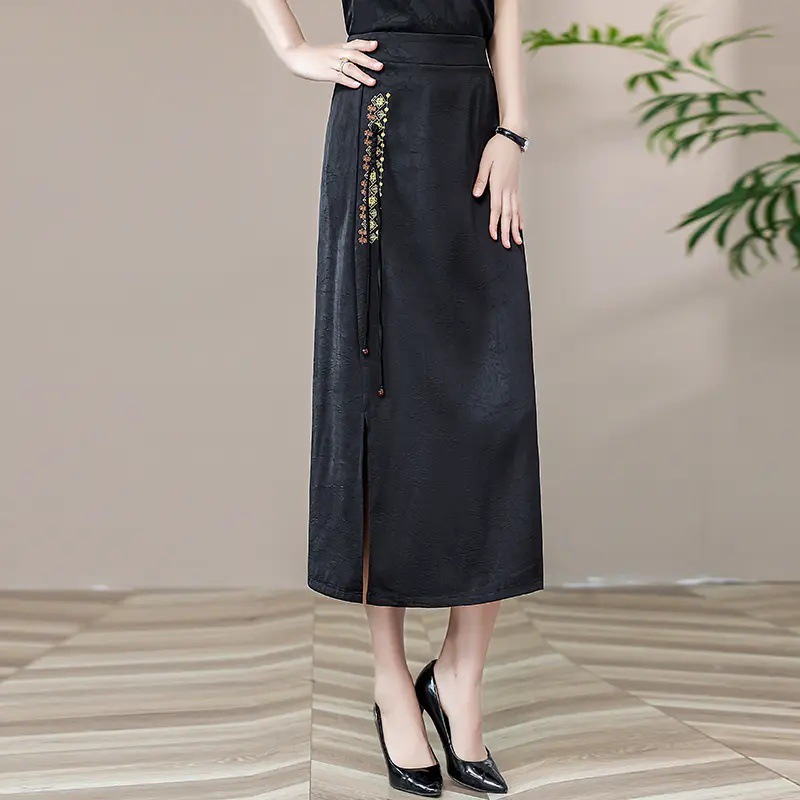 Новая юбка-чонсам в китайском стиле в стиле ретро, прямая атласная жаккардовая юбка в китайском стиле, новая весенне-летняя юбка с вышивкой и разрезом