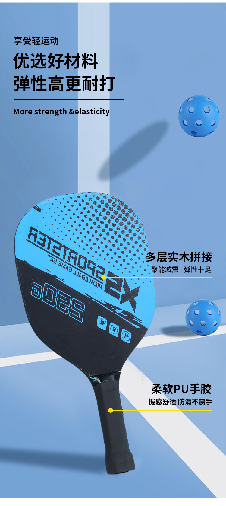 Набор для пляжного пиклбола: деревянная ракетка, мяч и аксессуары для активного отдыха на открытом воздухе