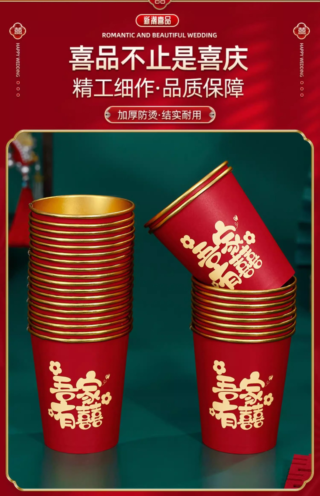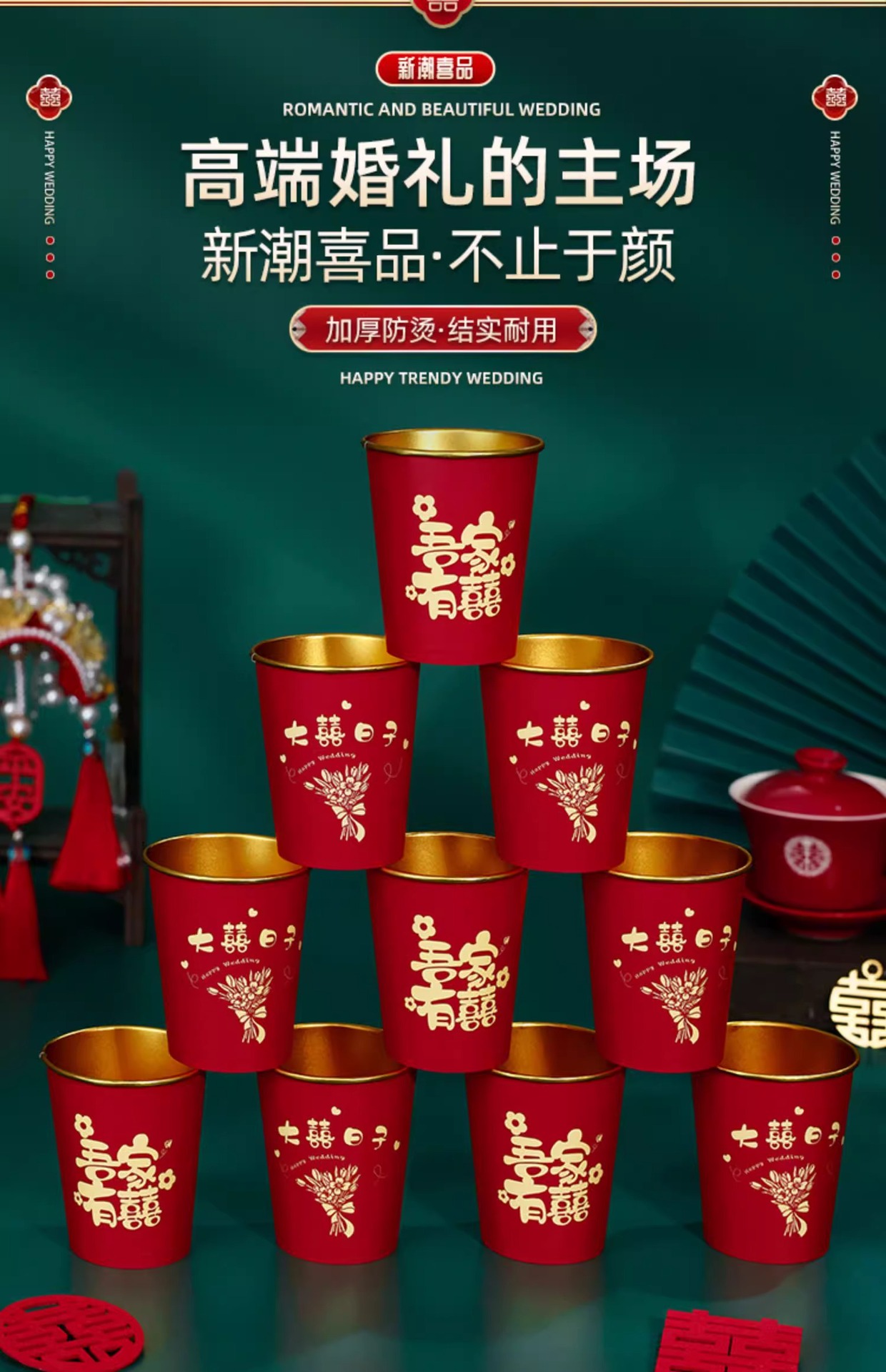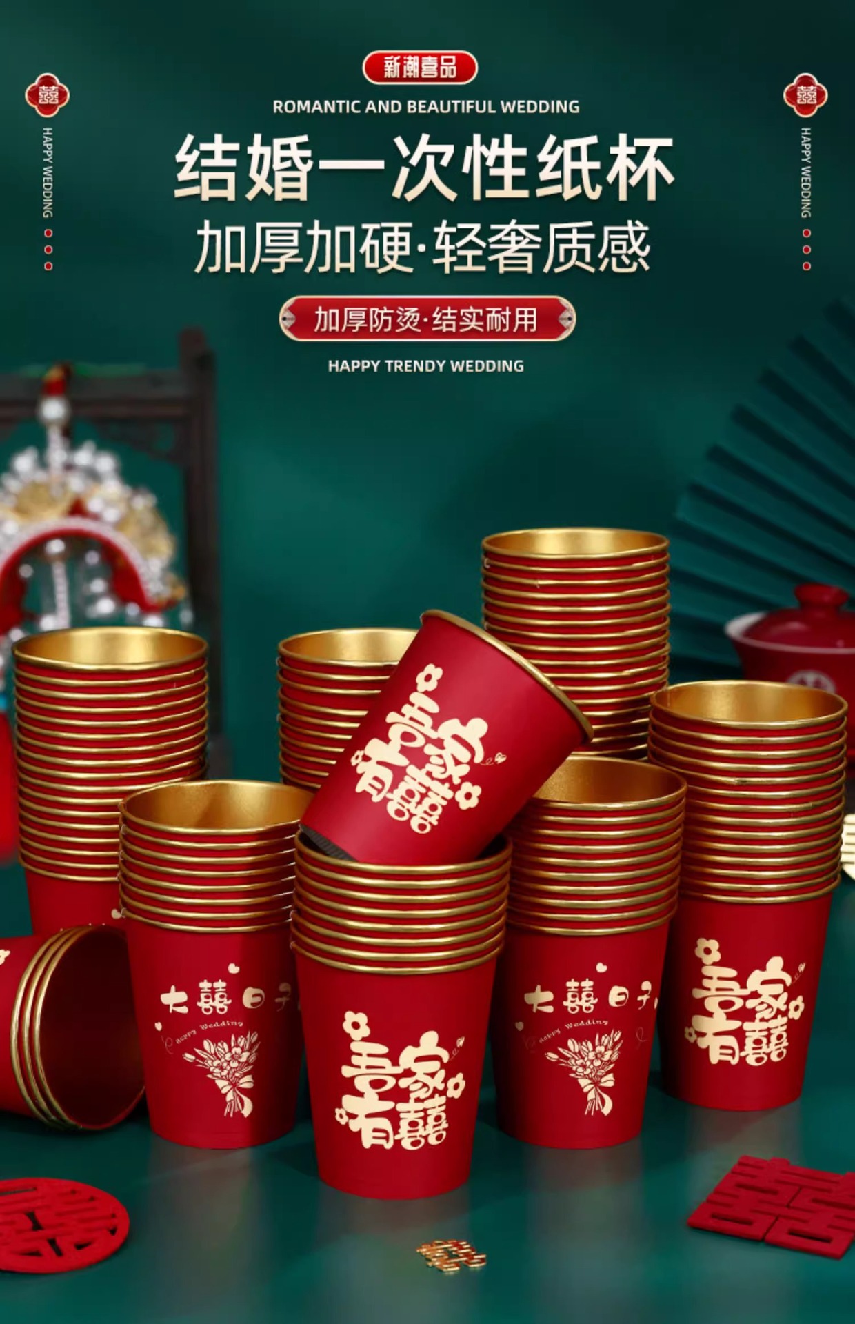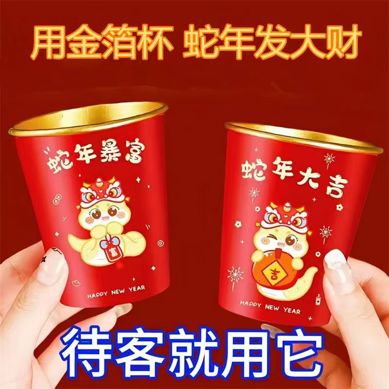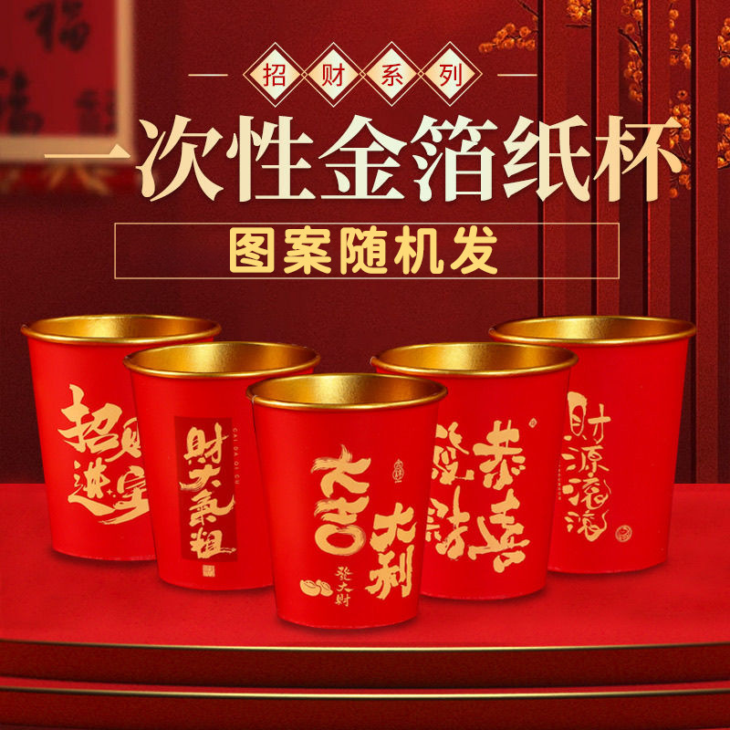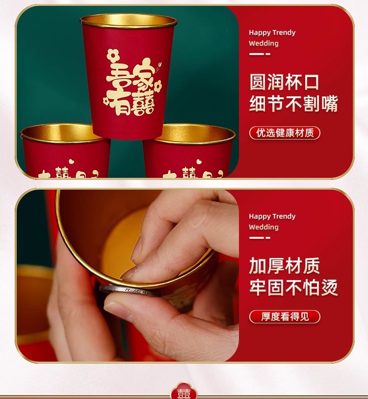 Свадебный одноразовый бумажный стакан из утолщенной золотой фольги, свадебный обручальный стакан, свадебный банкет, фестиваль, домашний красный чайный стакан