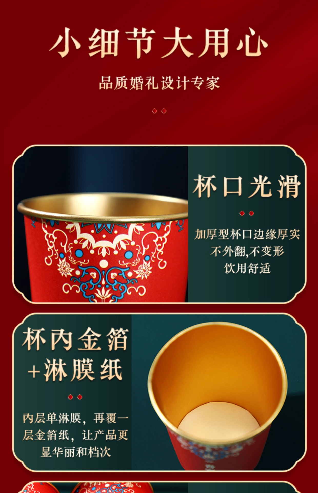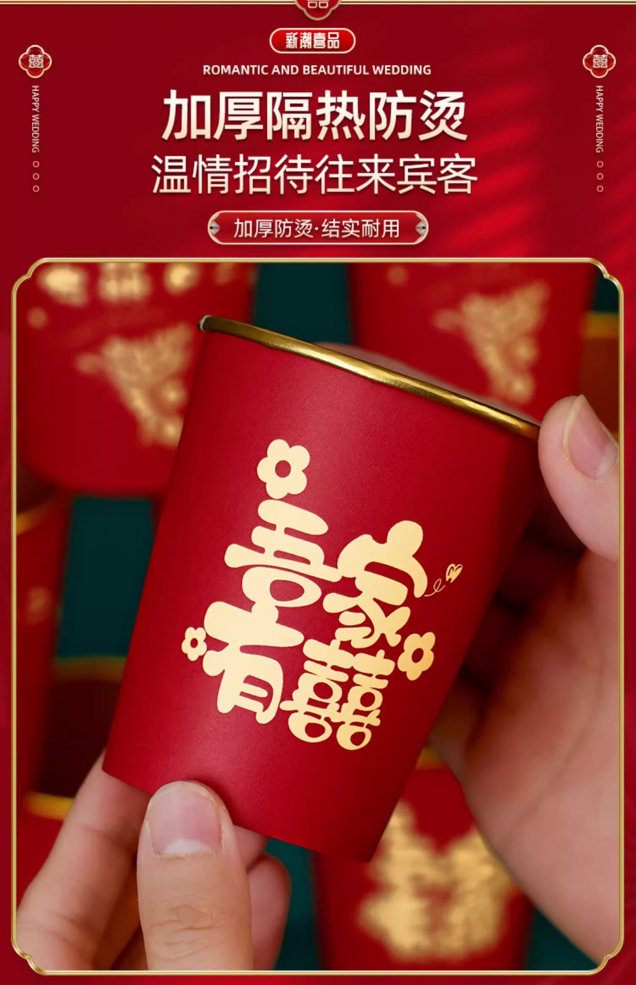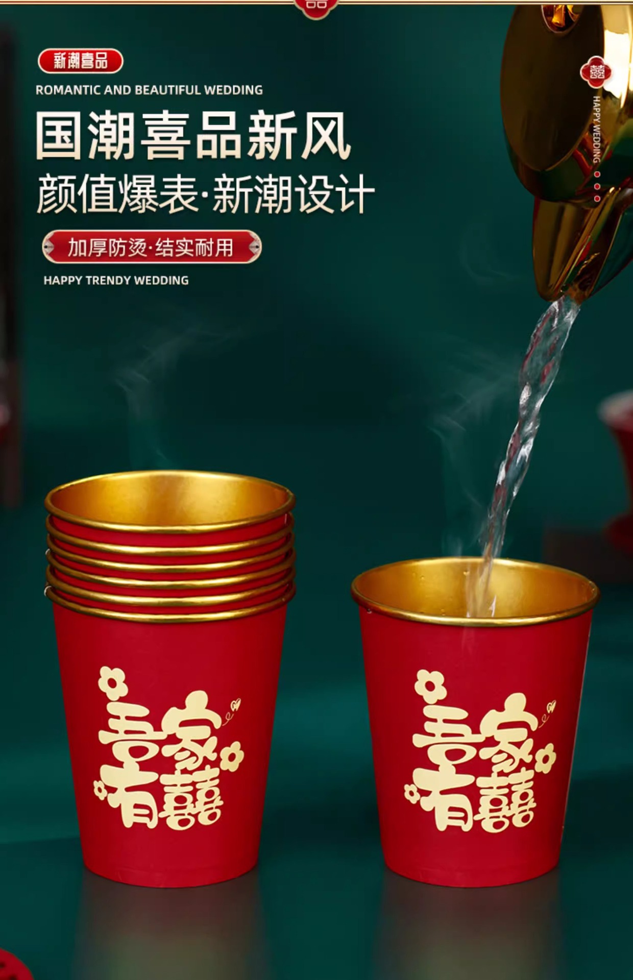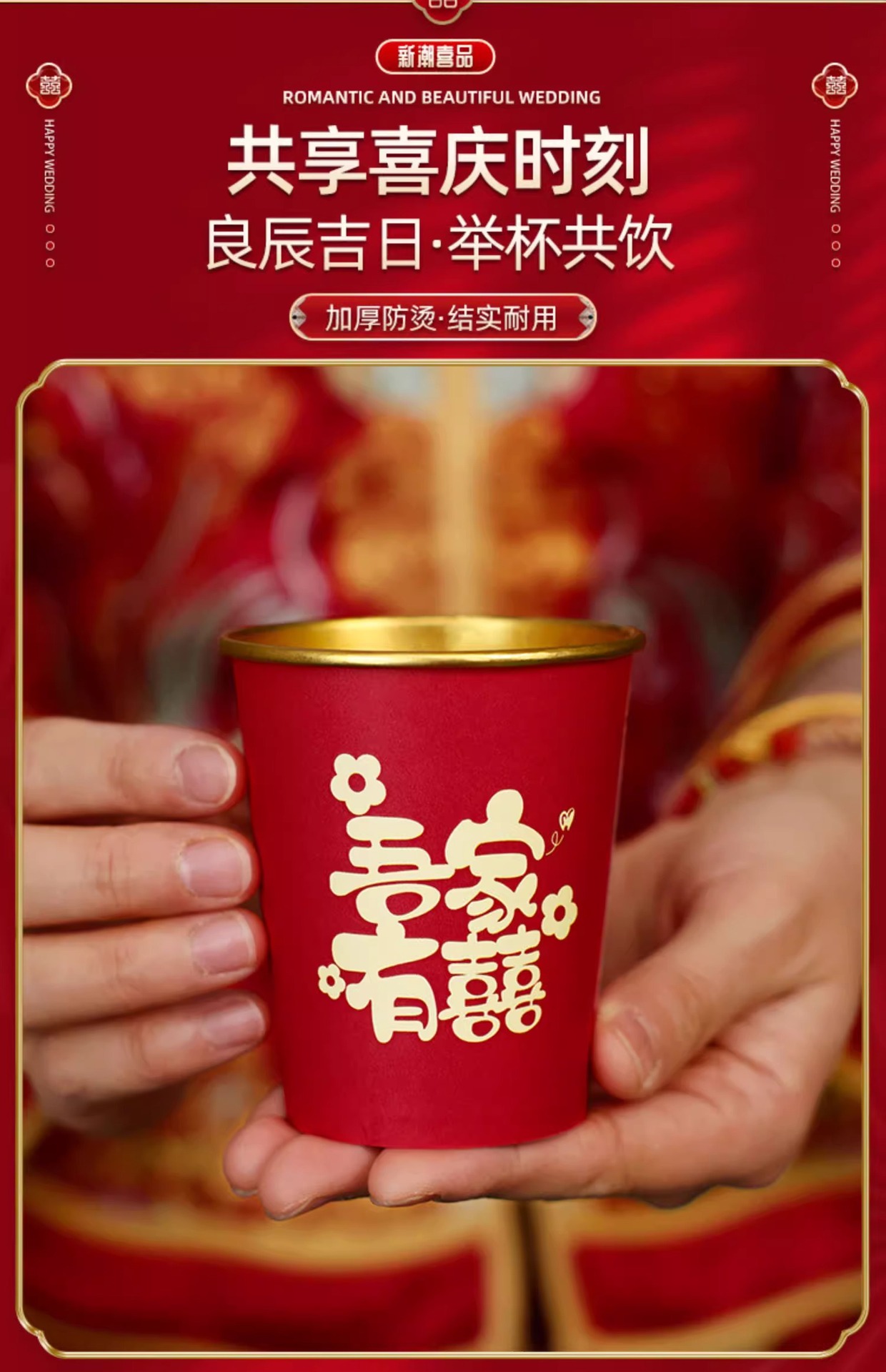 Свадебный одноразовый бумажный стакан из утолщенной золотой фольги, свадебный обручальный стакан, свадебный банкет, фестиваль, домашний красный чайный стакан
