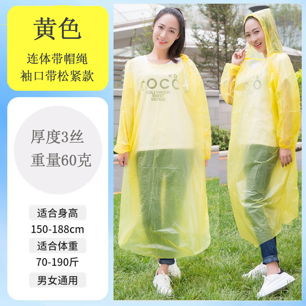 Одноразовый дождевик 60г оптом в наличии от производителя, утолщенный, с капюшоном на 3 петли, с манжетами на резинке, шнурком для капюшона, дождевик из полиэтилена