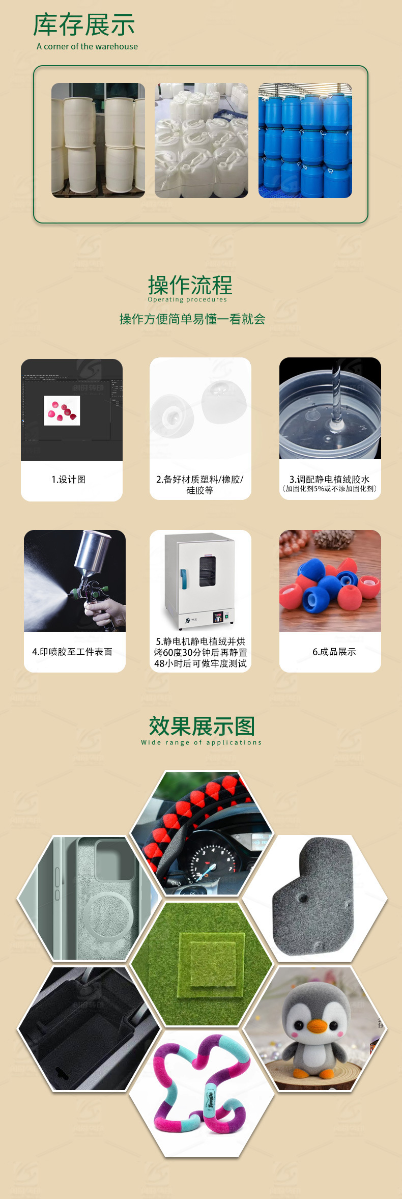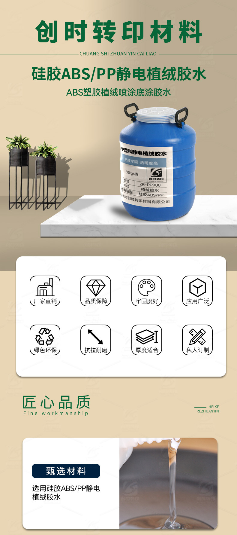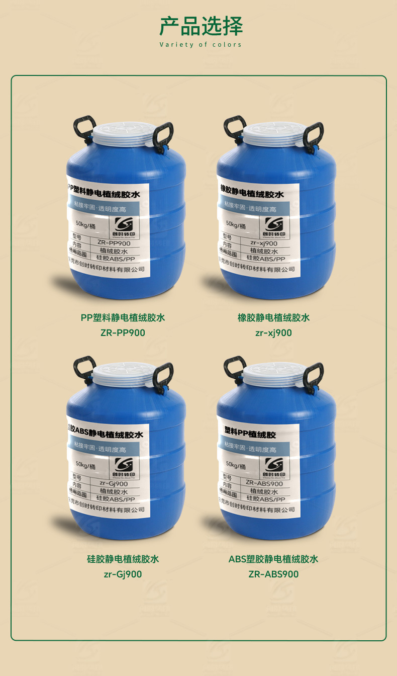 ПП пластиковый электростатический флоковый клей ЗР–ПП900; Резиновый электростатический флоковый клей зр–хдж900; Силиконовый электростатический флоковый клей зр-Гдж900; Электростатический флокирующий клей на основе АБС-пластика ЗР–АБС900; Статический флокирующий клей ZR-TY900
