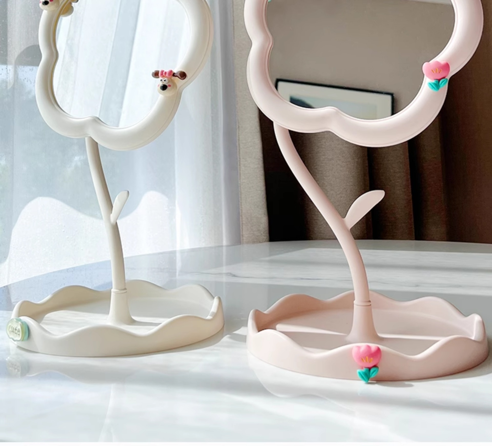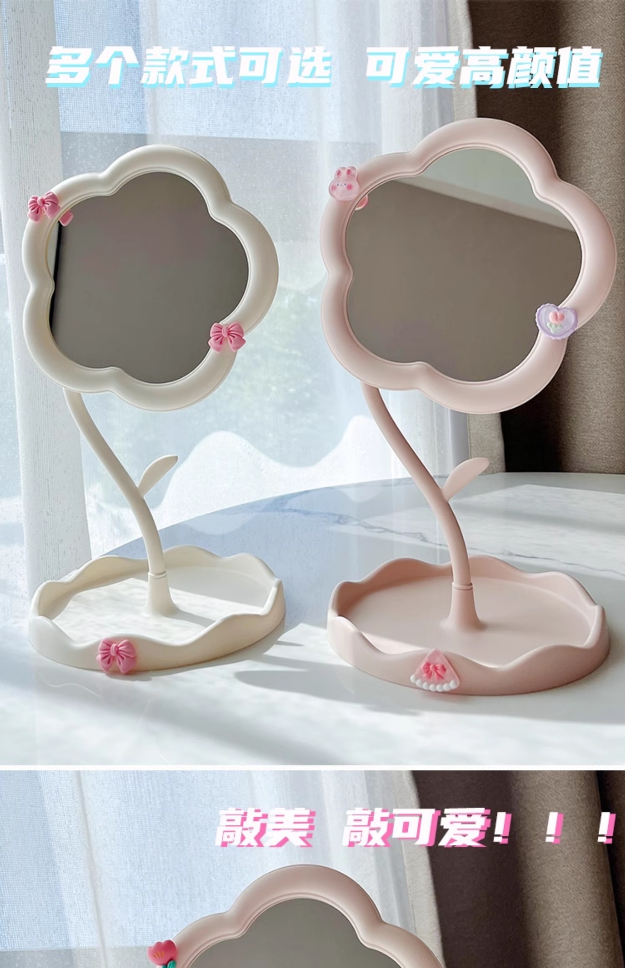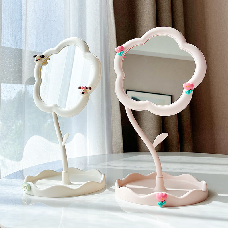 Зеркало для макияжа настольное, милое, вращающееся, для дома, студенческого общежития, портативное, маленькое, с цветочным дизайном.