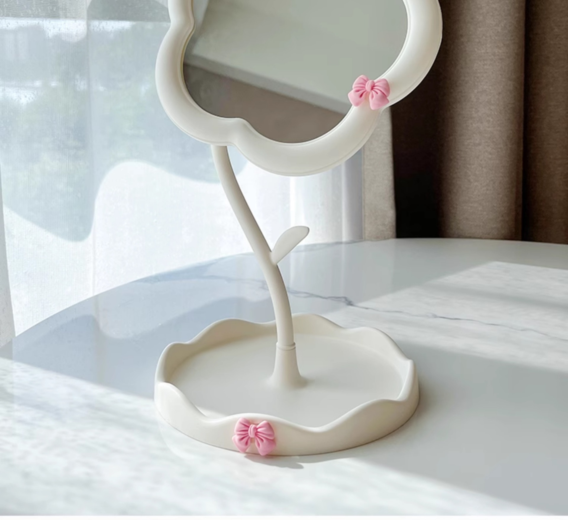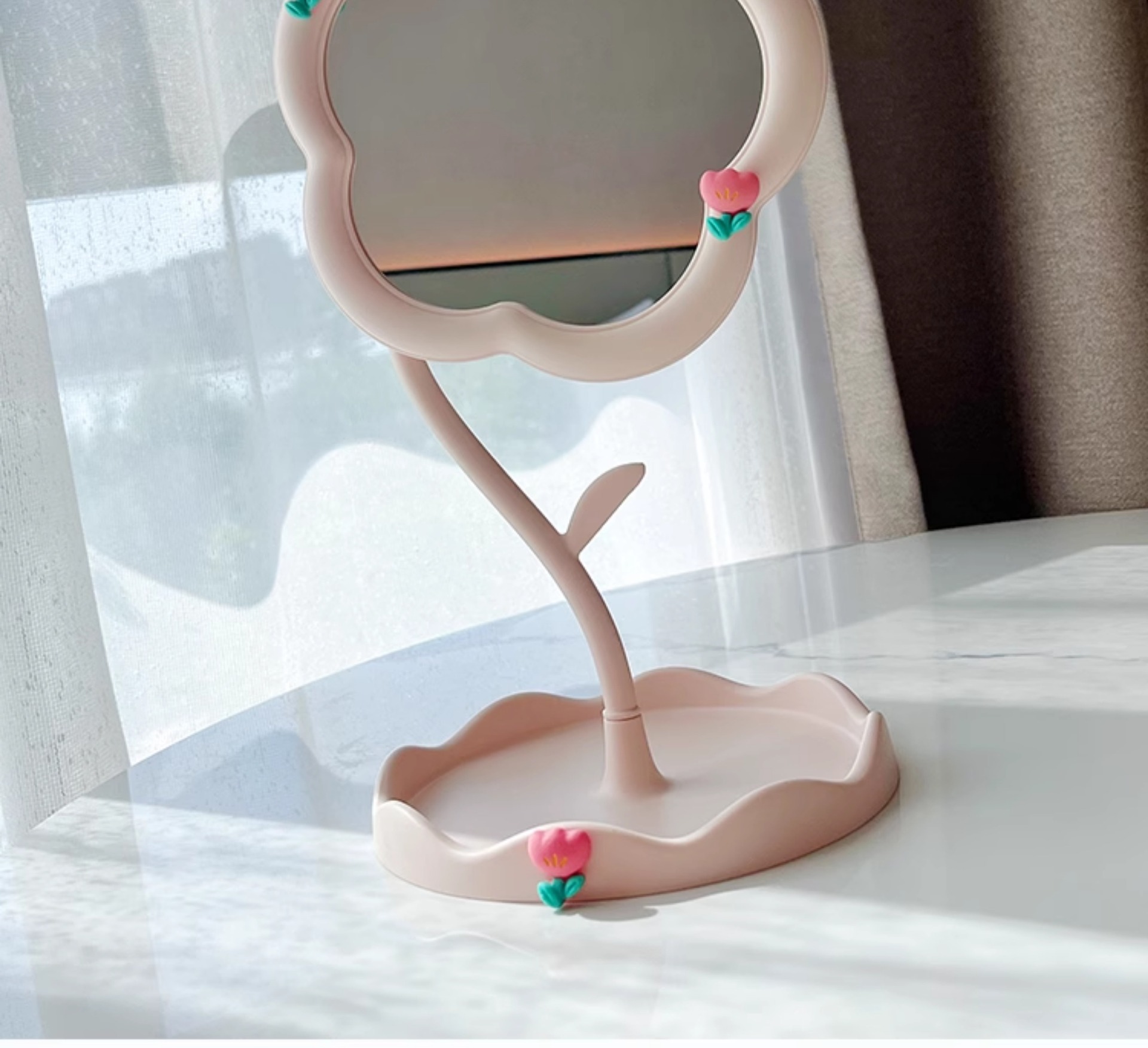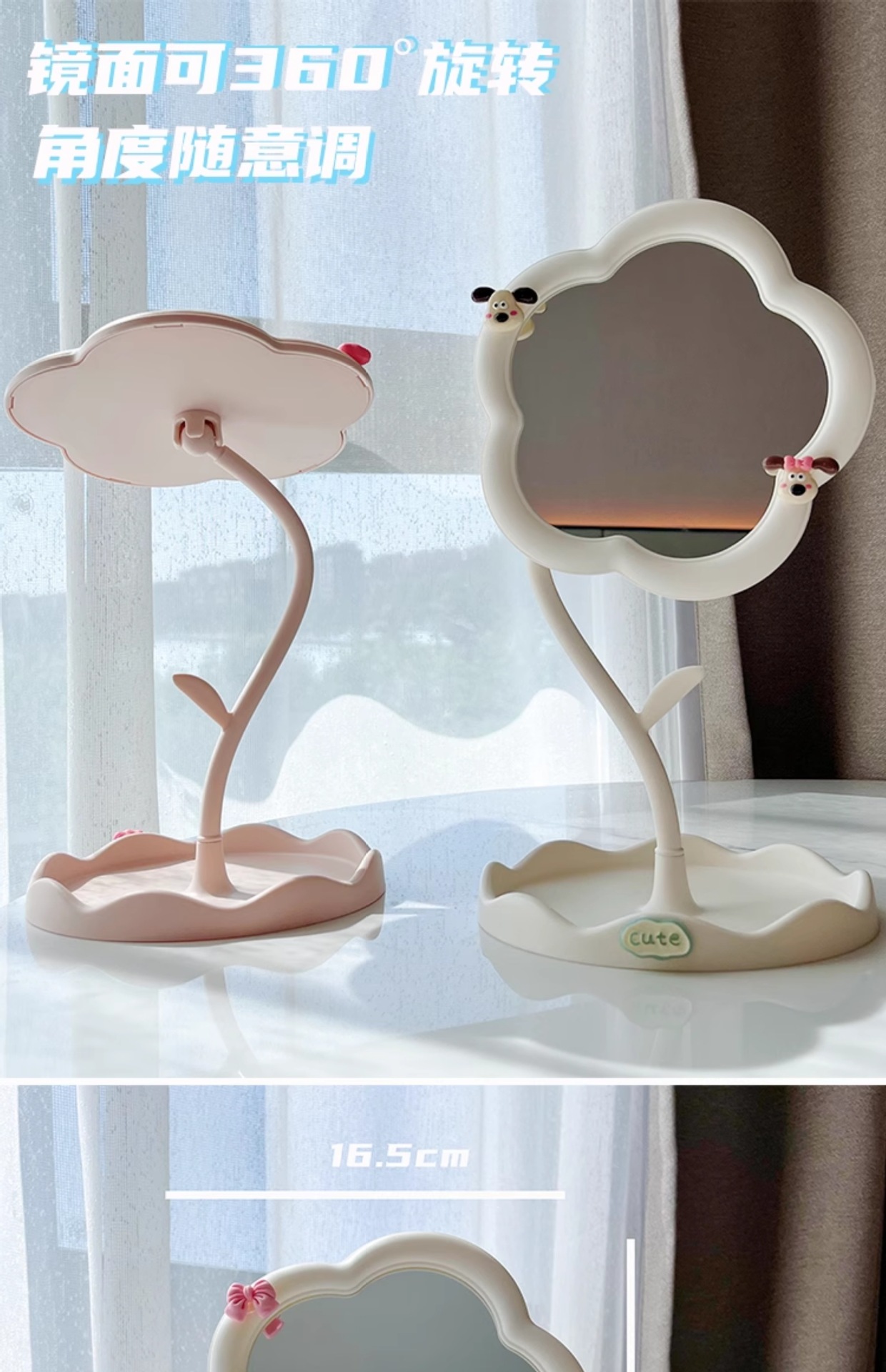 Зеркало для макияжа настольное, милое, вращающееся, для дома, студенческого общежития, портативное, маленькое, с цветочным дизайном.