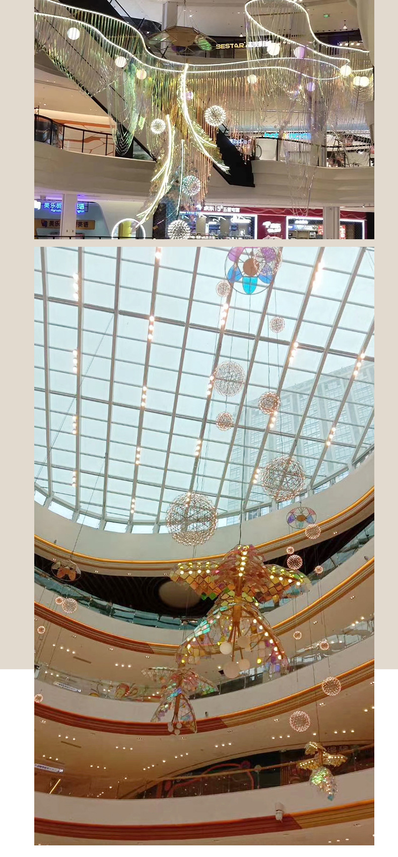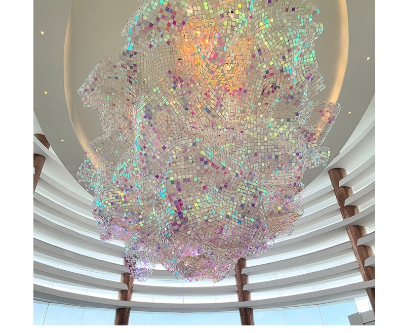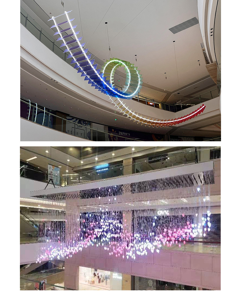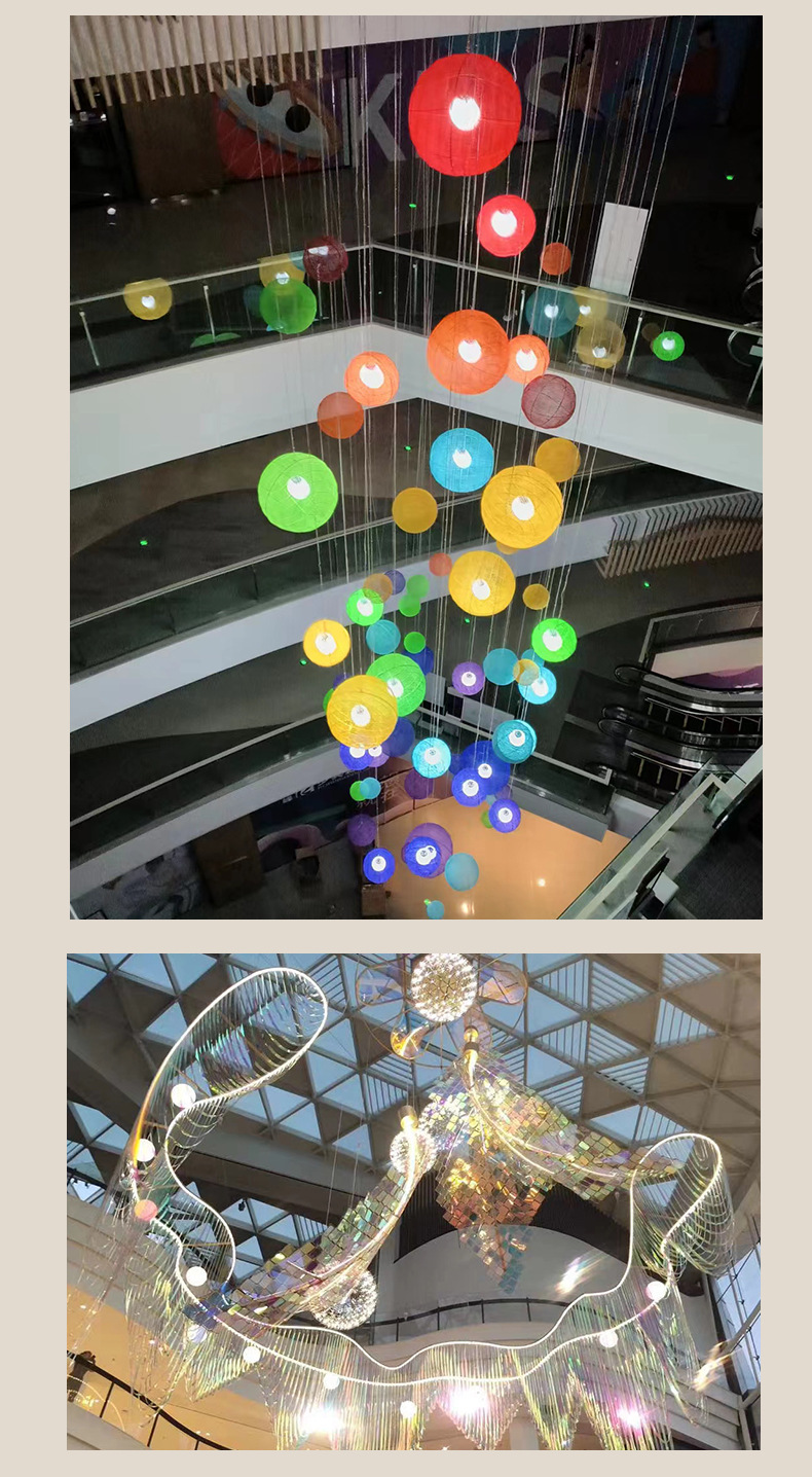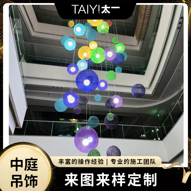 Оформление торгового центра, отеля, банкетного зала, внутреннего дворика, большого атриума; подвесные светильники, подвесная форма.