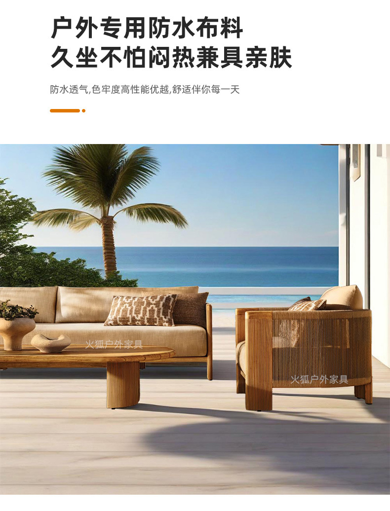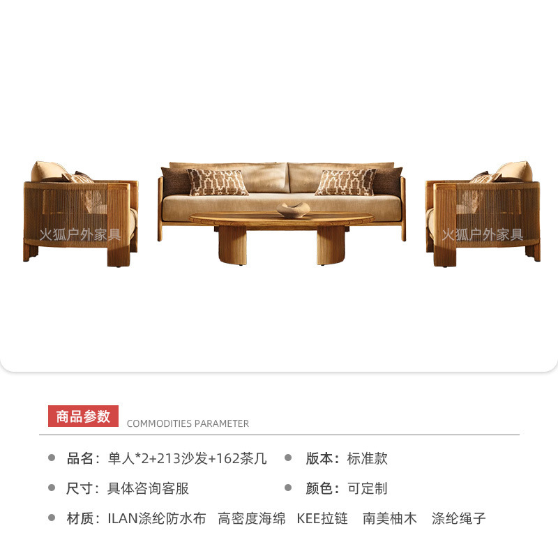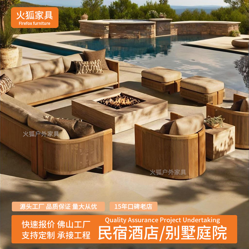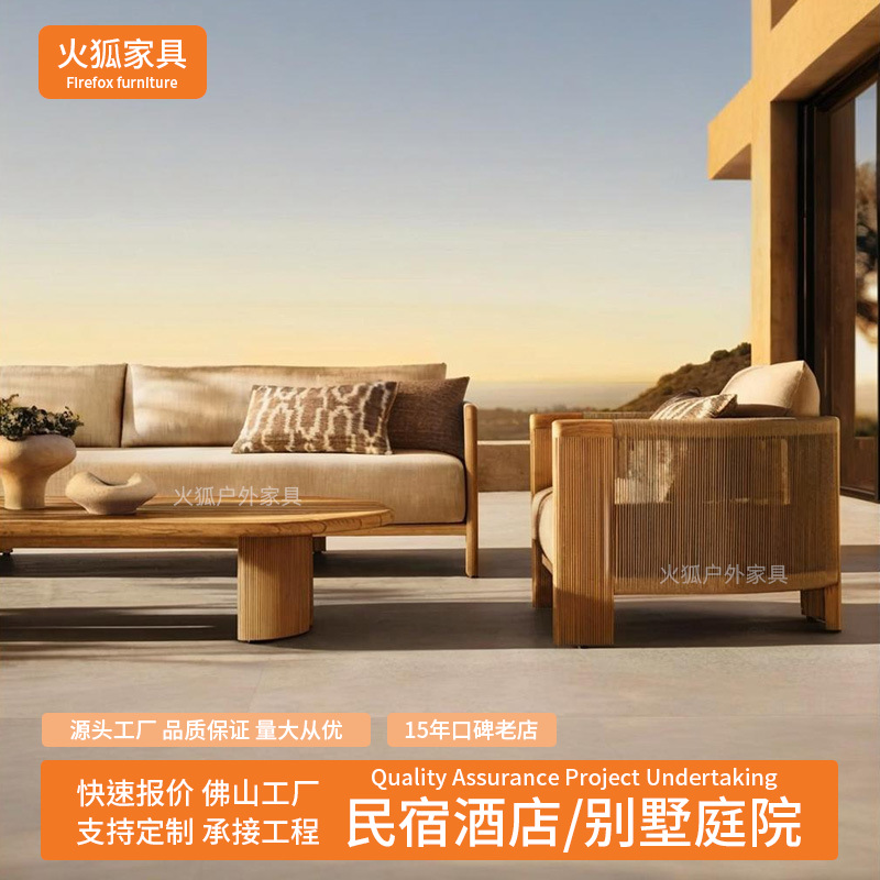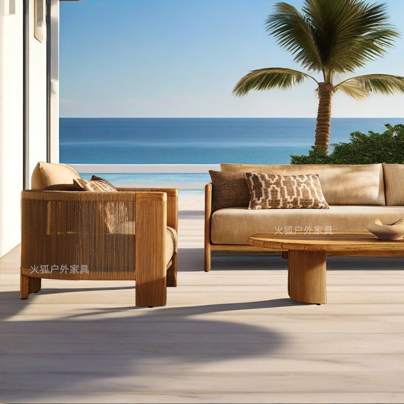 Уличный диван из ротанга, открытый двор, балкон виллы, веревочный журнальный столик, садовый отдых, мебель из ротанга для отеля из цельного дерева
