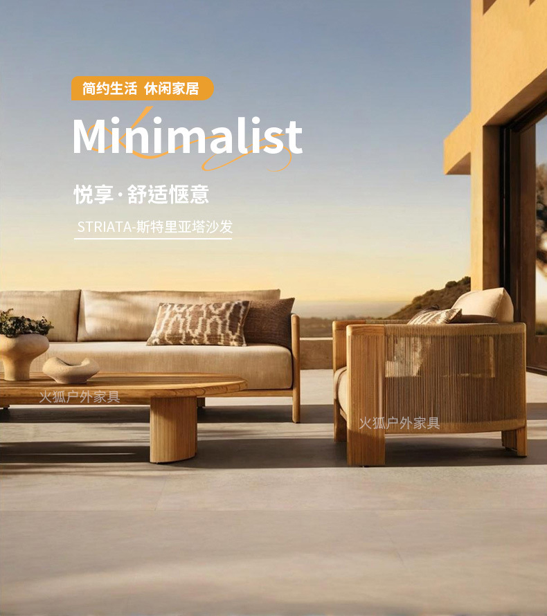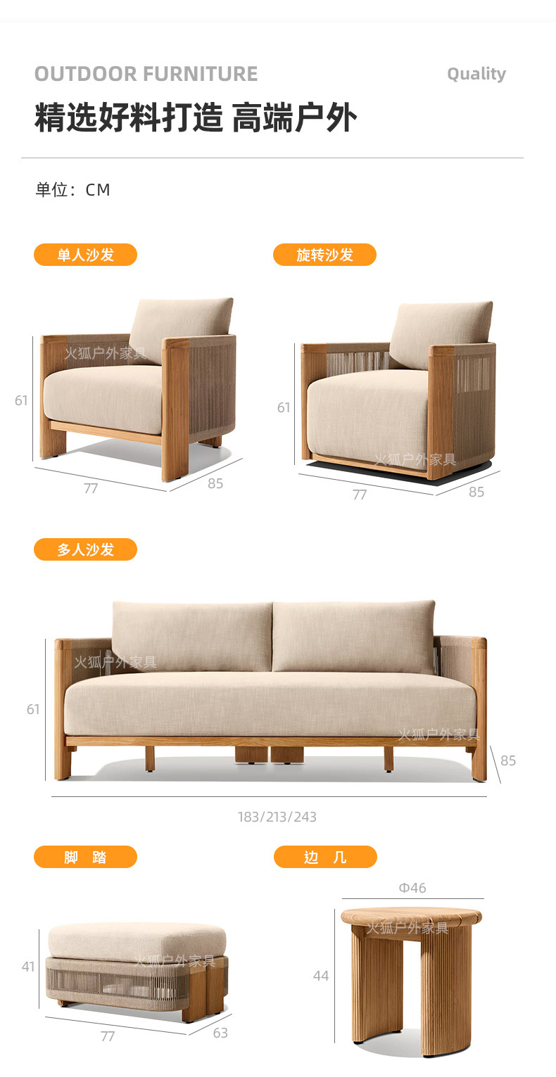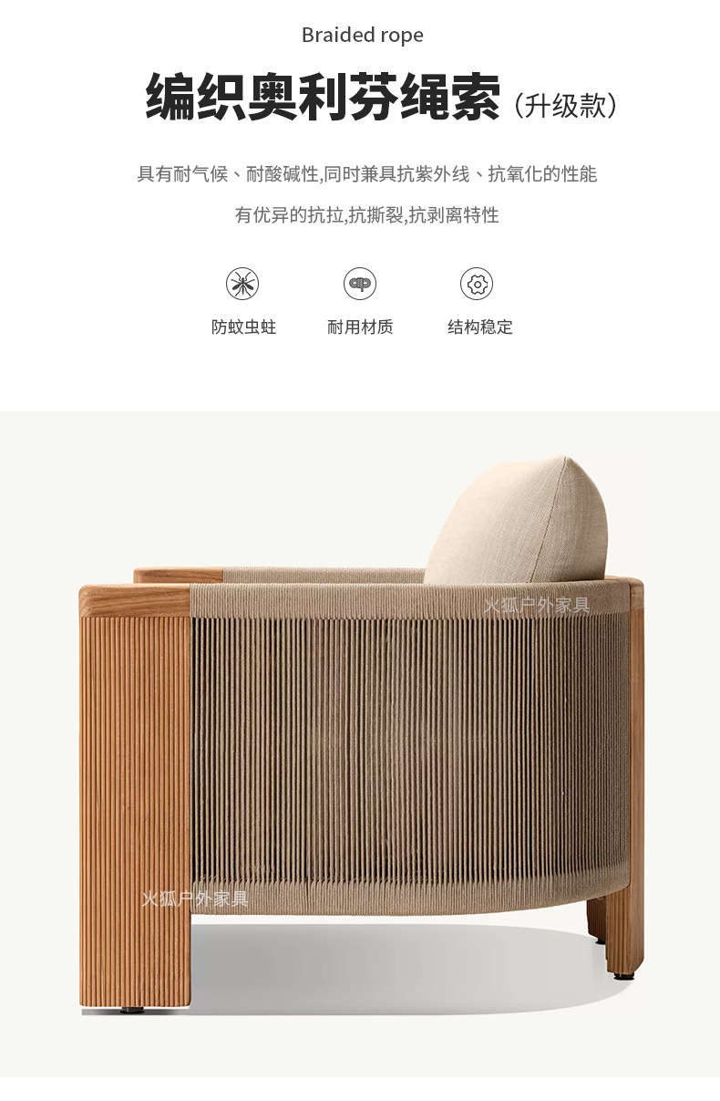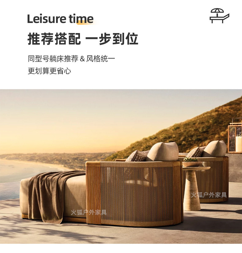 Уличный диван из ротанга, открытый двор, балкон виллы, веревочный журнальный столик, садовый отдых, мебель из ротанга для отеля из цельного дерева