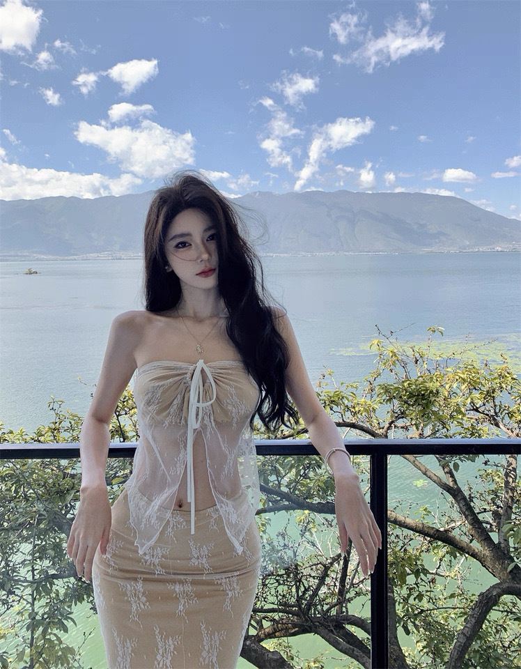 Купальник женский раздельный трехчастный однотонный бикини тайский сладкий длинная юбка пляжный купальник для горячих источников профессиональный опт