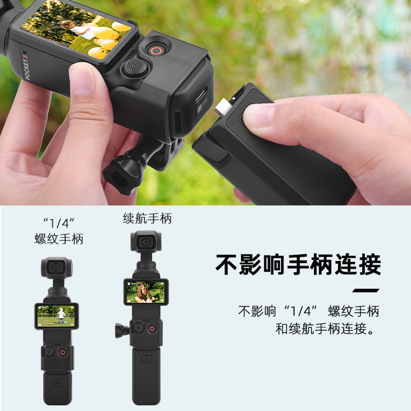 3. 不影响“1/4” 螺纹手柄,续航手柄连接;