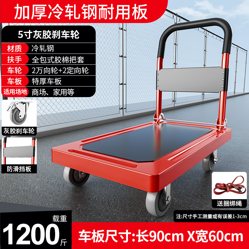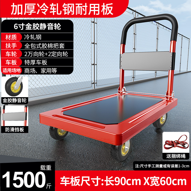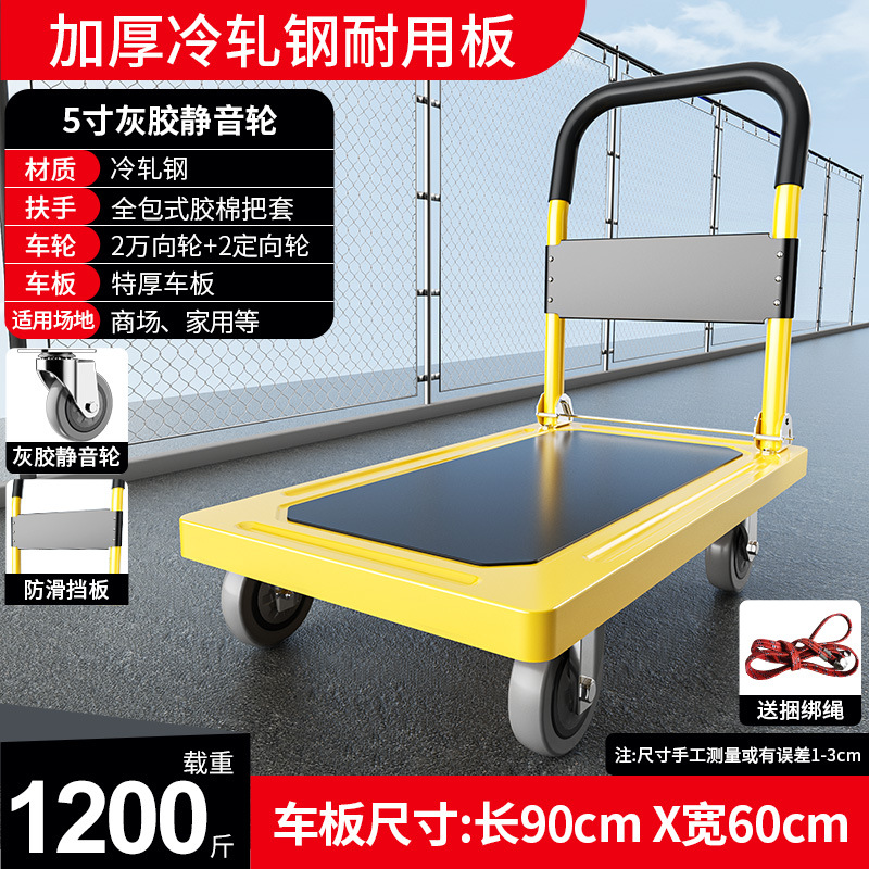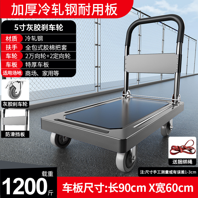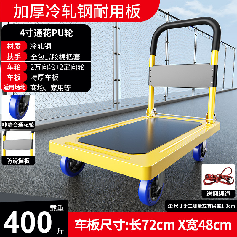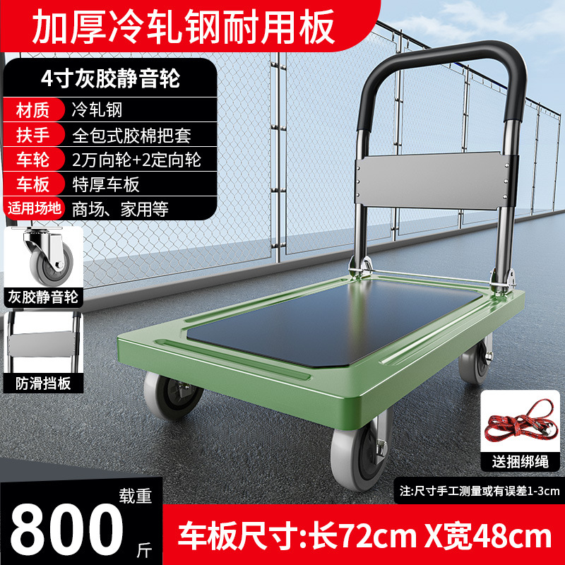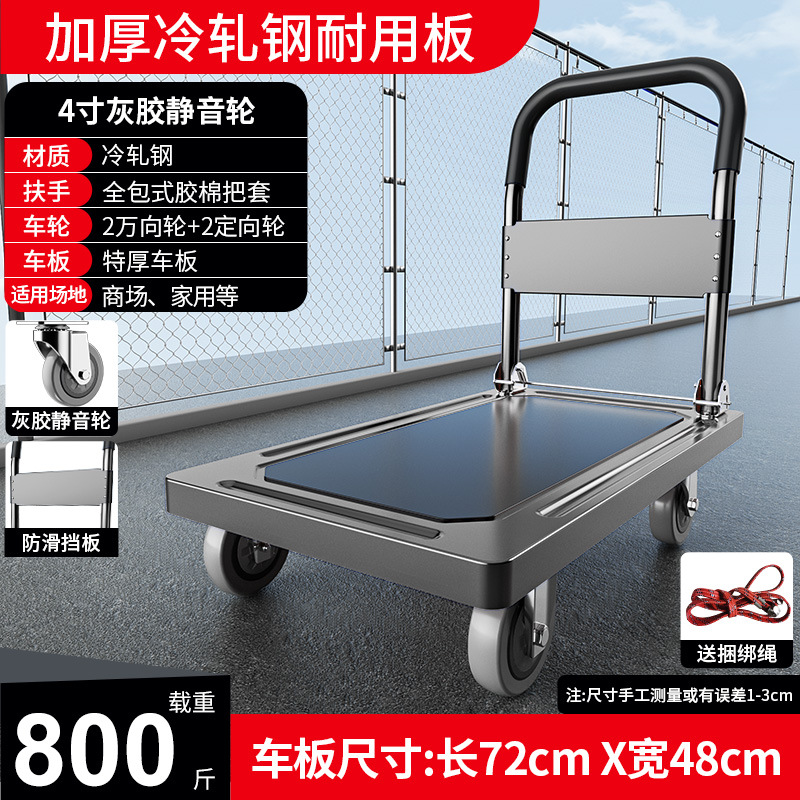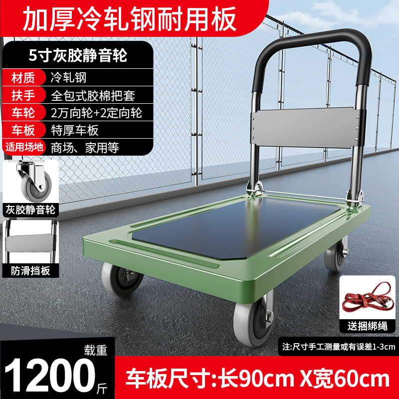 Тележка из стальной пластины, бесшумная ручная тележка для грузов, бытовой портативный прицеп с плоской платформой, складная тележка для инструментов