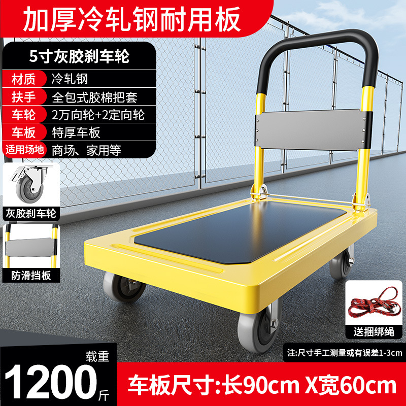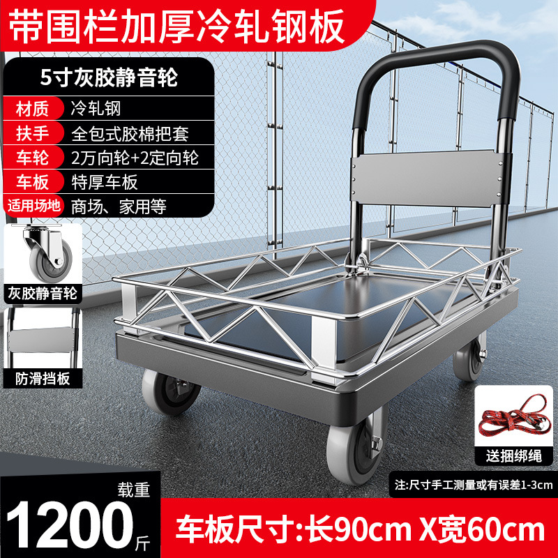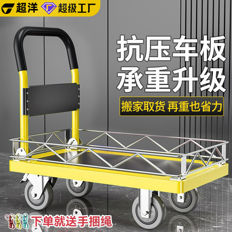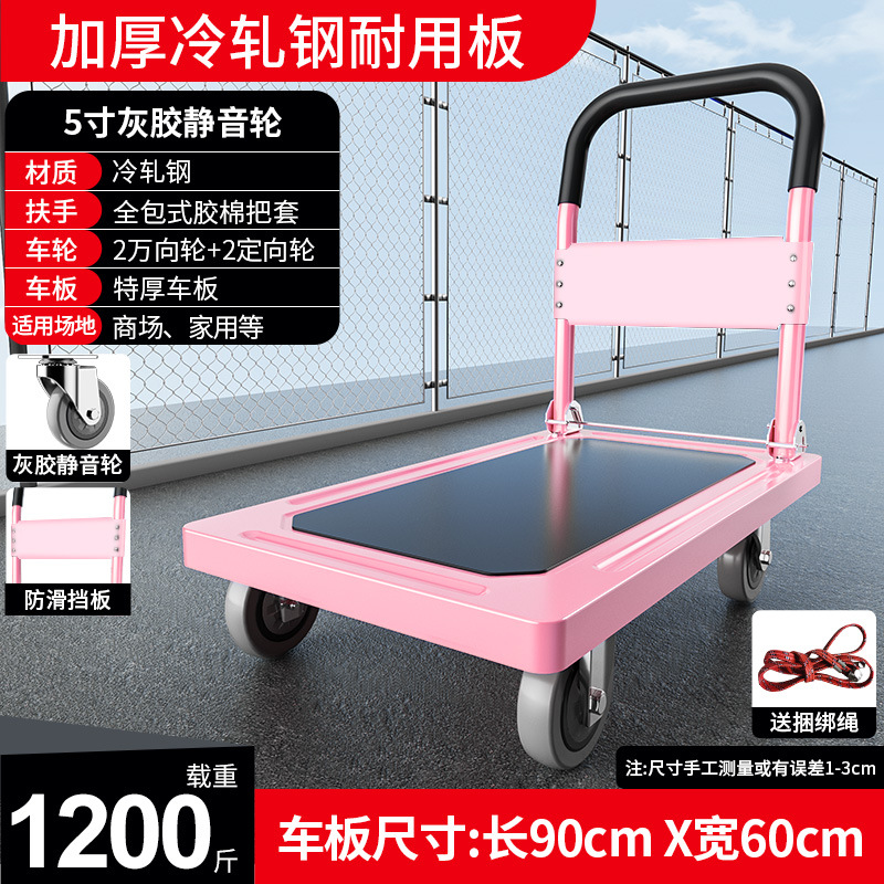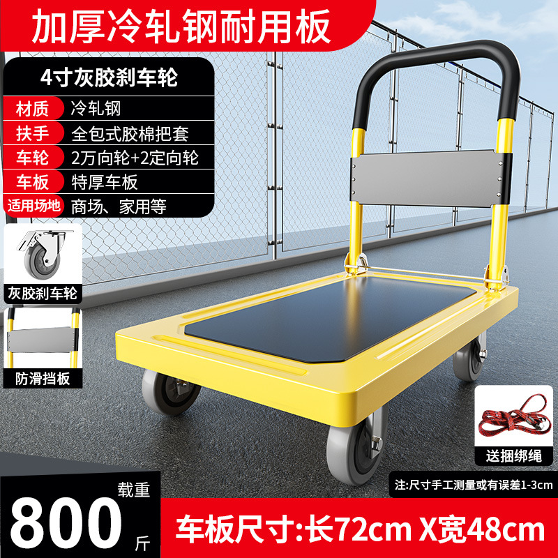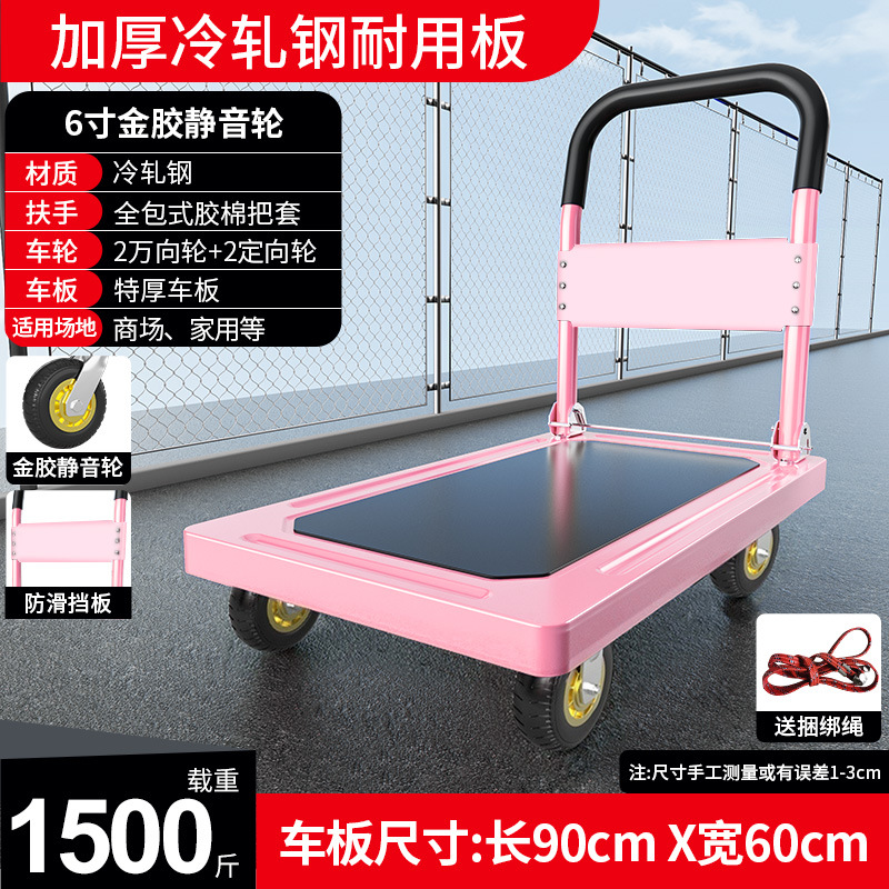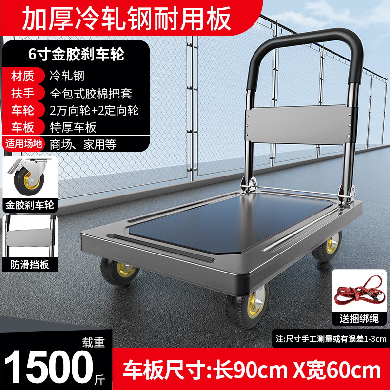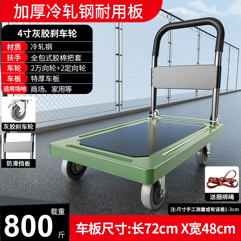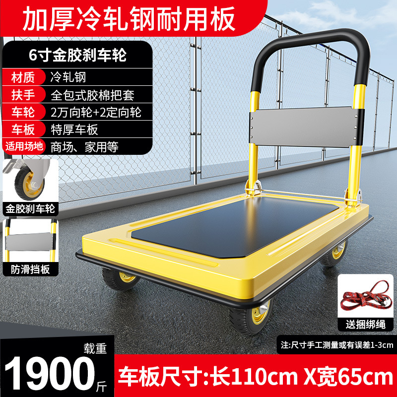 Тележка из стальной пластины, бесшумная ручная тележка для грузов, бытовой портативный прицеп с плоской платформой, складная тележка для инструментов