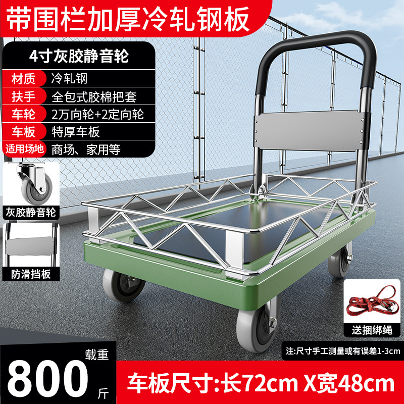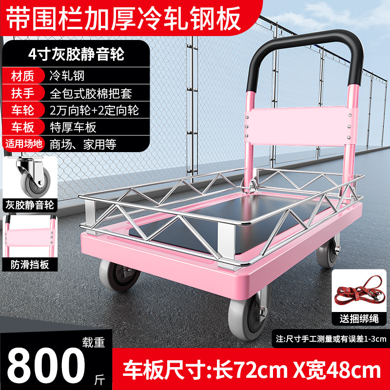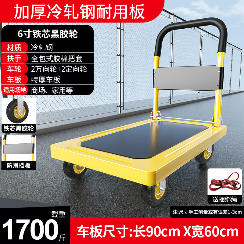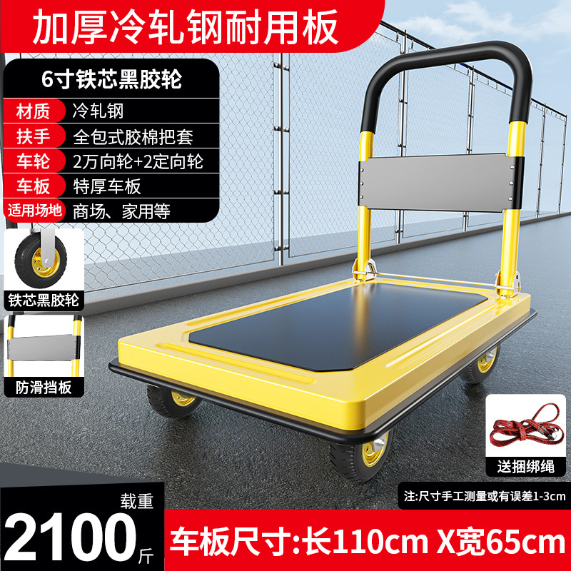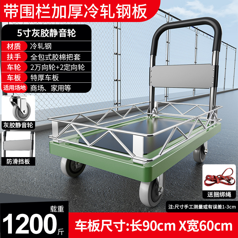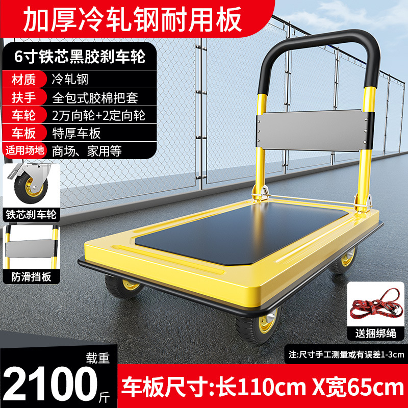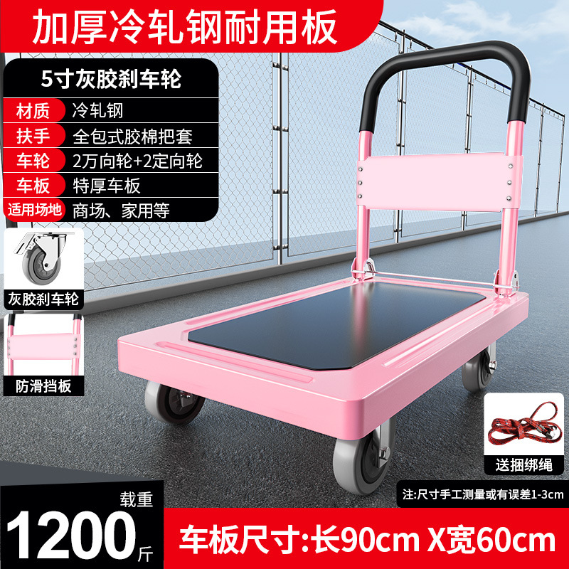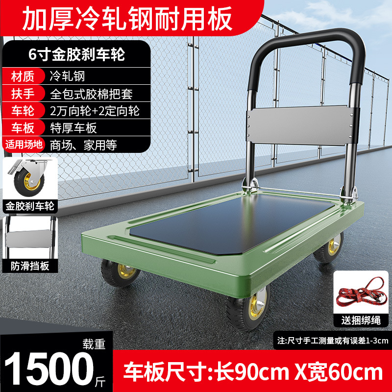Тележка из стальной пластины, бесшумная ручная тележка для грузов, бытовой портативный прицеп с плоской платформой, складная тележка для инструментов