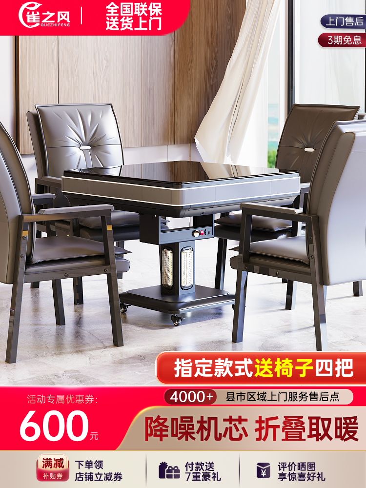 Складной автомат для маджонга для домашнего использования, полностью автоматический обеденный стол, электрический стол для маджонга двойного назначения, малошумный интеллектуальный автомат для маджонга для четырех игроков.