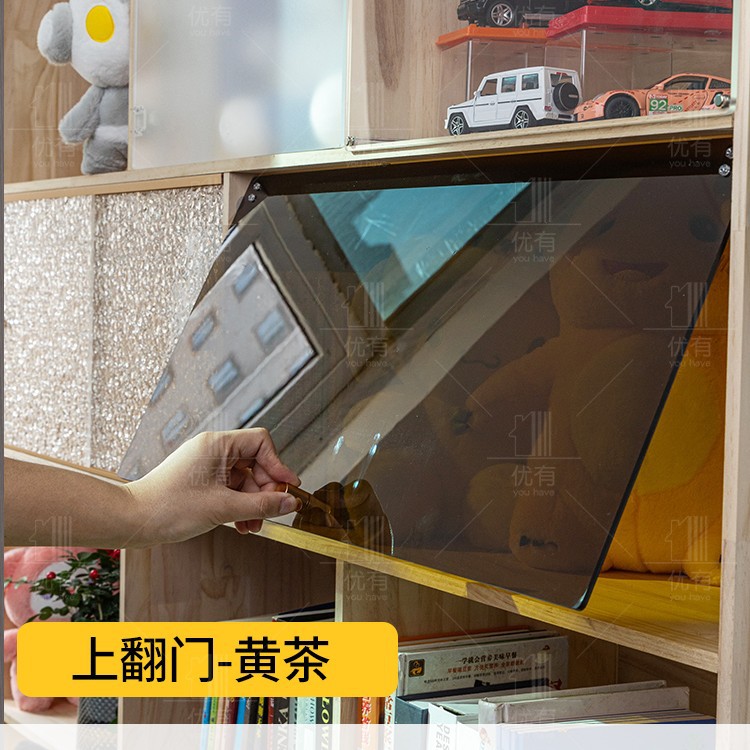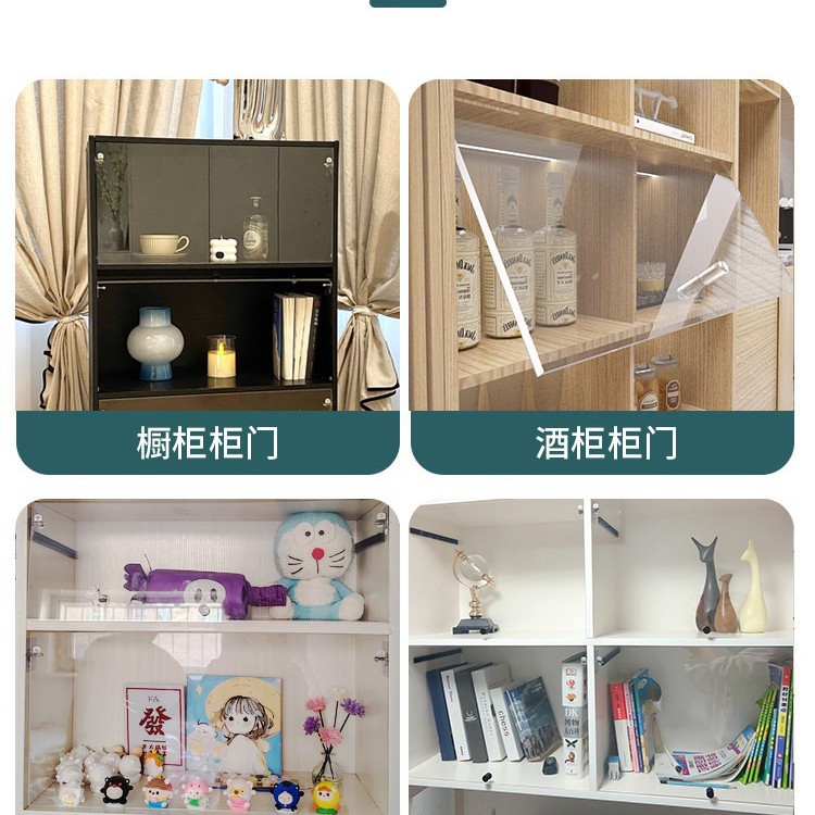 Акриловая дверь шкафа, дверь книжного шкафа с самовстановленной простой откидной дверной панелью, стеклянная пылезащитная защита без сверления