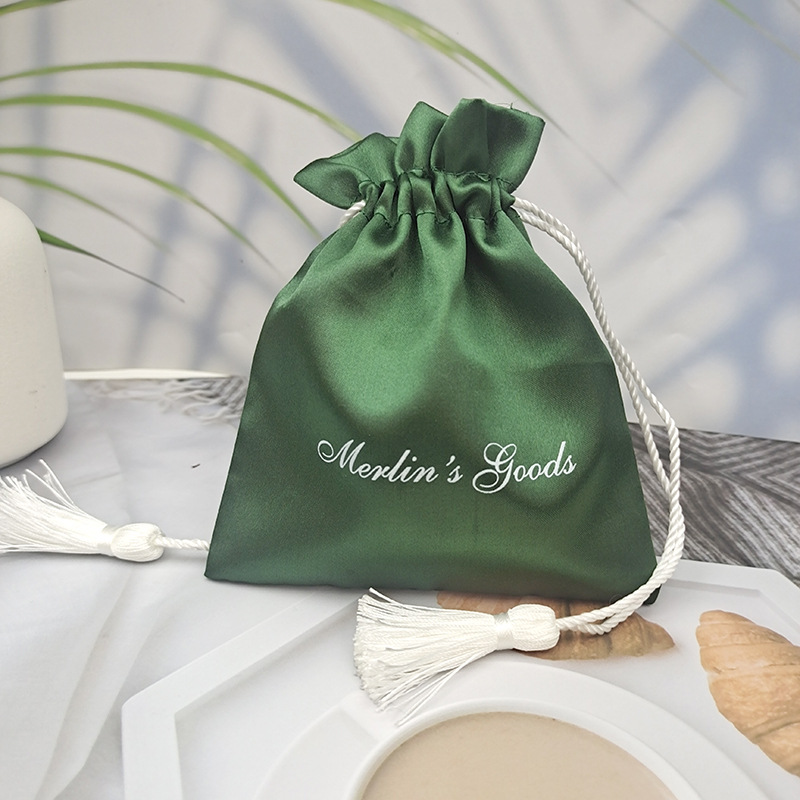 Индивидуальные атласные брюки с карманом на шнурке, подарочная упаковка с кисточкой, сумка для хранения духов, помады и косметики с логотипом.