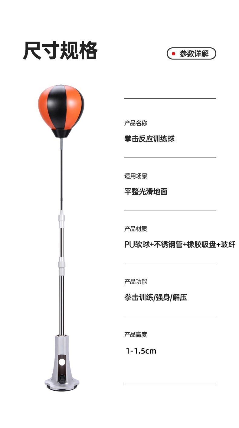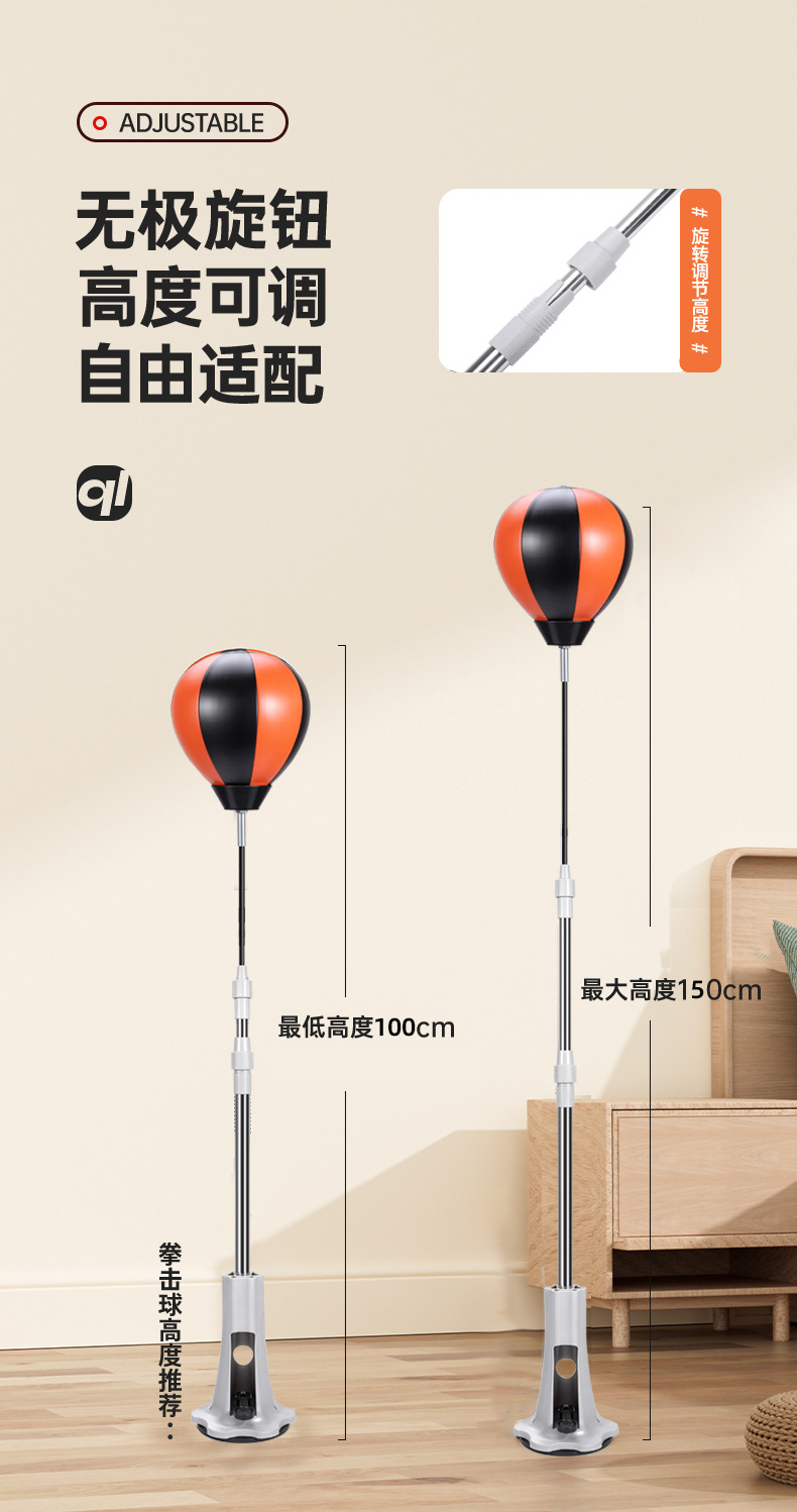 Боксерский реактивный мяч для домашнего использования для взрослых и детей, тренировочная мишень, вертикальный скоростной мяч для снятия стресса и предотвращения падения, регулируемая по высоте.
