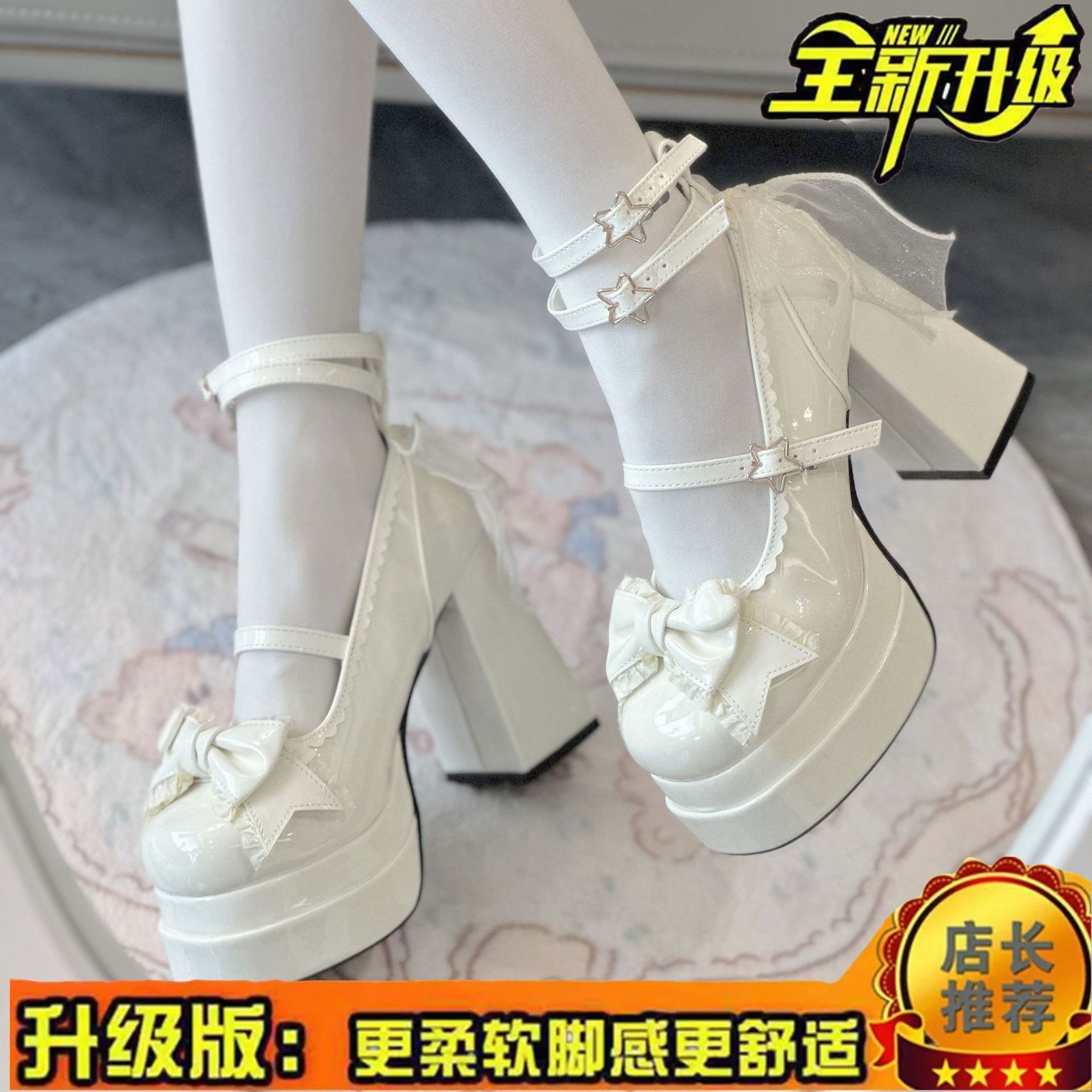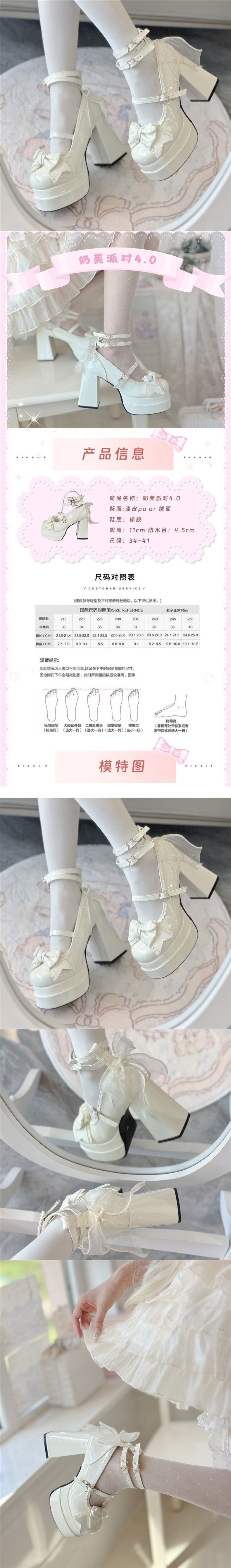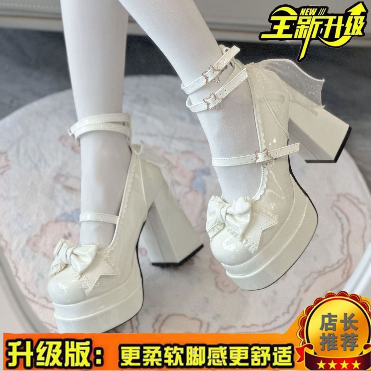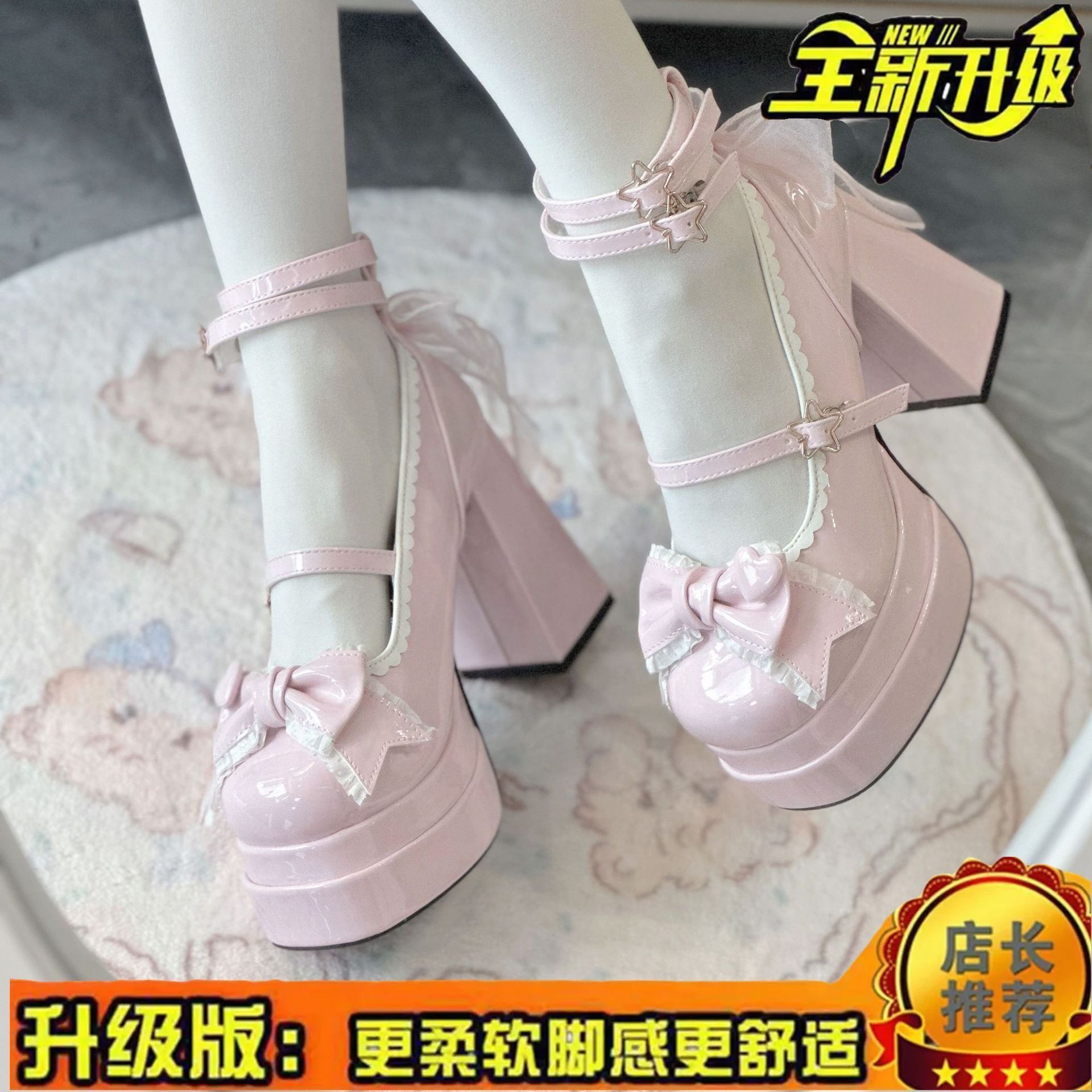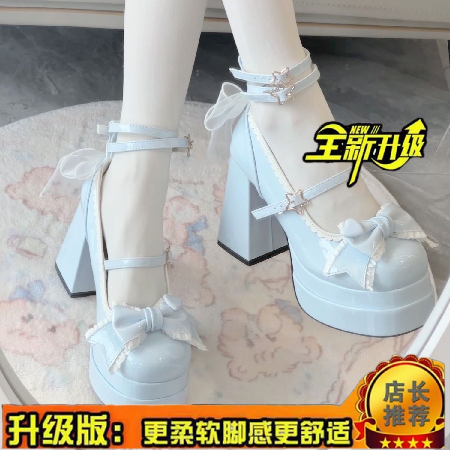 Новые туфли Лолиты, кожаные туфли с круглым носком, милые и милые туфли на высоком каблуке для вечеринок 4.0Lolita