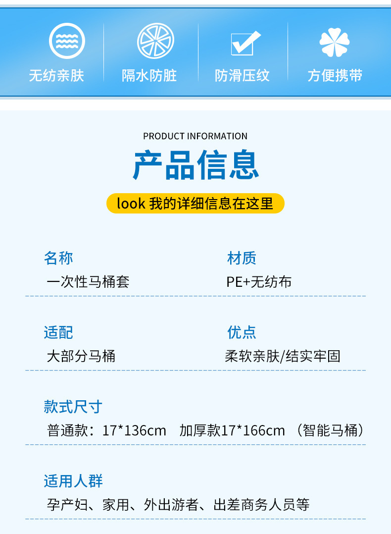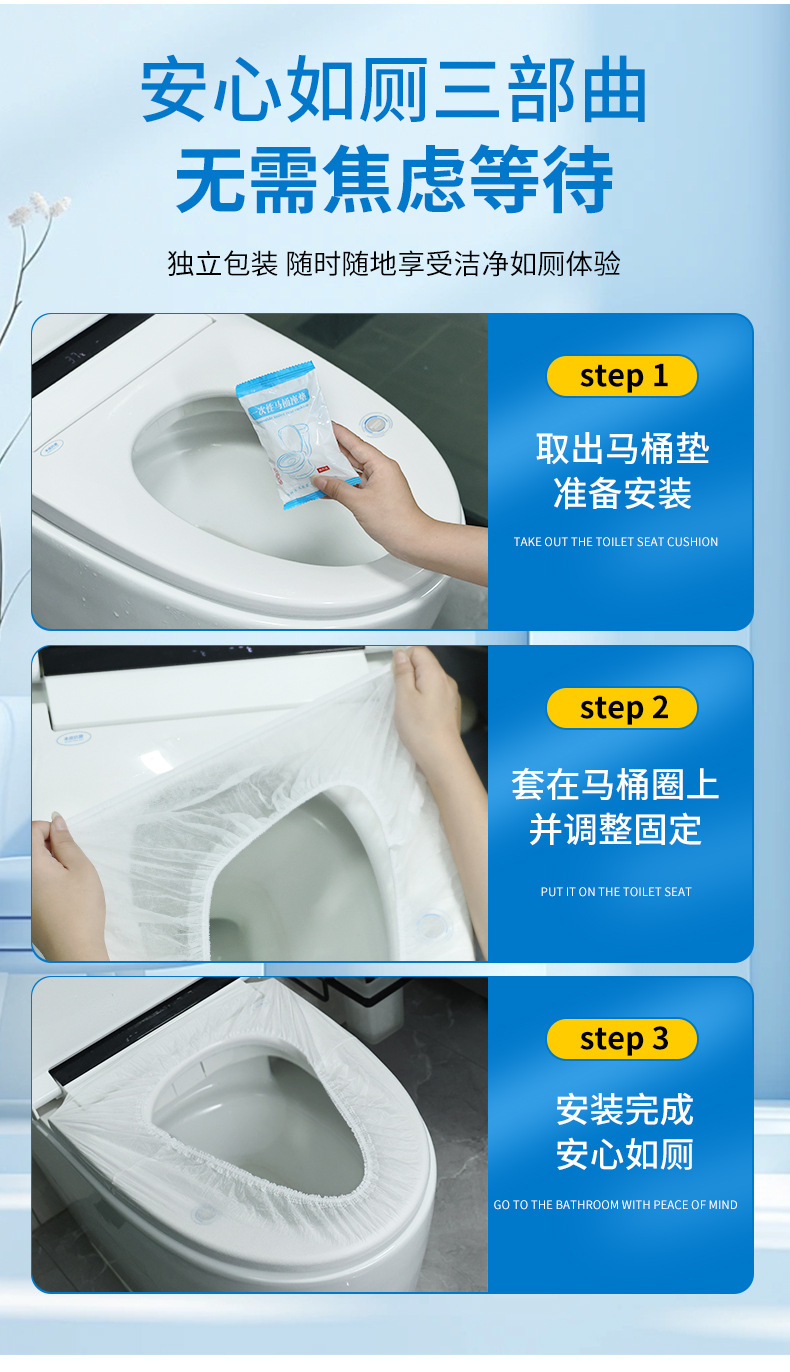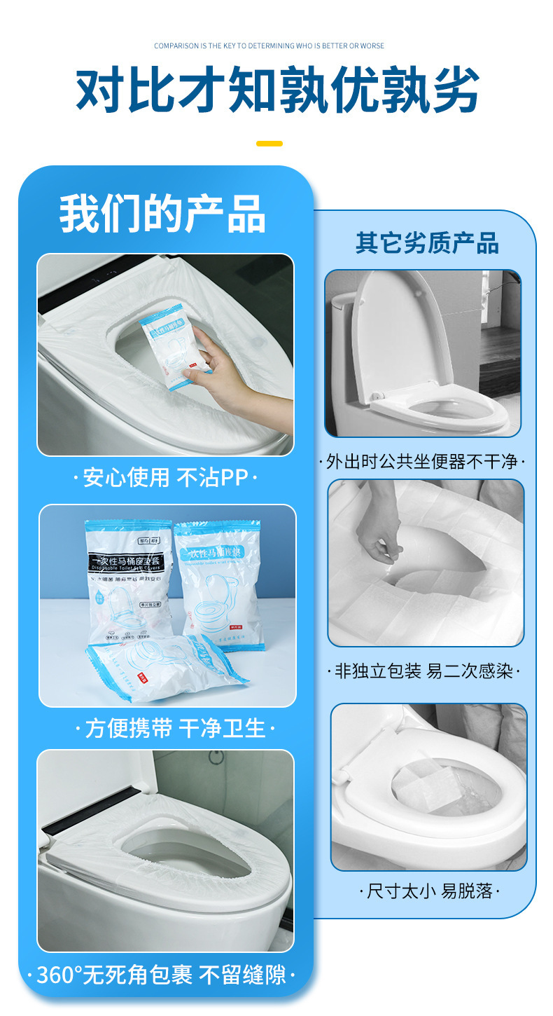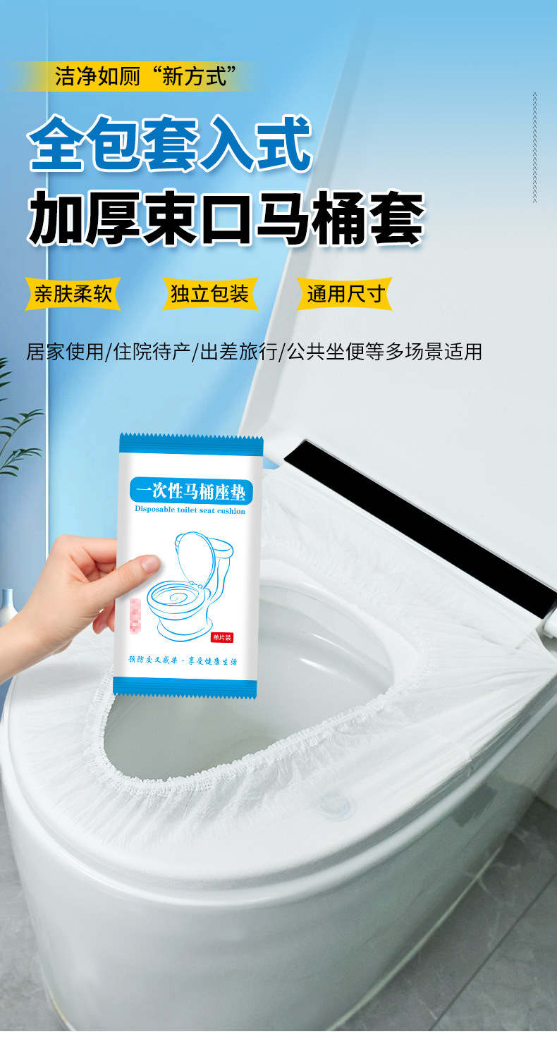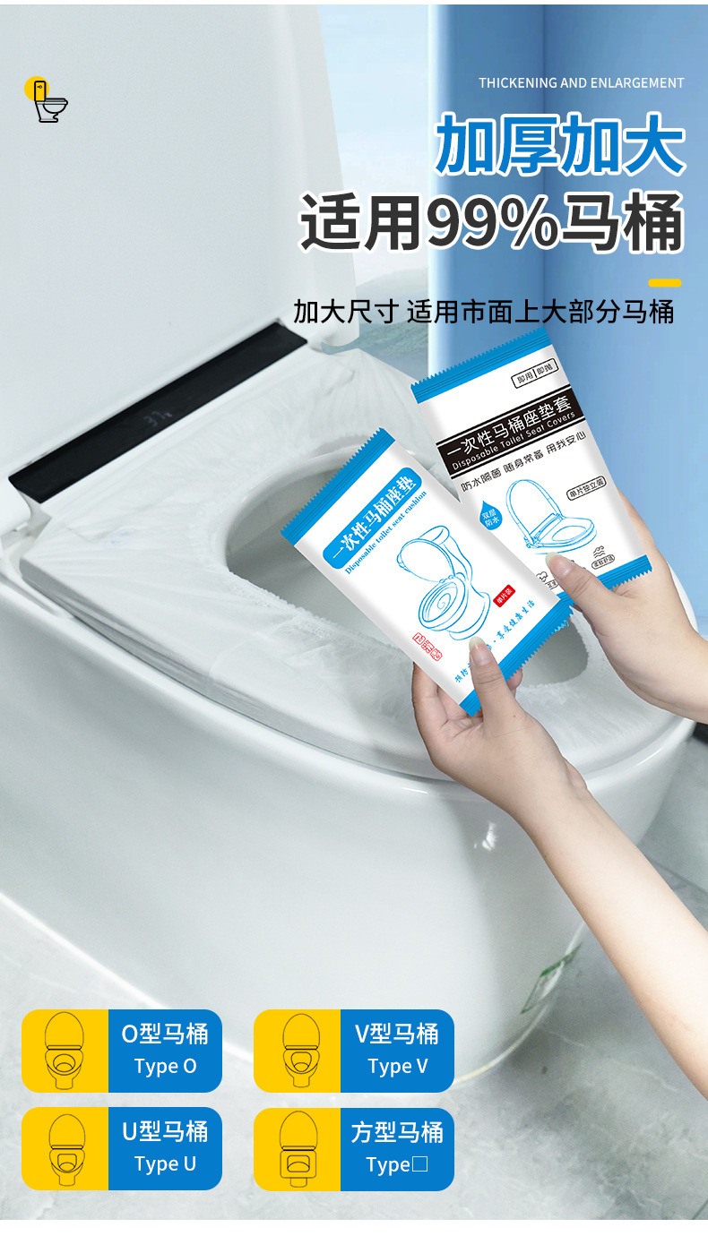Одноразовый чехол на сиденье унитаза, утолщенный, для путешествий и отелей, полное покрытие, грязеотталкивающий и водонепроницаемый чехол на сиденье унитаза.