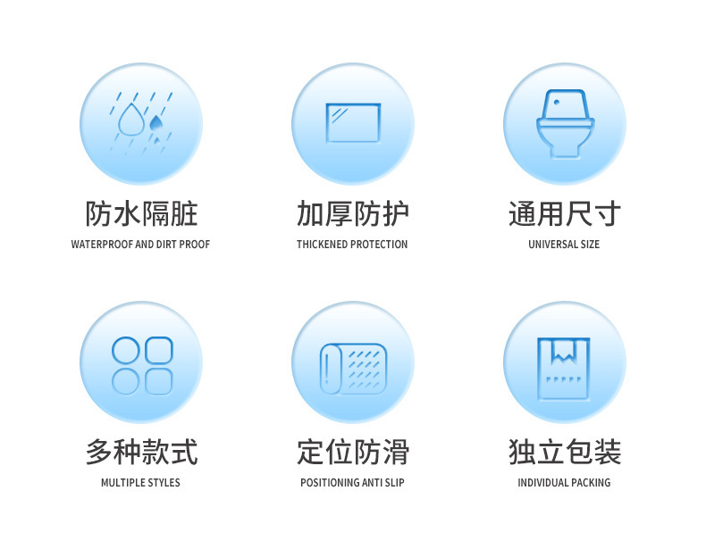 Крышка для унитаза однослойная белая; Однослойная печать на крышке унитаза; Чехол для унитаза с двухслойным принтом; (Smart) Крышка для унитаза однослойная белая удлиненная; (Smart) Двухслойная крышка для унитаза с удлиненным принтом; Коврик для унитаза синий (бумага с покрытием); Коврик для унитаза зеленый (бумага с покрытием); Коврик для унитаза синий (нетканый материал с покрытием); Коврик для унитаза 40*60см (кролик); Коврик для унитаза 40*60см (Фламинго)