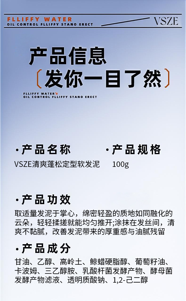 VSZE Освежающая и пушистая мягкая грязь для укладки волос освежает, не жирнит и не оставляет белых хлопьев. Волосы пушистые и естественные. Оптовая продажа в наличии