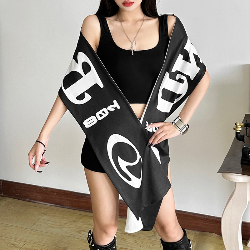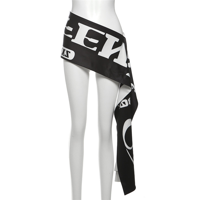Трансграничный европейский и американский стиль, лето 2025, новая женская мода, универсальный черно-белый пояс через плечо с буквенным принтом неправильной формы