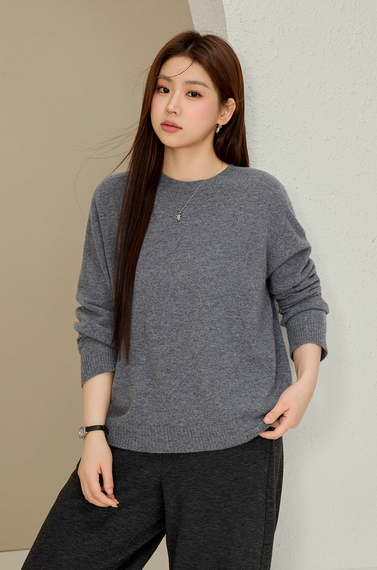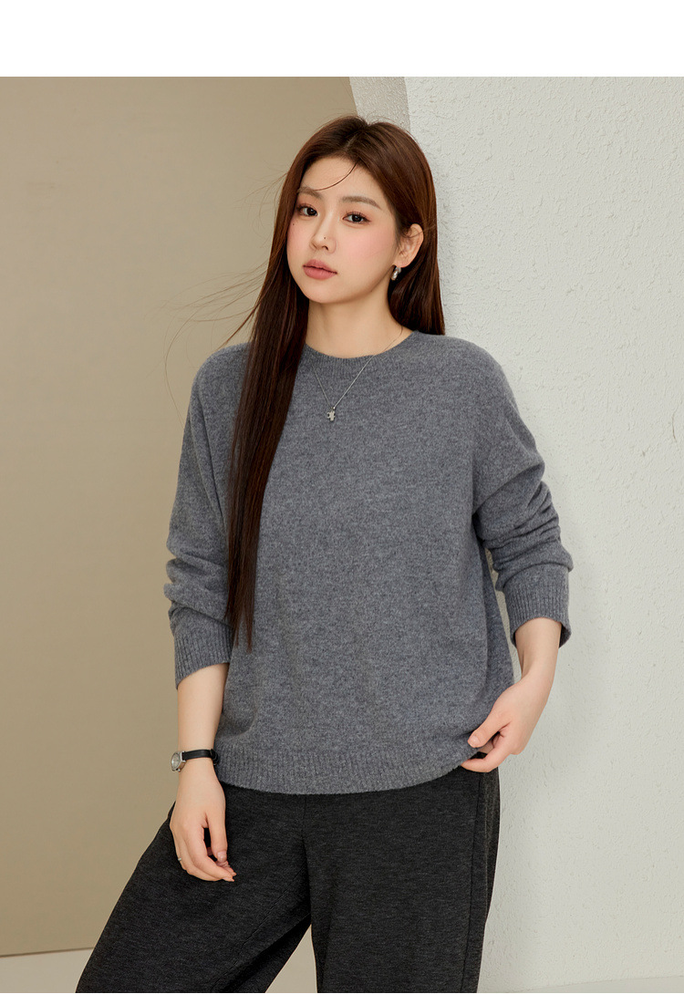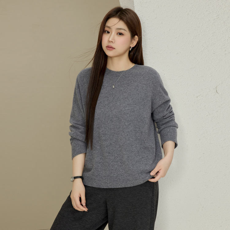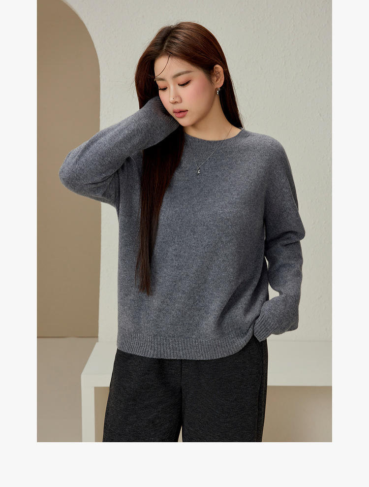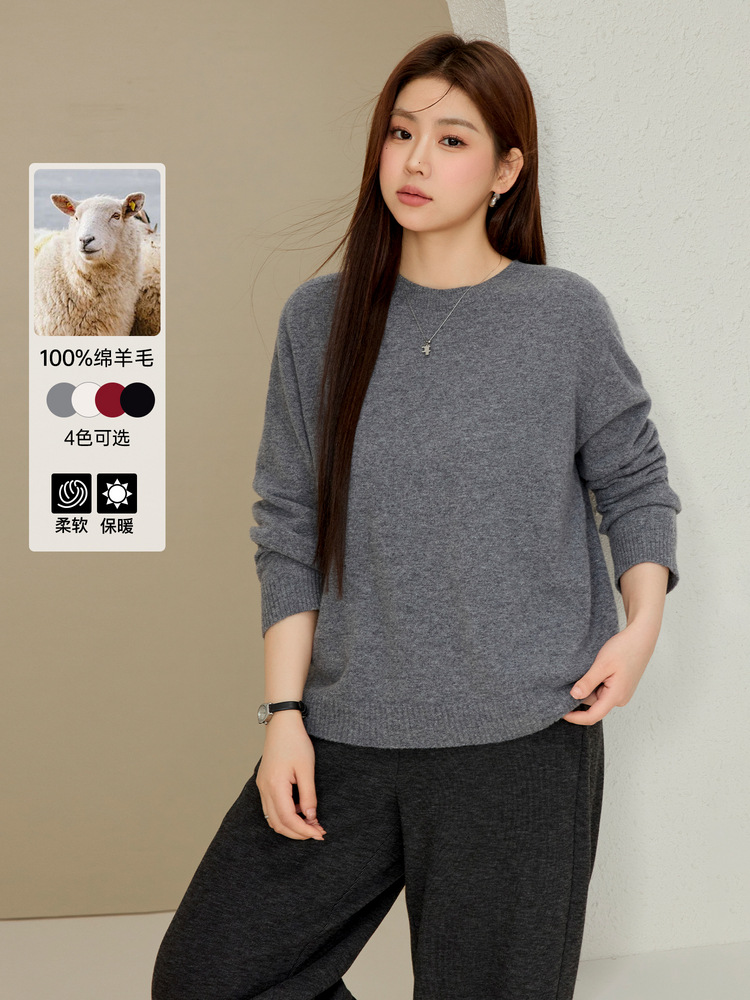 Женская одежда больших размеров Xianlixiu проста и удобна, бесшовный цельный свитер из овечьей шерсти с круглым вырезом для полных мм, новый зимний стиль 2024 года.