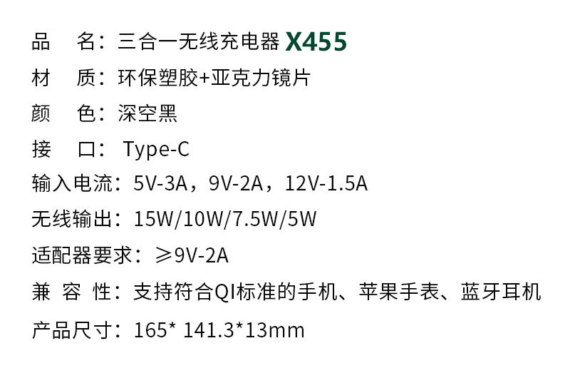 Завод-изготовитель X455, популярное зарядное устройство «три в одном» для трансграничной торговли, популярная складная подставка для мобильного телефона с беспроводной зарядкой для рабочего стола