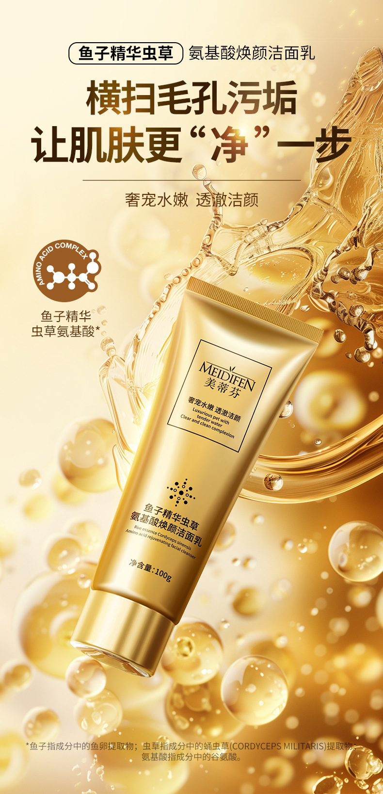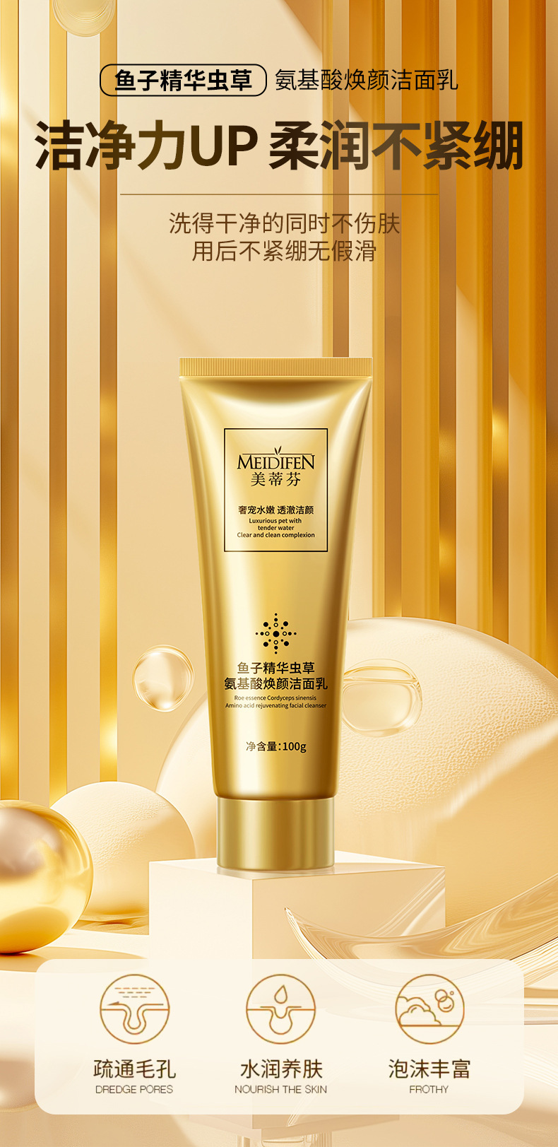 MEIDIFEN Caviar Essence Омолаживающее очищающее средство с аминокислотами Кордицепса