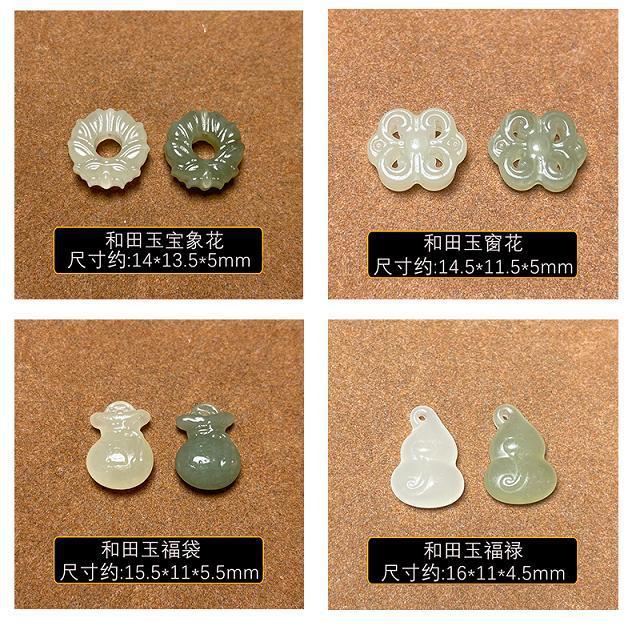 Бабочка из нефрита Хэтянь (сквозное отверстие); Двусторонний лотос из нефрита Хэтянь (сквозное отверстие); Цветок сливы из нефрита Хэтянь (сквозное отверстие); Цветок магнолии-колокольчика Хэтянь (сквозное отверстие); Застежка из нефрита Хэтянь; Безопасная пряжка из нефрита Хэтянь; Hetian Jade Butterfly 2 (сквозное отверстие); Hetian Jade Fu Ruyi (отверстие для подвески); Hetian Jade Ruyi (Отверстие для подвески); Хэтян-Джейд и Дилиан (сквозное отверстие); Сумка из нефрита Хэтянь (отверстие для подвески); Цветок слона сокровища из нефрита Хэтянь (сквозное отверстие); Оконная решетка из нефрита Хэтянь (сквозное отверстие); Счастливая сумка из нефрита Хэтянь (отверстие для подвески); Hetian Jade Fulu (Отверстие для подвески); Бант из нефрита Хэтянь (сквозное отверстие); Счастливый слон из нефрита Хэтянь (отверстие для подвески); Hetian Jade Lotus (сквозное отверстие); Лотос из нефрита Хэтянь (отверстие для подвески); Хэтианский нефрит полый мечтательный образ; Хэтянский нефритовый поворот; Хетианский нефритовый футболка; Двойная пряжка с драконом из нефрита Хэтиан (отверстие для подвески); Четырехлистный клевер из нефрита Хэтянь (сквозное отверстие); Медная монета из нефрита Хэтянь (сквозное отверстие); Hetian Jade Xiangyun (сквозное отверстие); Маленький Будда из нефрита Хэтянь (отверстие для подвески); Дельфин из нефрита Хэтянь (отверстие для подвески); Смiling Face Ruyi из нефрита Hetian (сквозное отверстие); Блокировка из нефрита Хэтянь (отверстие для подвески); Китайский узел из нефрита Хэтянь (сквозное отверстие)
