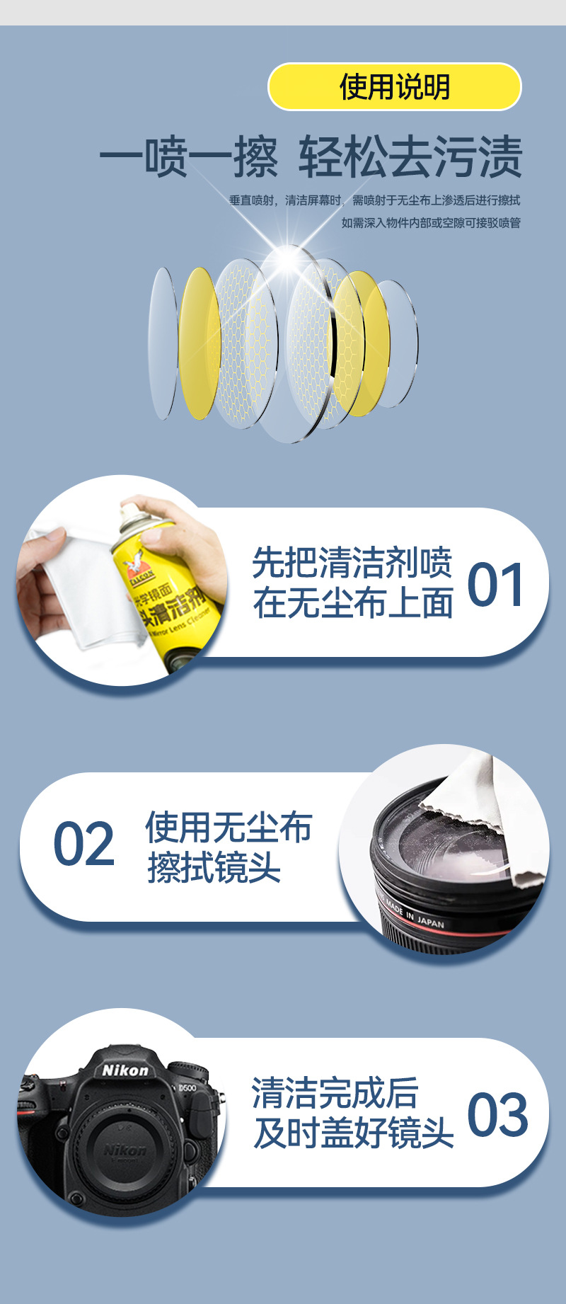 Очиститель линз Falcon, неразрушающий синий свет, оптическое зеркало, прецизионный инструмент, очиститель объектива камеры мобильного телефона