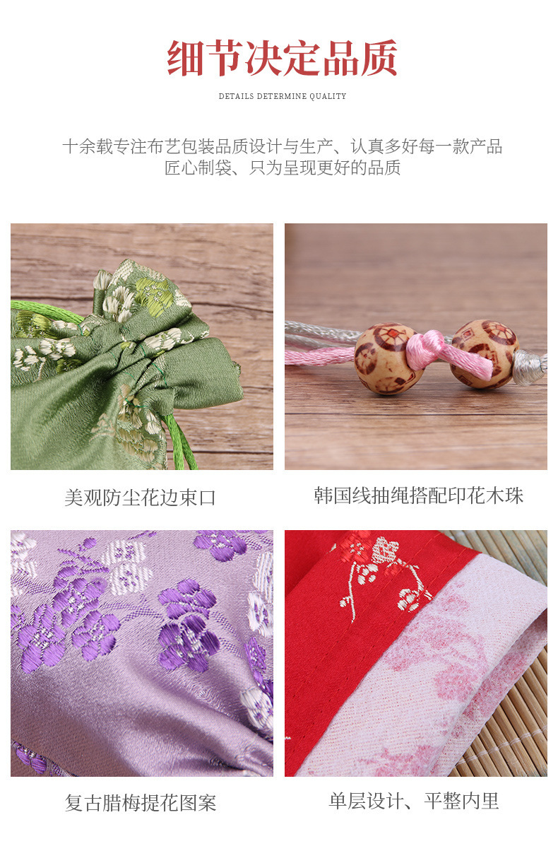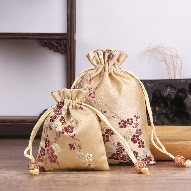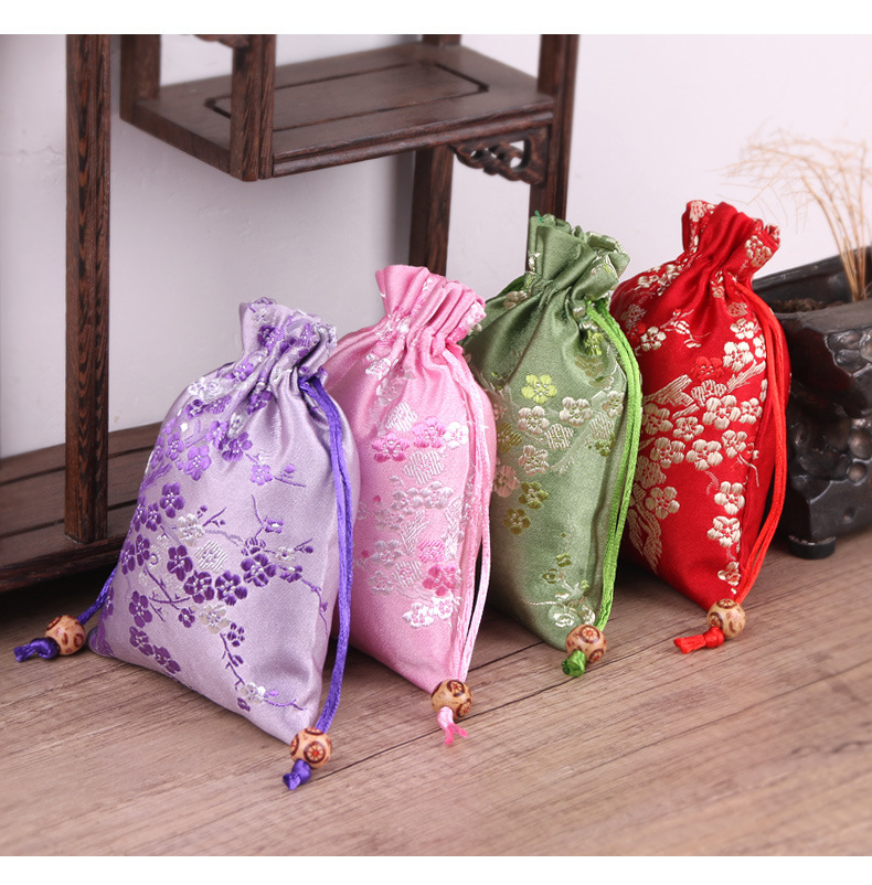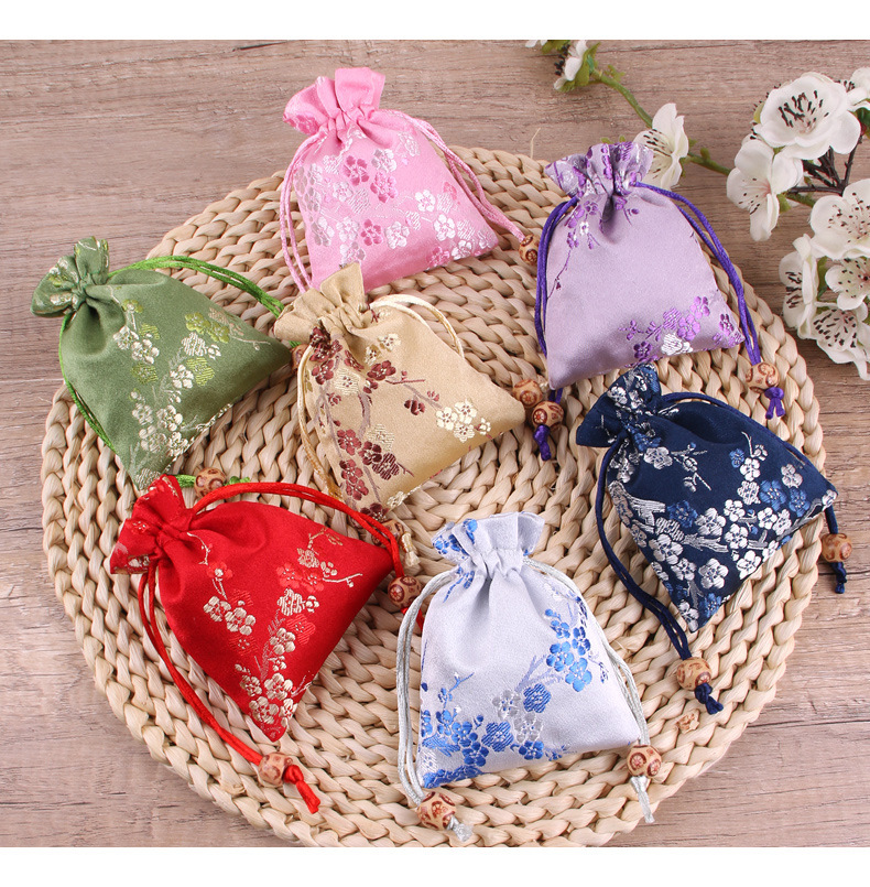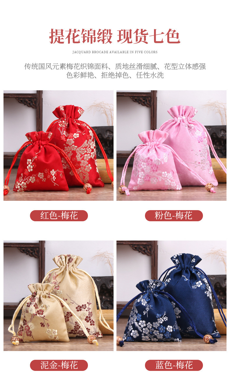 Сумка на шнурке с цветком сливы в этническом стиле, парчовый буддийский браслет из бисера, портативная упаковочная сумка на шнурке, сумка для хранения ювелирных изделий, сумка для игрушек