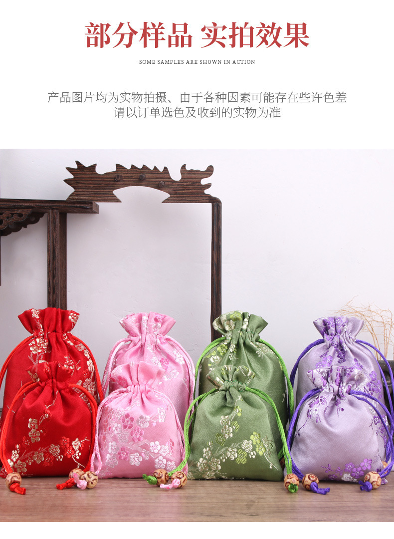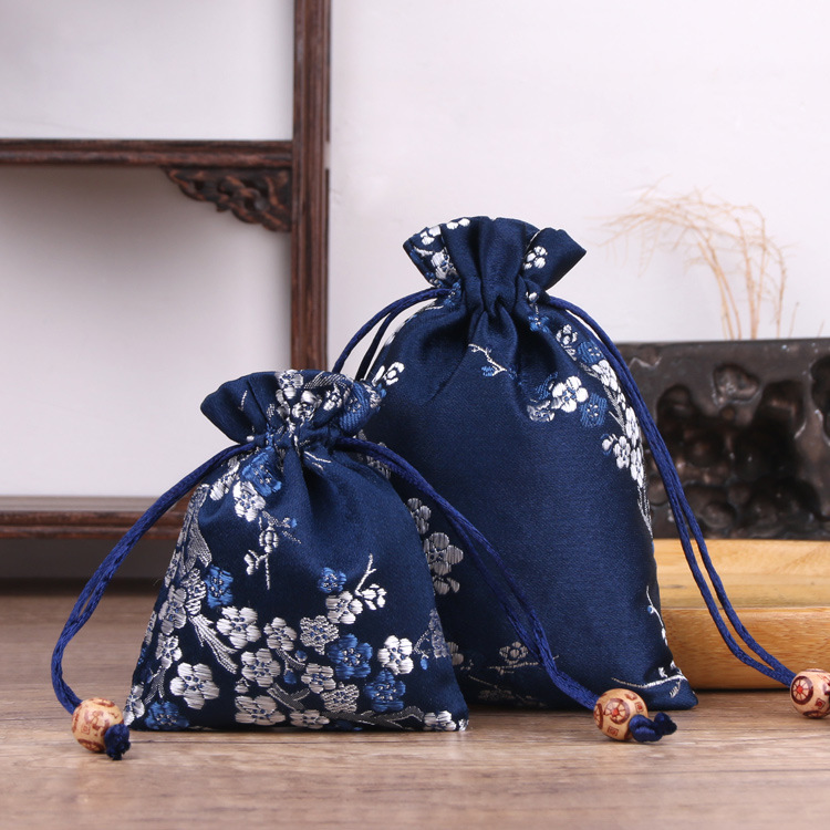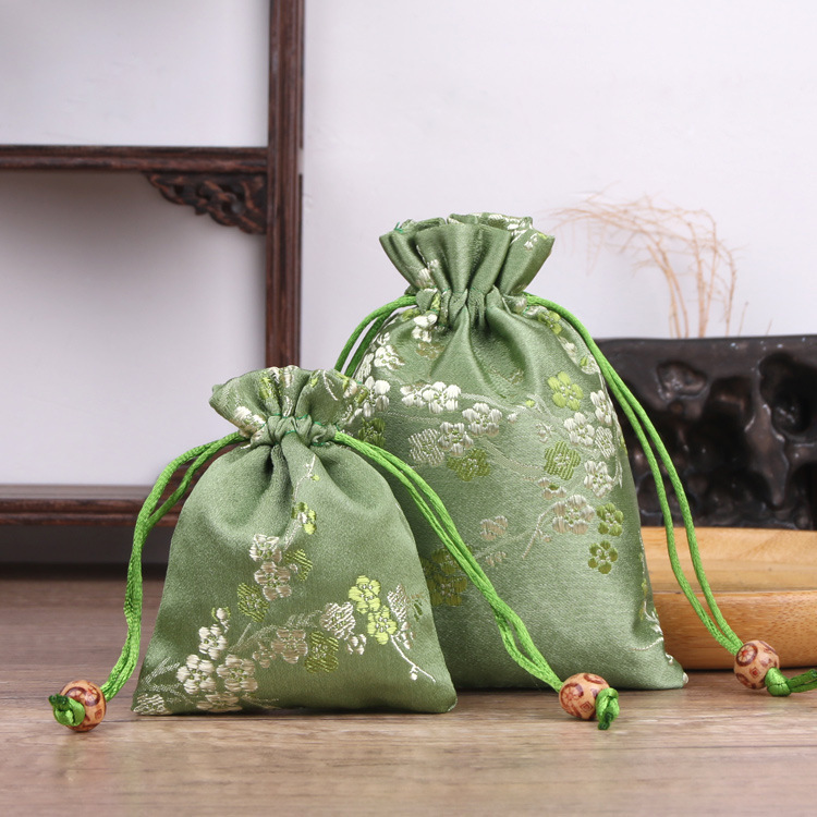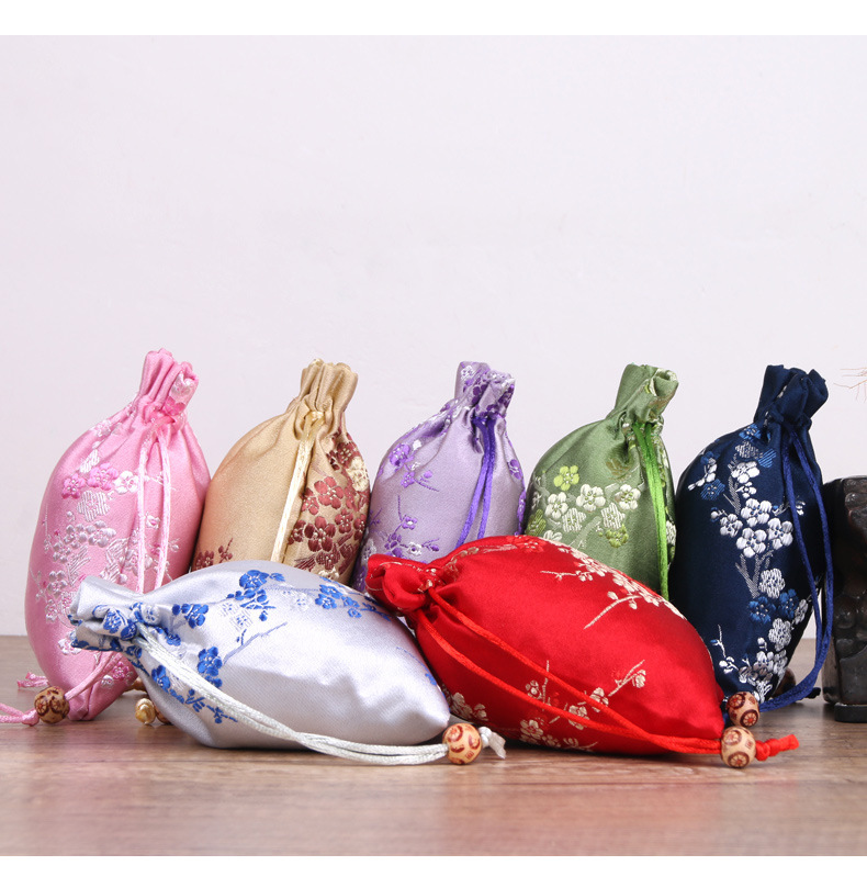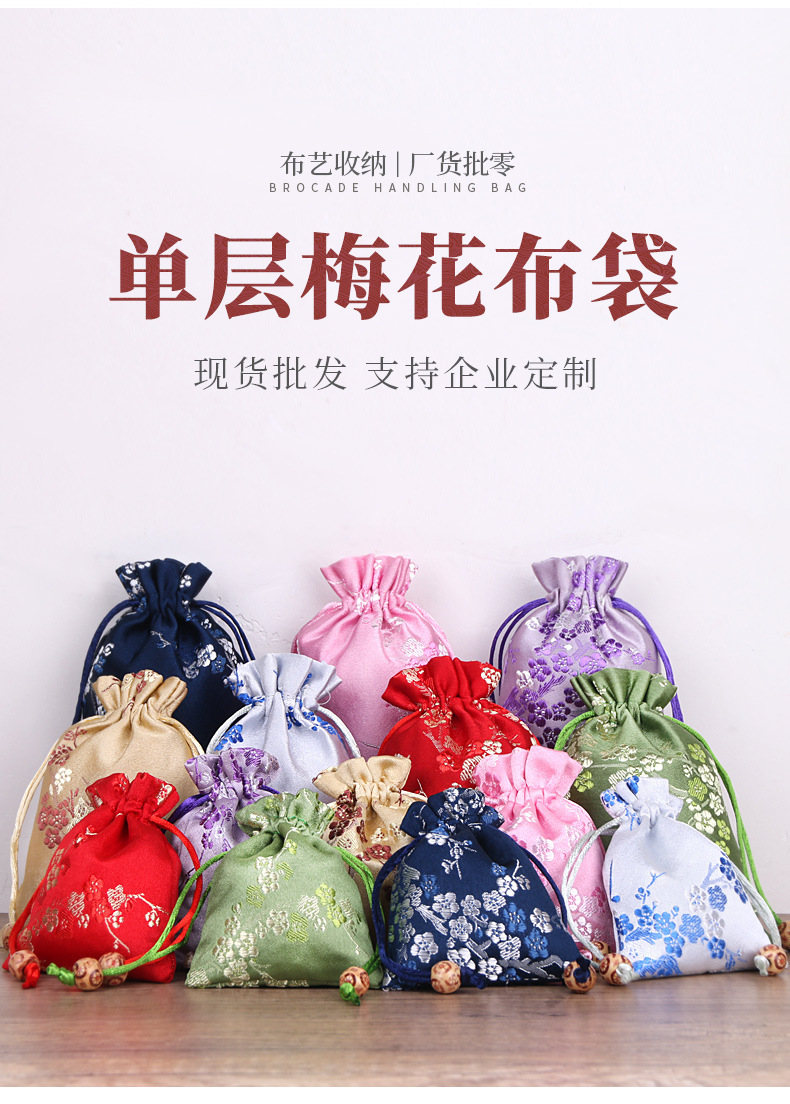 Сумка на шнурке с цветком сливы в этническом стиле, парчовый буддийский браслет из бисера, портативная упаковочная сумка на шнурке, сумка для хранения ювелирных изделий, сумка для игрушек