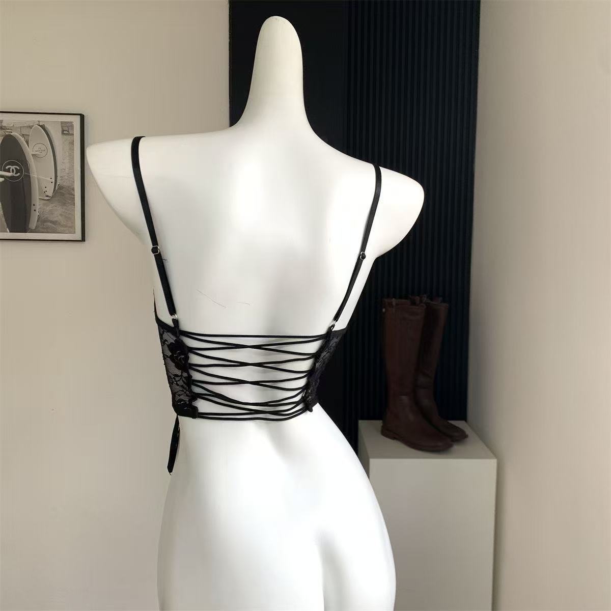 163 # Камзол с полым дизайном, весна 2025, новинка, чистая страсть, сексуальная внутренняя одежда, верхняя одежда, красивый топ для похудения сзади