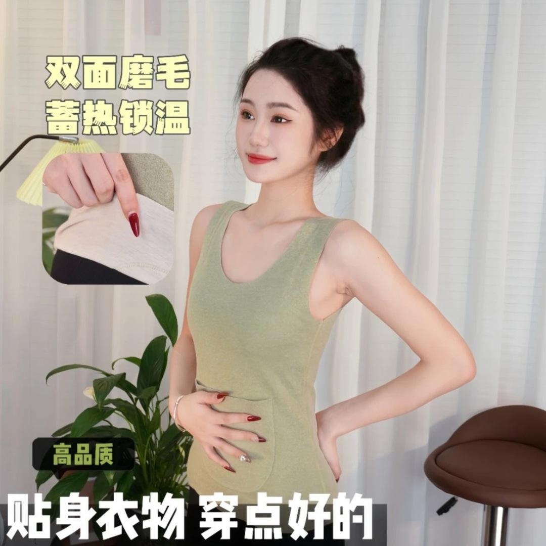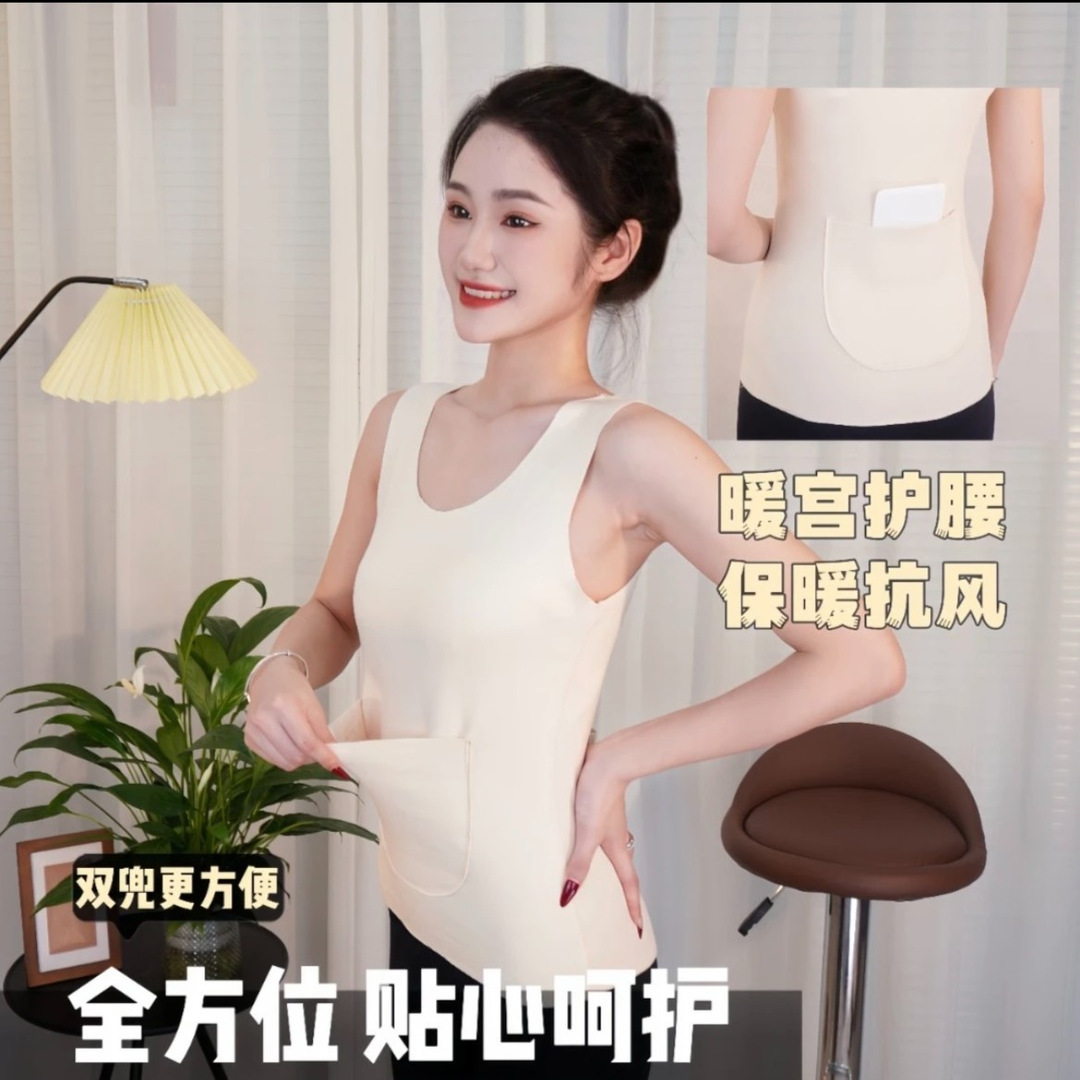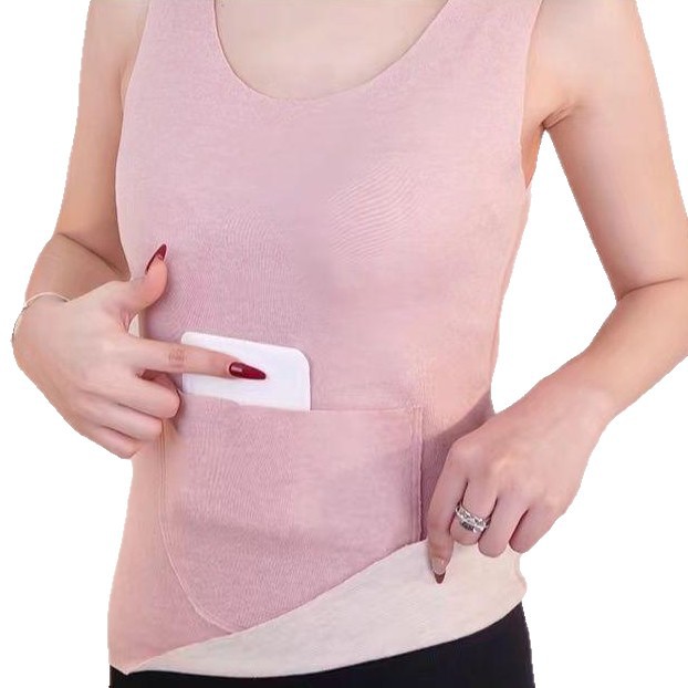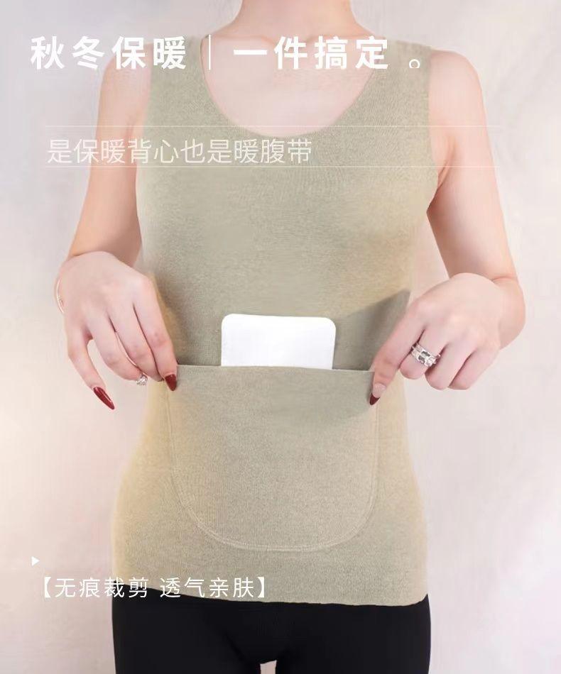 Популярный терможилет с двумя карманами для трансграничной внешней торговли и карманами, теплый Derong для защиты живота и живота, бесшовный облегающий базовый слой с начесом.