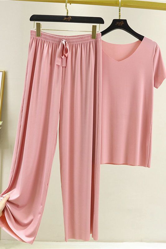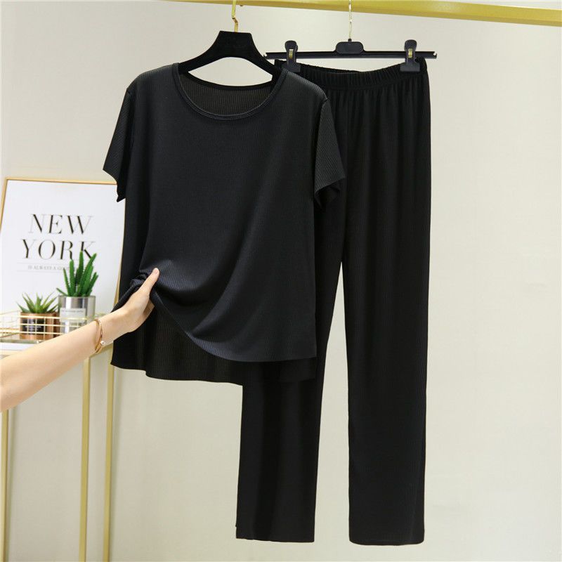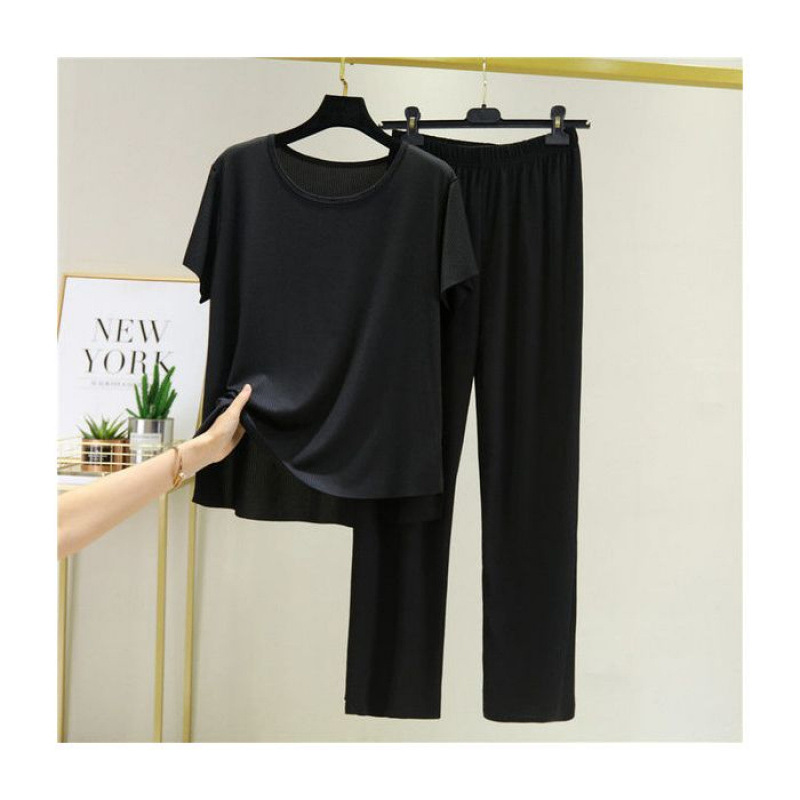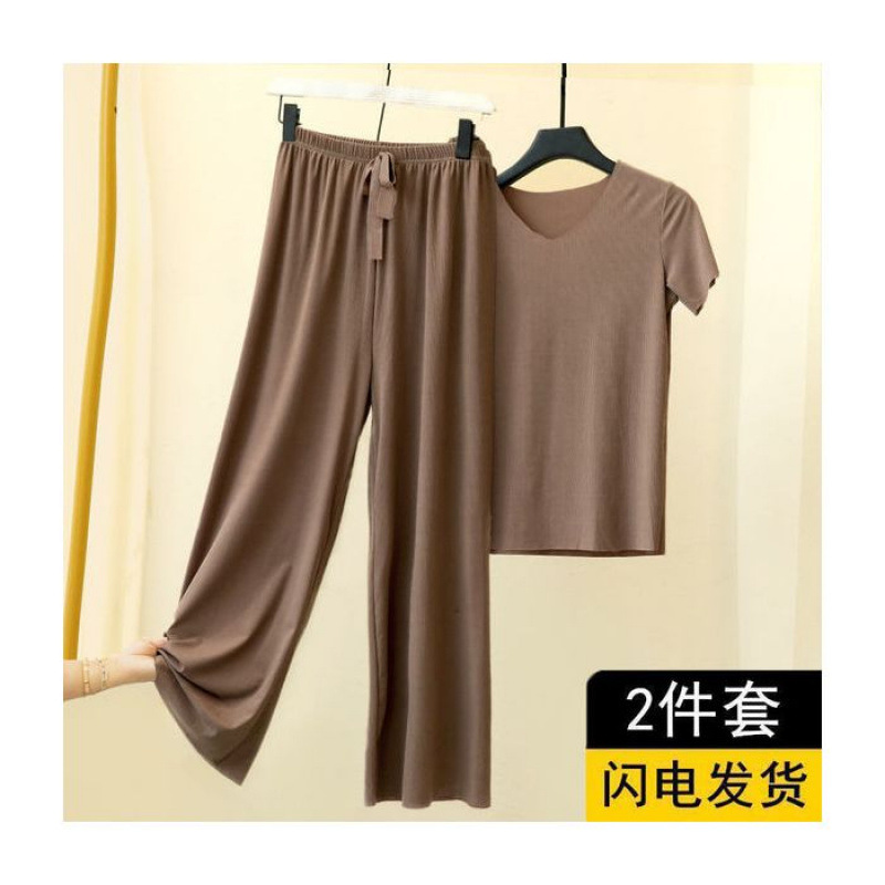 Большое количество готовых модных женских костюмов из ледяного шелка, новые летние широкие брюки для спорта и отдыха, модные комплекты из двух предметов с короткими рукавами.