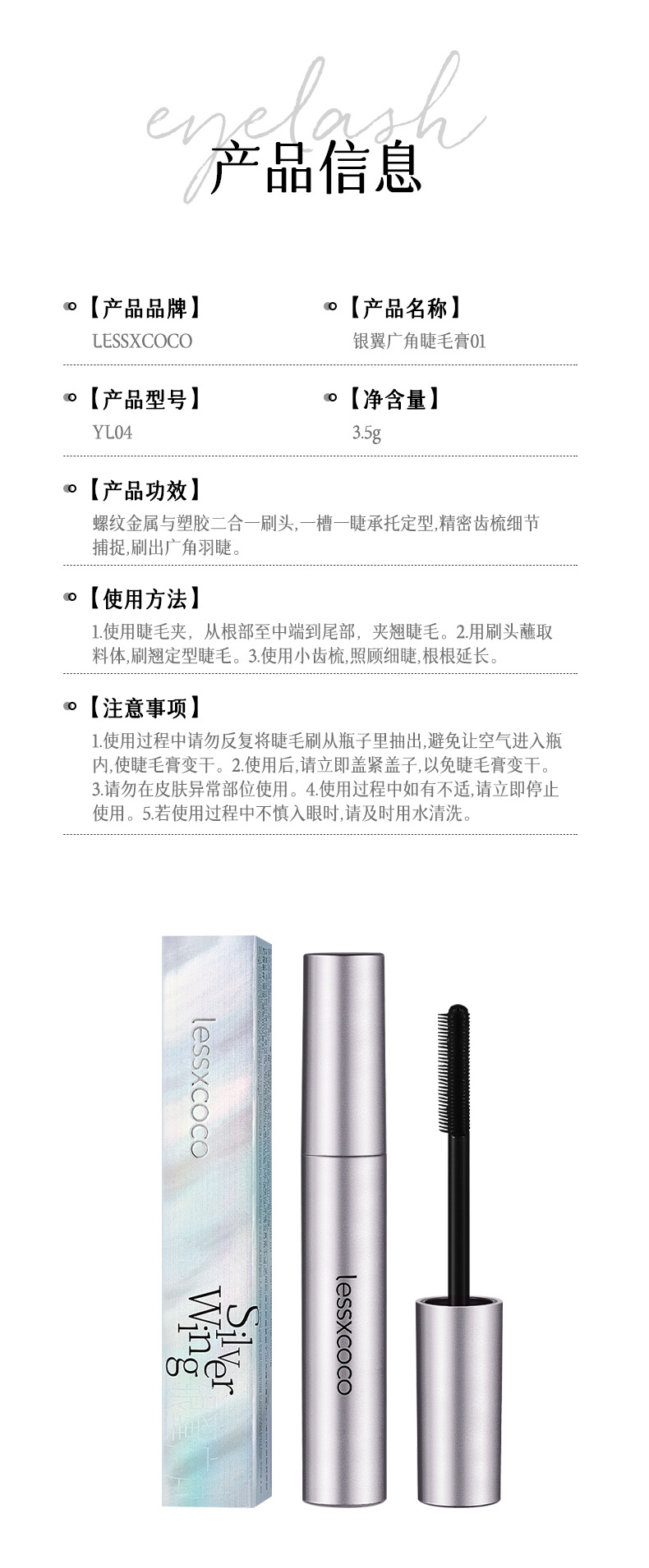 LESSXCOCO Тушь для ресниц Silver Wing Wide Angle
