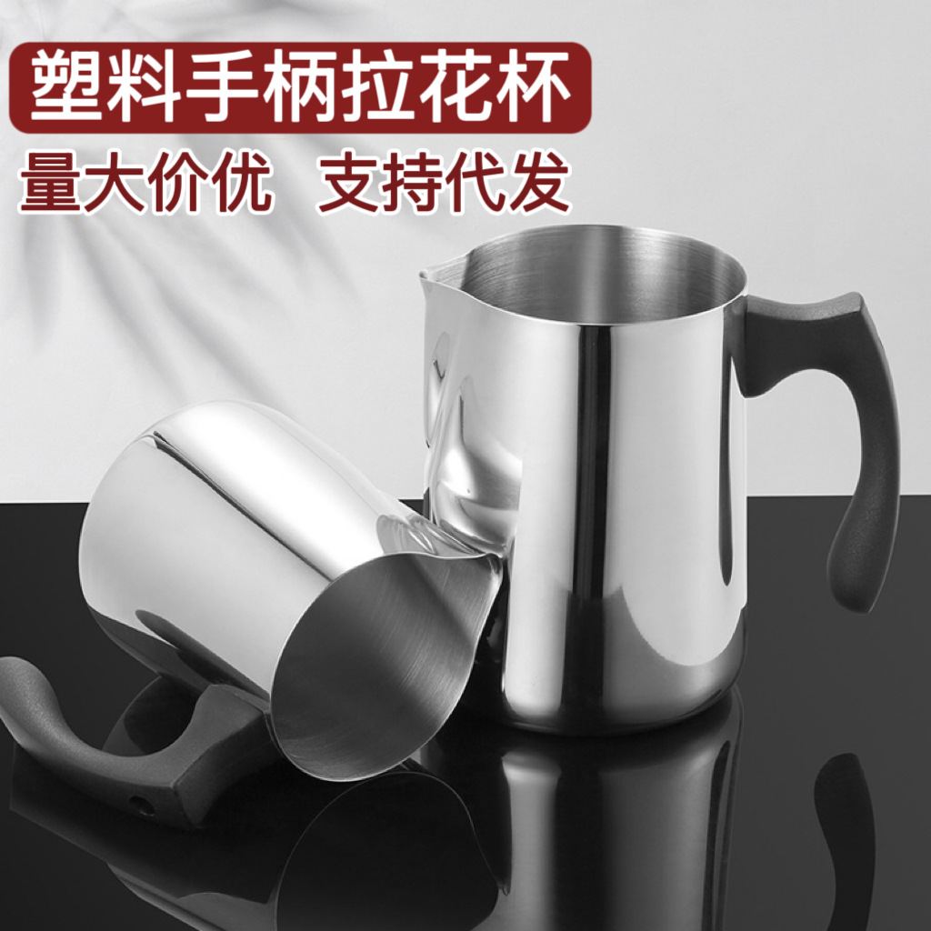 Эксклюзивная трансграничная чашка для латте-арта из нержавеющей стали с пластиковой ручкой и шкалой, цилиндр для латте-арта, чашка для плавления воска, чашка для воска.