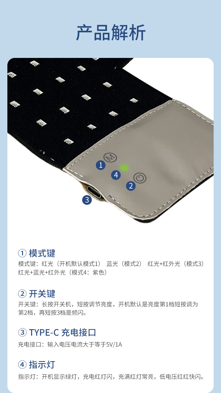 光波波长:一档红光 660NM 二档蓝光 450NM