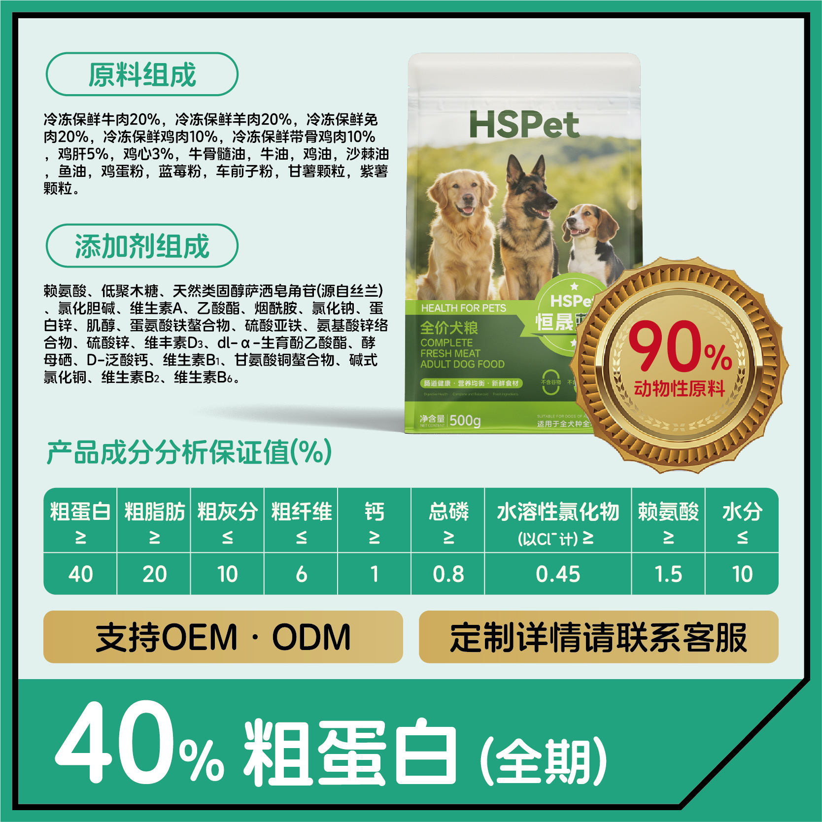 Hengsheng Pets | Собачьий корм OEM, полнорационный, из свежего мяса, беззерновой, для крупных и мелких пород, для взрослых собак и щенков, индивидуальный состав