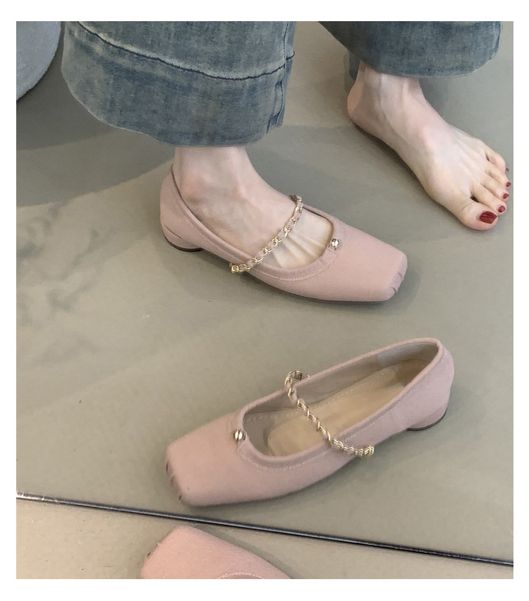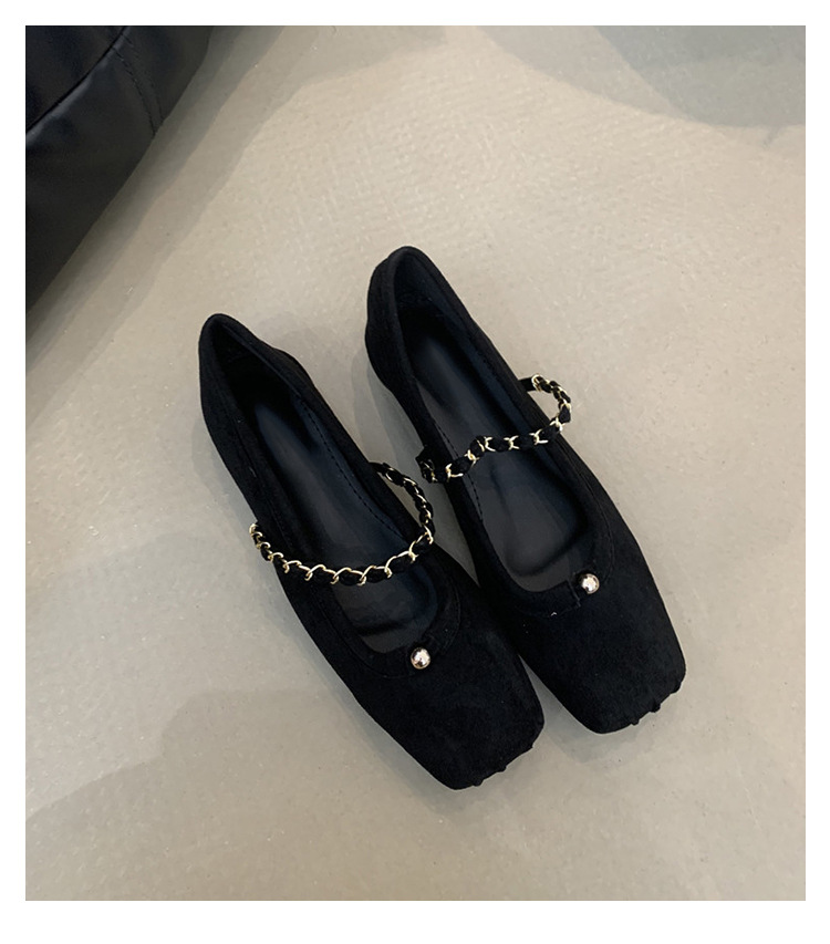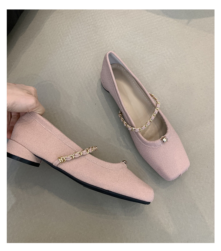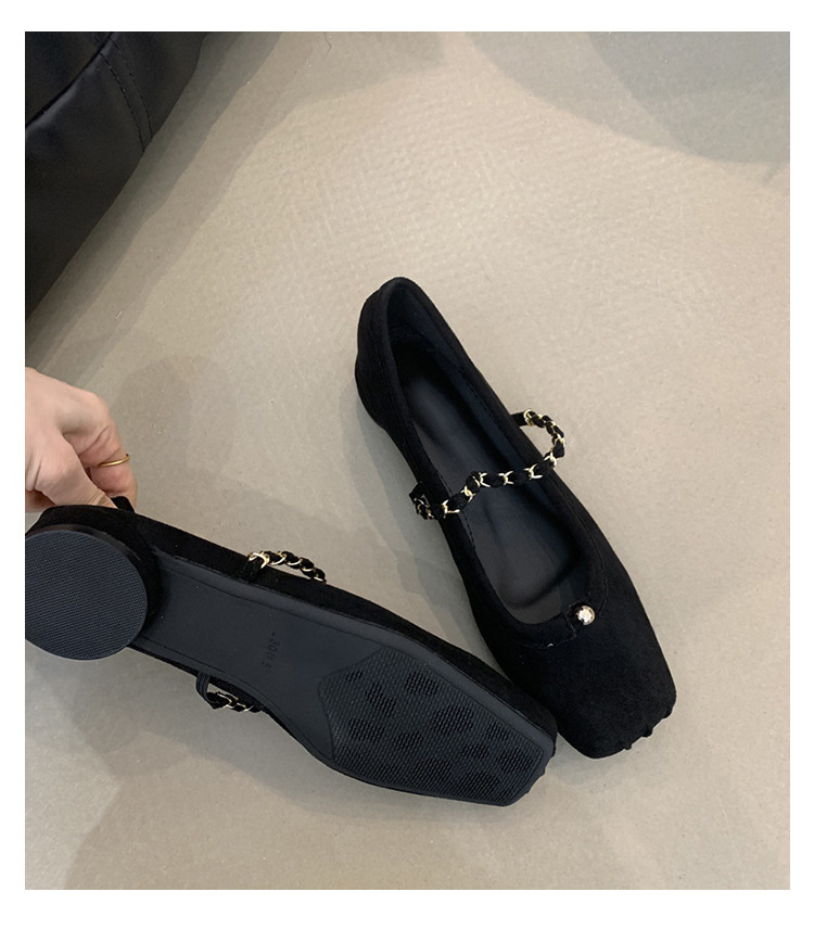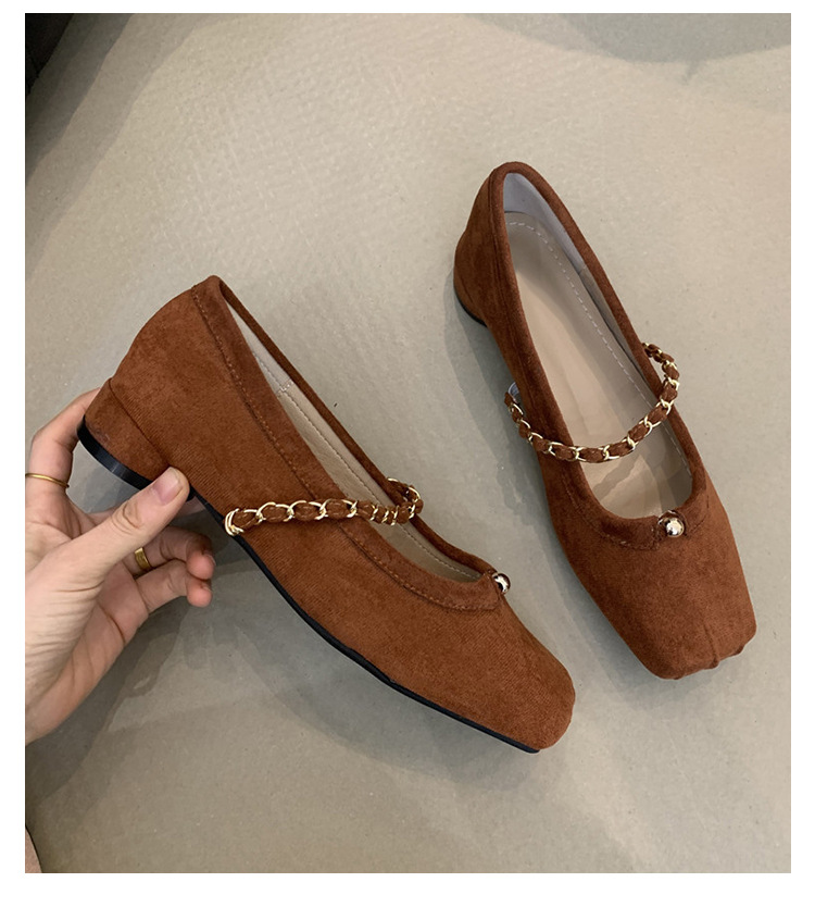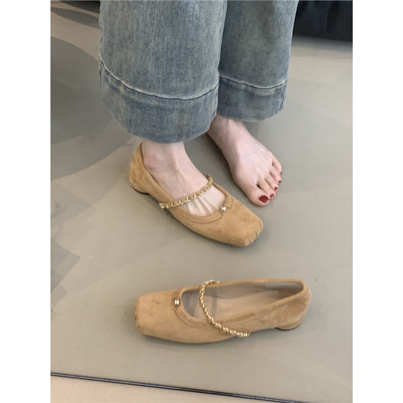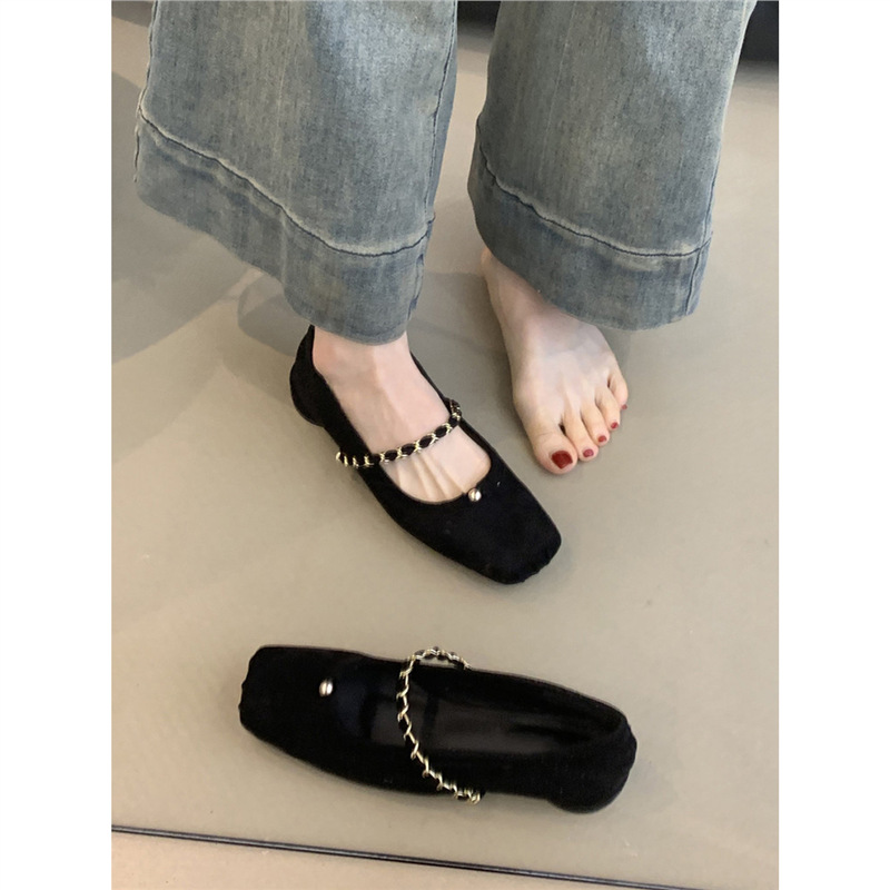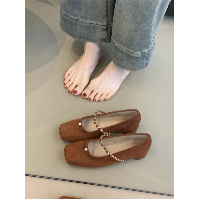 Версия из овчины ~ Туфли Мэри Джейн на низком каблуке с квадратным носком и металлической цепочкой в казуальном стиле, вечерние туфли во французском стиле