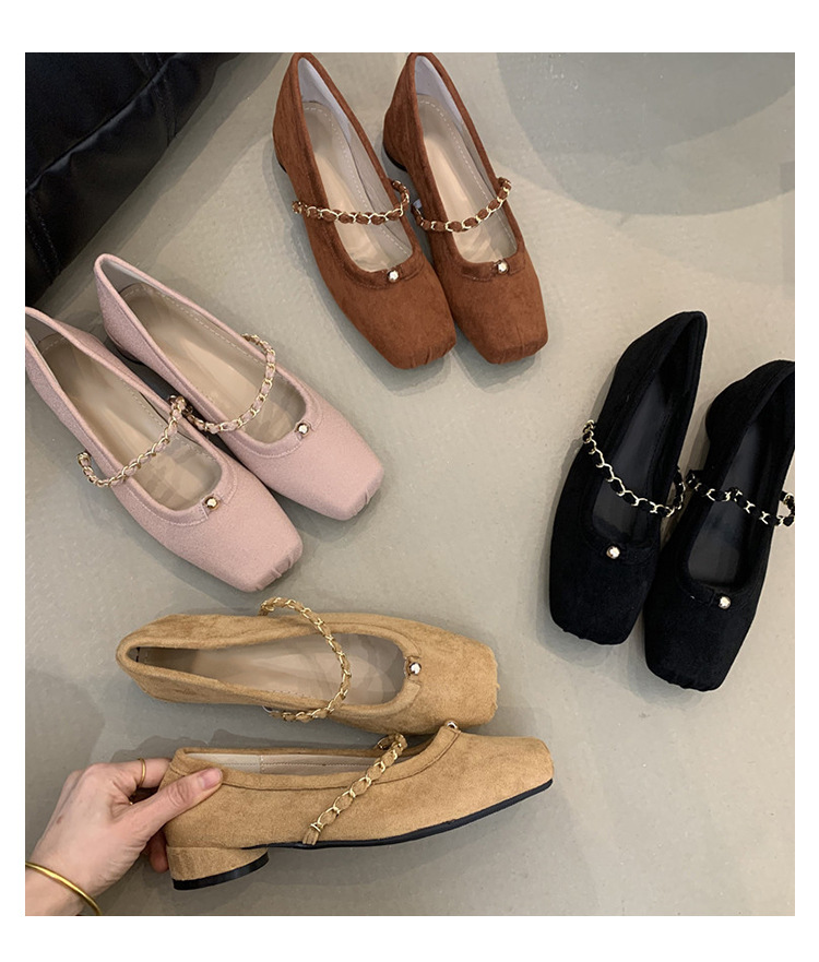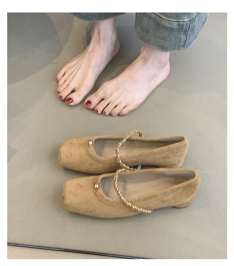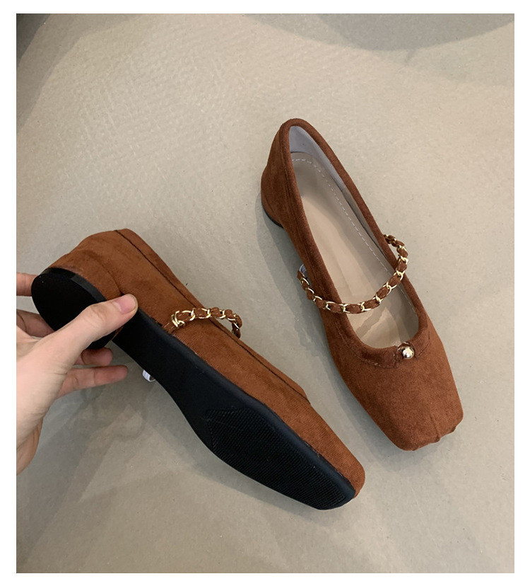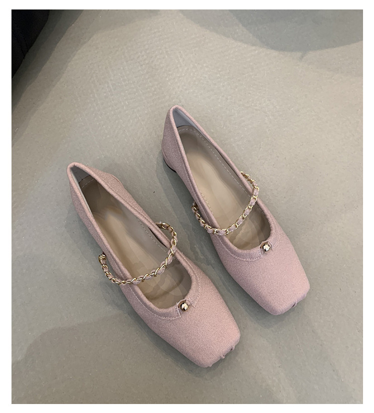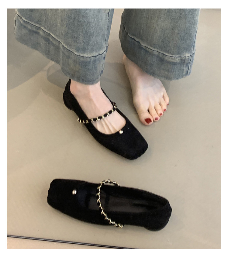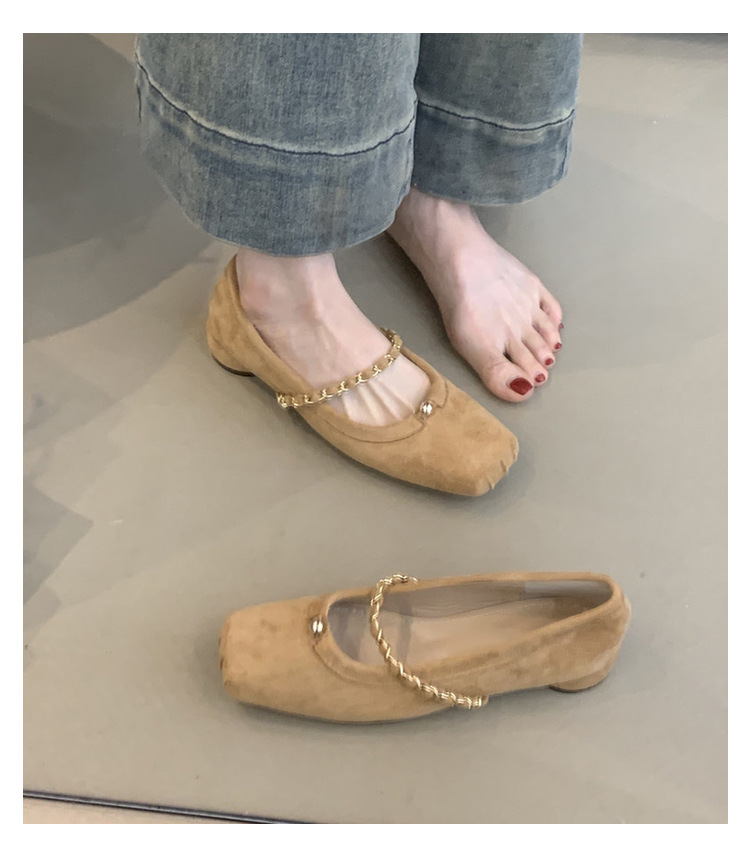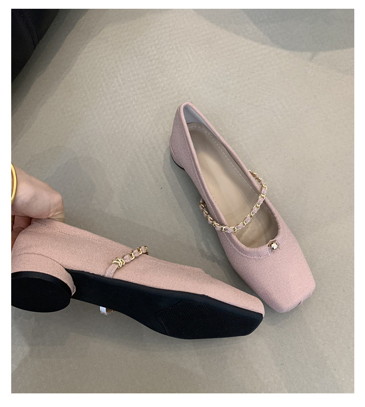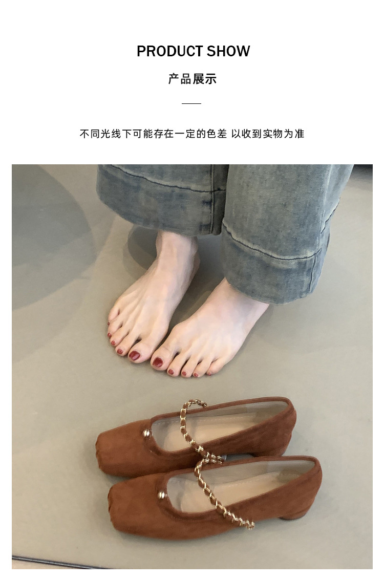 Версия из овчины ~ Туфли Мэри Джейн на низком каблуке с квадратным носком и металлической цепочкой в казуальном стиле, вечерние туфли во французском стиле