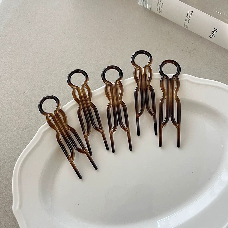 Шпилька в стиле ретро-черная (7,5см); Шпилька в стиле ретро черепахового цвета (7,5 см); Шпилька в стиле ретро с серым леопардовым принтом (7,5 см); Большая заколка «рыбий хвост» черепахового цвета; Большая заколка «рыбий хвост» черного цвета; Маленькая заколка «рыбий хвост» черного цвета; Маленькая заколка «рыбий хвост» черепахового цвета; Ретро-заколка для волос, прозрачно-белая (7,5 см); Ретро-заколка для волос с леопардовым принтом коричневого цвета (7,5 см)