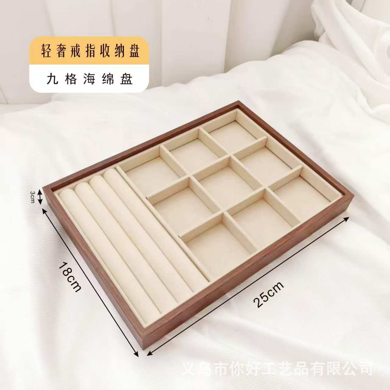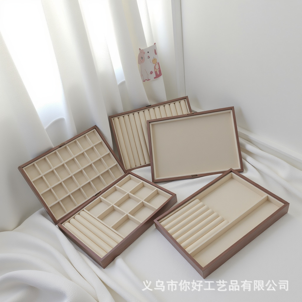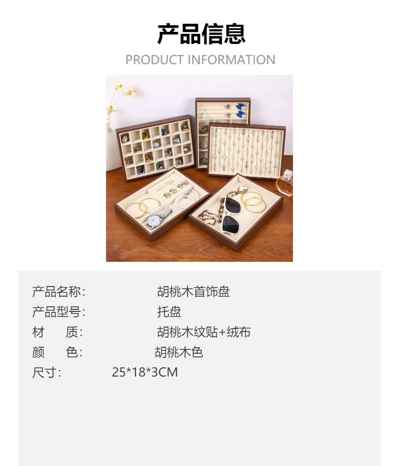 Поднос для ювелирных изделий, бархатное кольцо из орехового дерева, серьги, ожерелье, браслет, дисплей, большая вместительная коробка для хранения ювелирных изделий