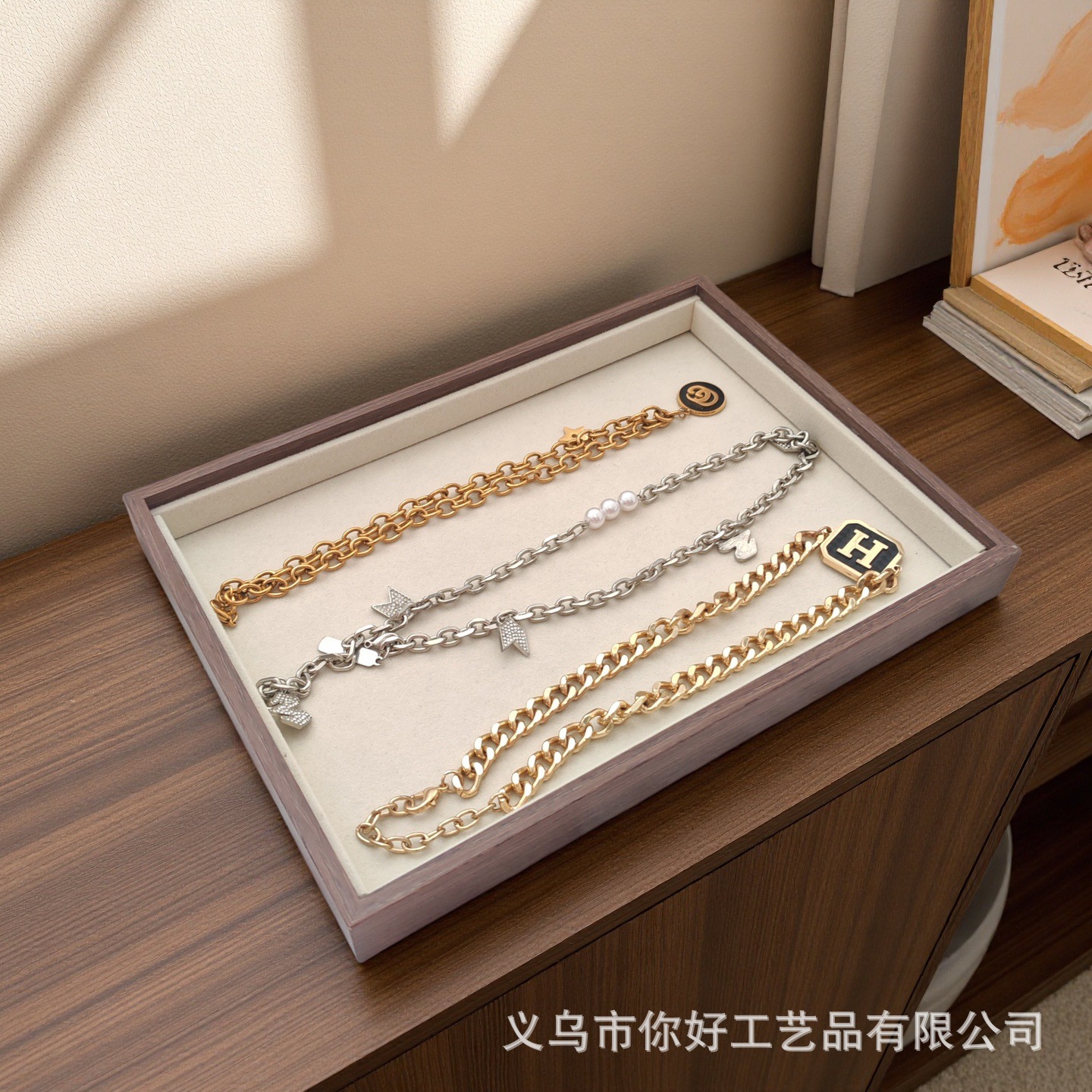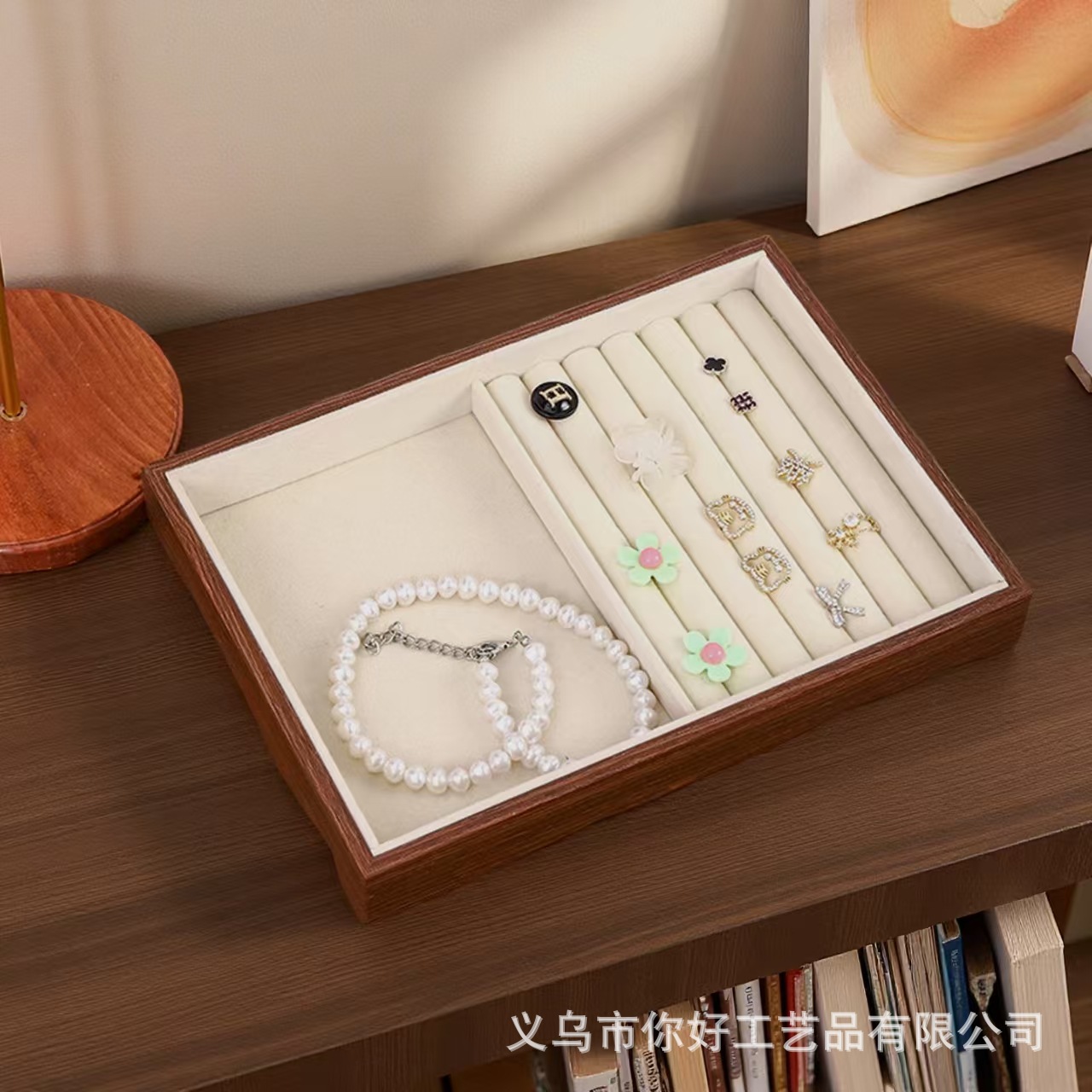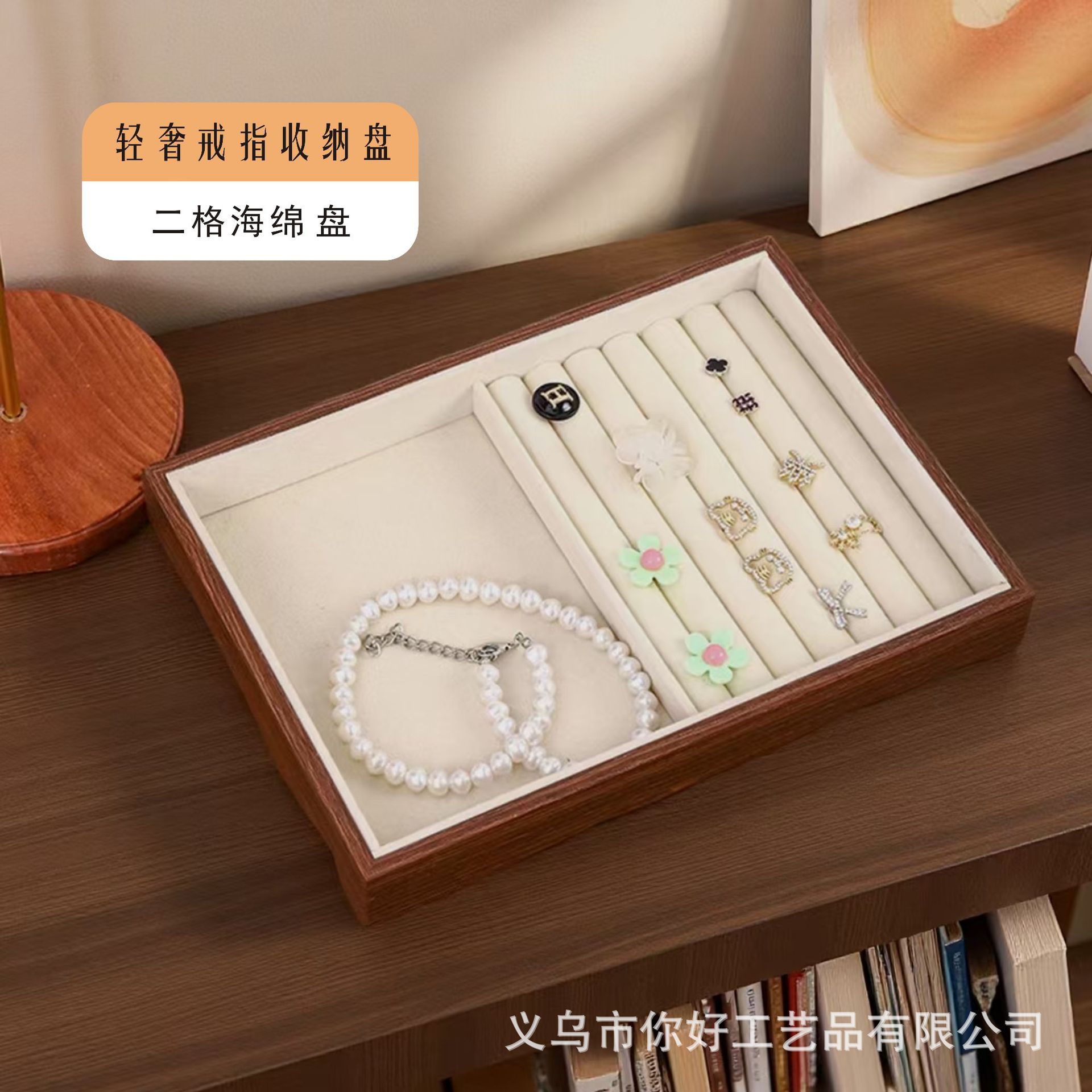 Поднос для ювелирных изделий, бархатное кольцо из орехового дерева, серьги, ожерелье, браслет, дисплей, большая вместительная коробка для хранения ювелирных изделий